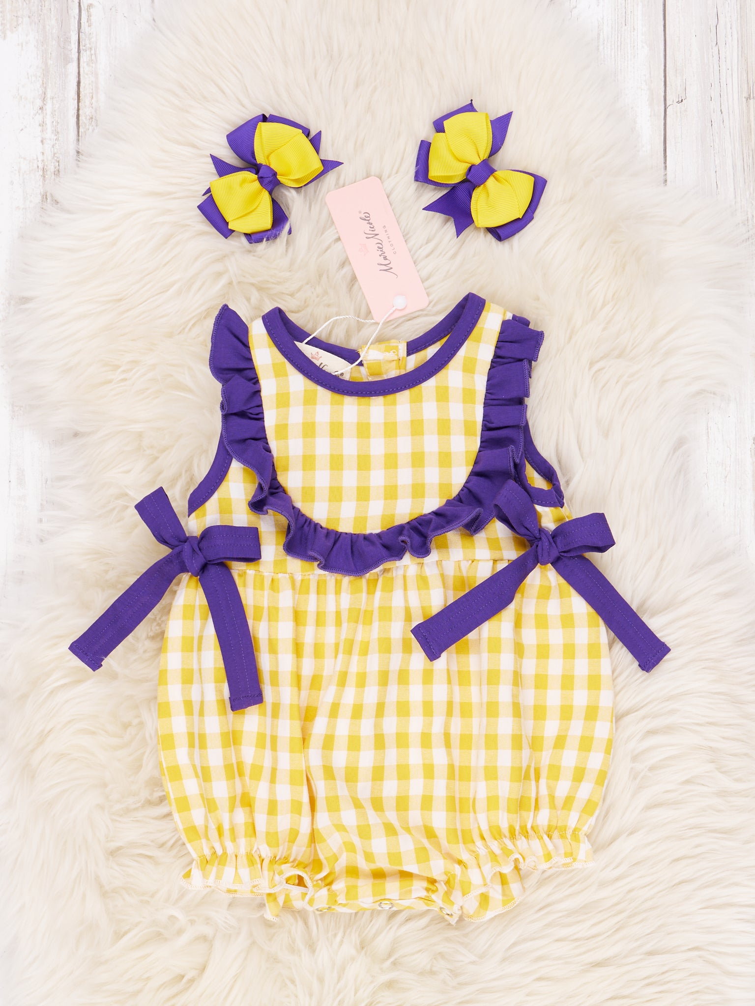 Purple & Gold Gingham Ruffle Outfit