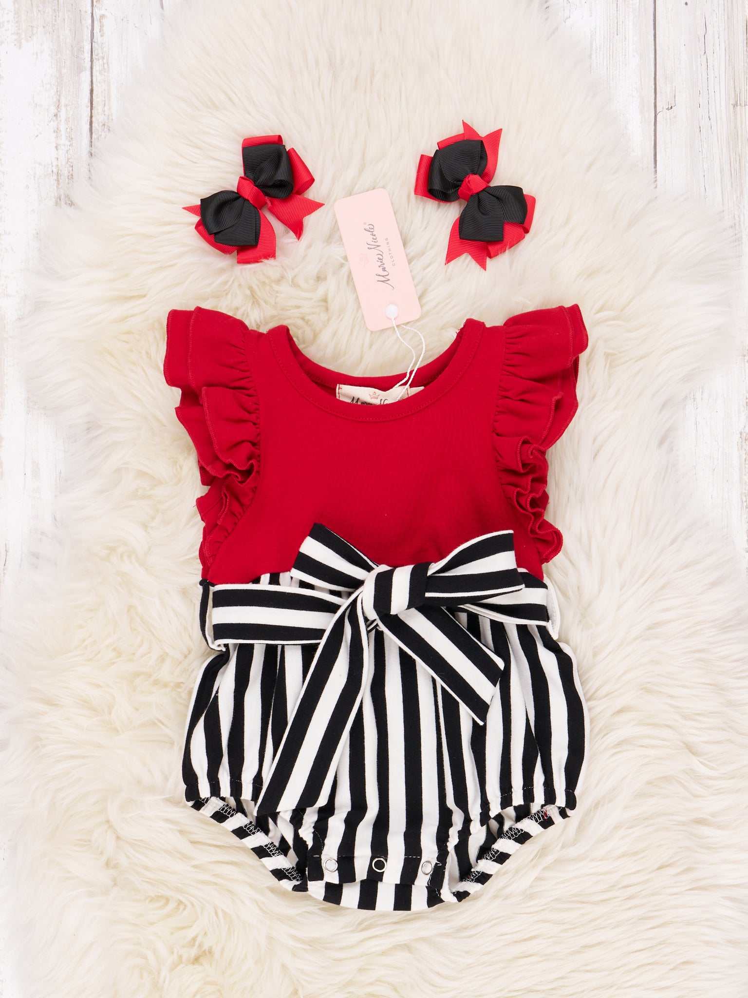 Red & Black Striped Ruffle Outfit
