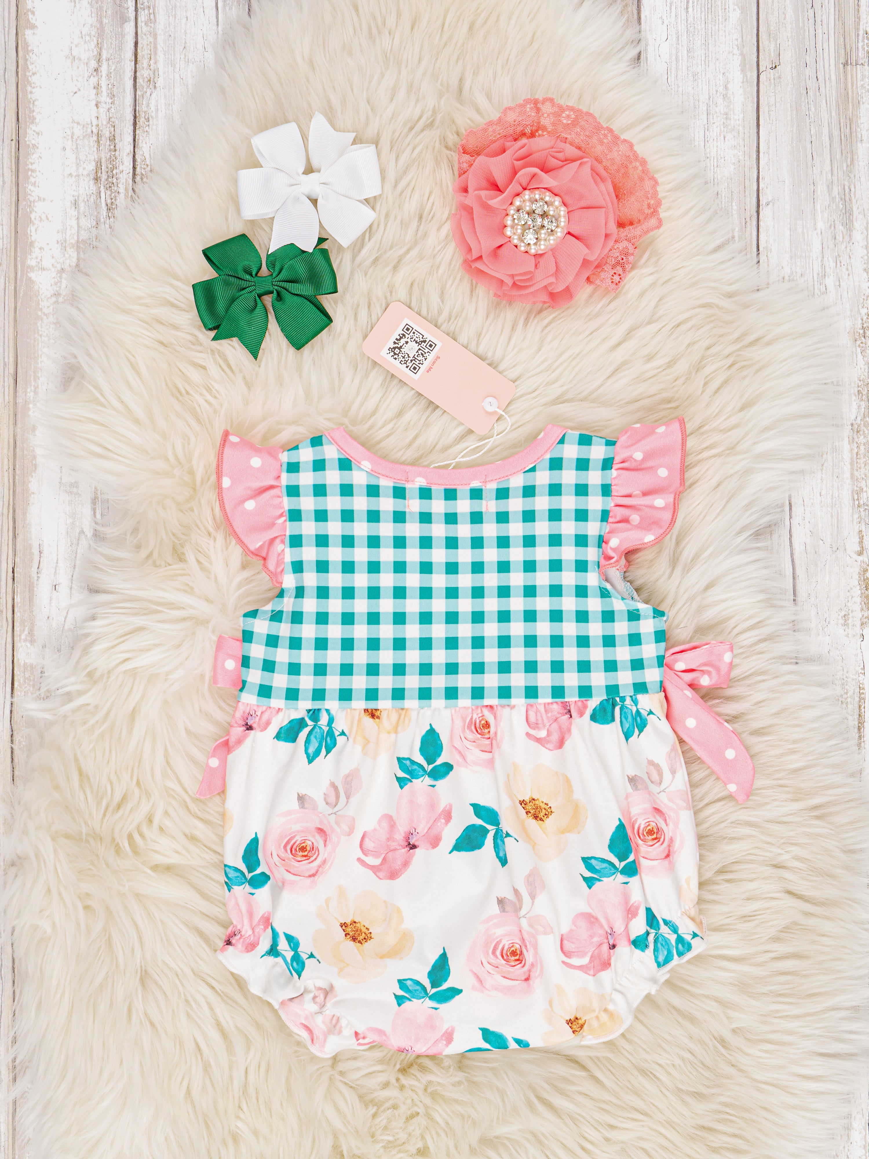 Gingham Floral Flutter Sleeve Bubble