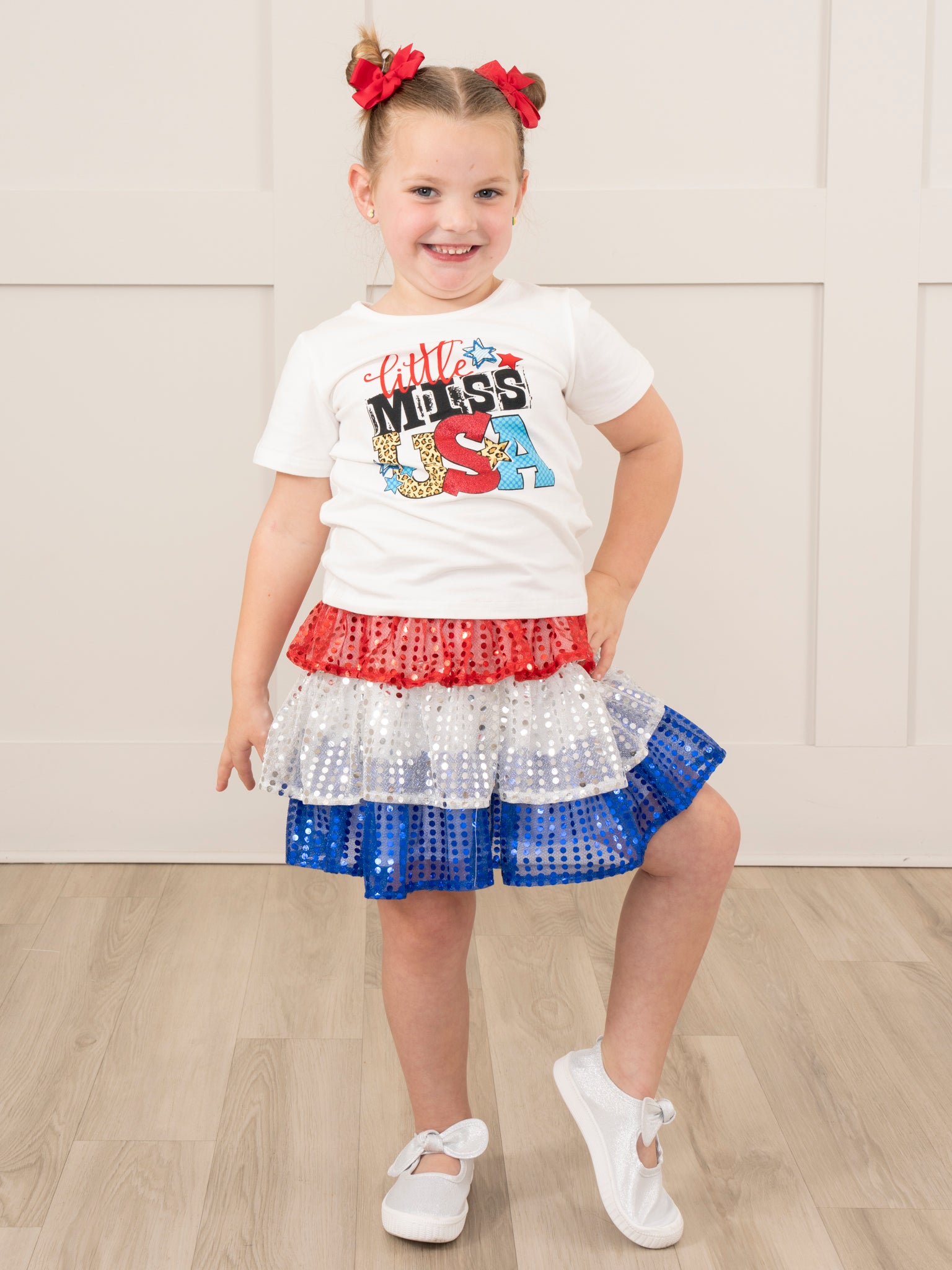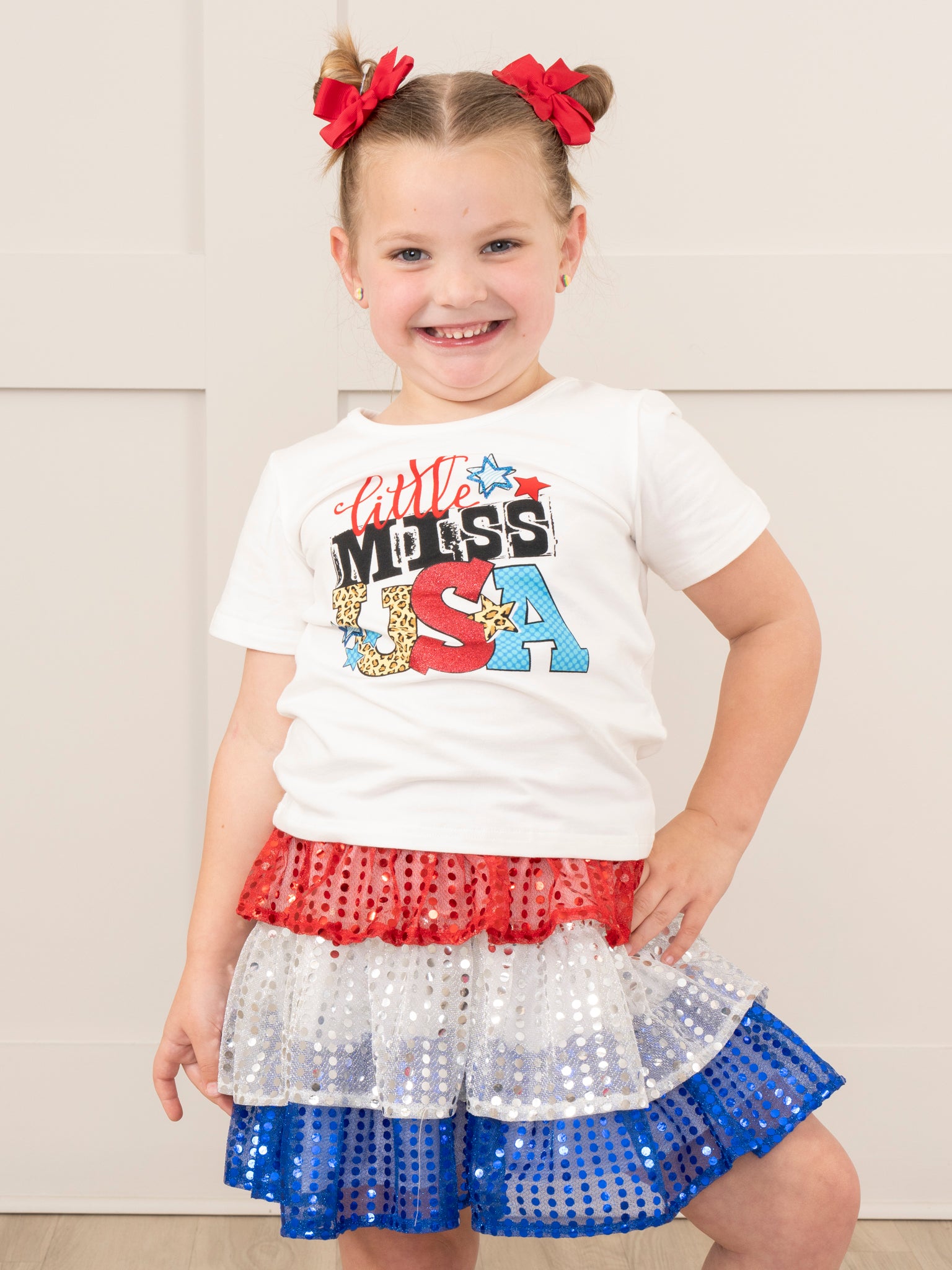 "Little Miss USA" Outfit w/ Tiered Sequin Skirt
