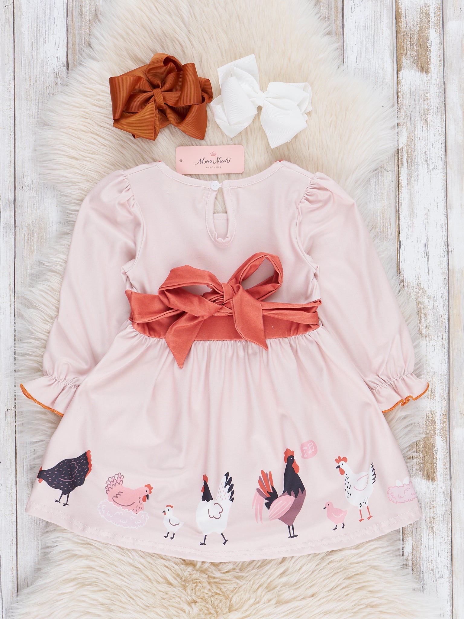 Time to strut your stuff in this chic Burnt Orange & Blush Chicken sister set! Show off your fashion feathers with the unique embroidered chicken design and a tie-back for an adjustable fit. Feeling extra feisty? Go for this look that'll truly make you stand out like the chicken of the flock. Sizzle, baby!