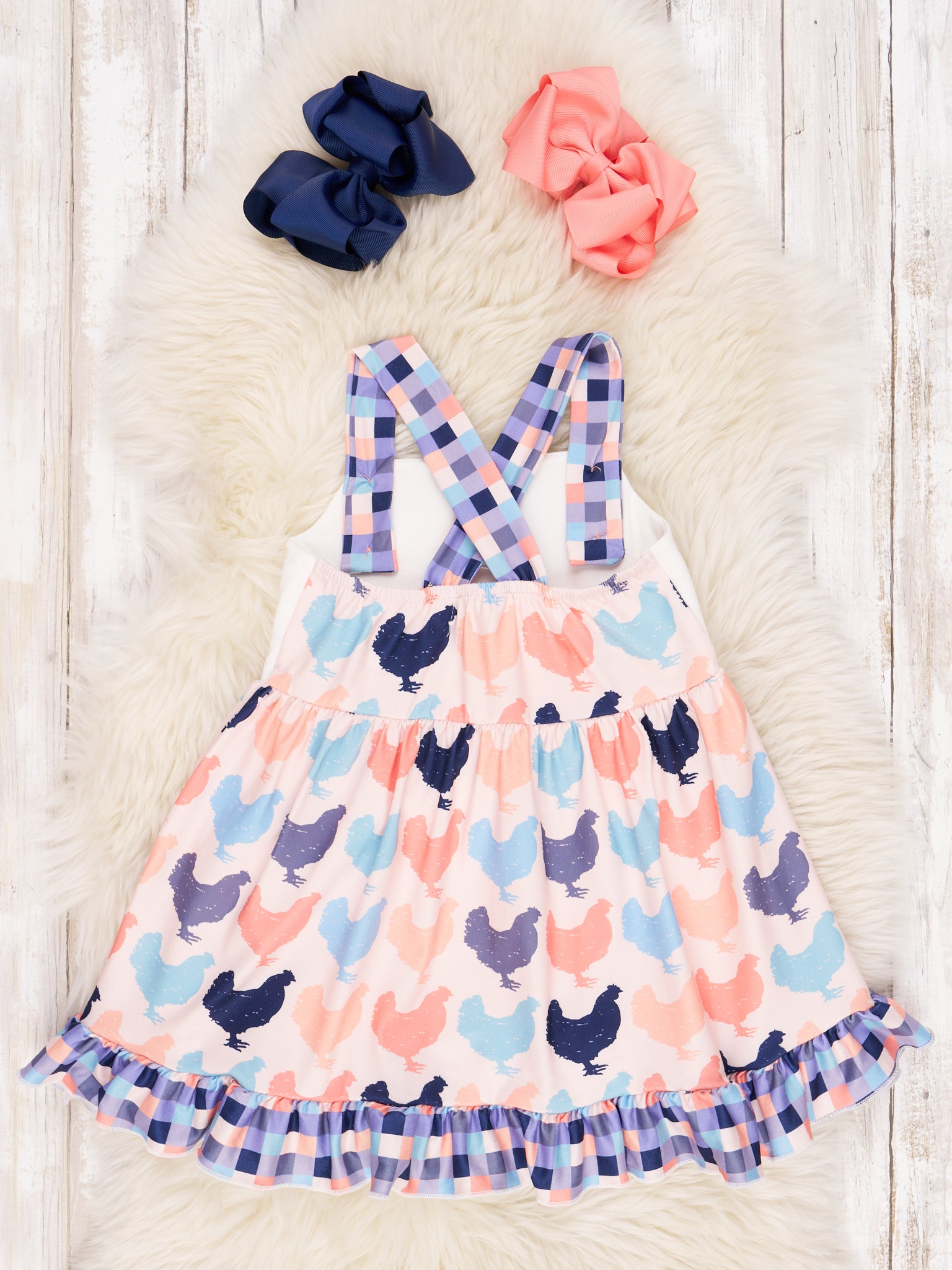 Say "howdy!" to this adorable sibling set! The Chicken Gingham Ruffle Dress is a cluck-tastically cute outfit for your little ones! They'll look adorable in this gingham-print and chicken detail ensemble.