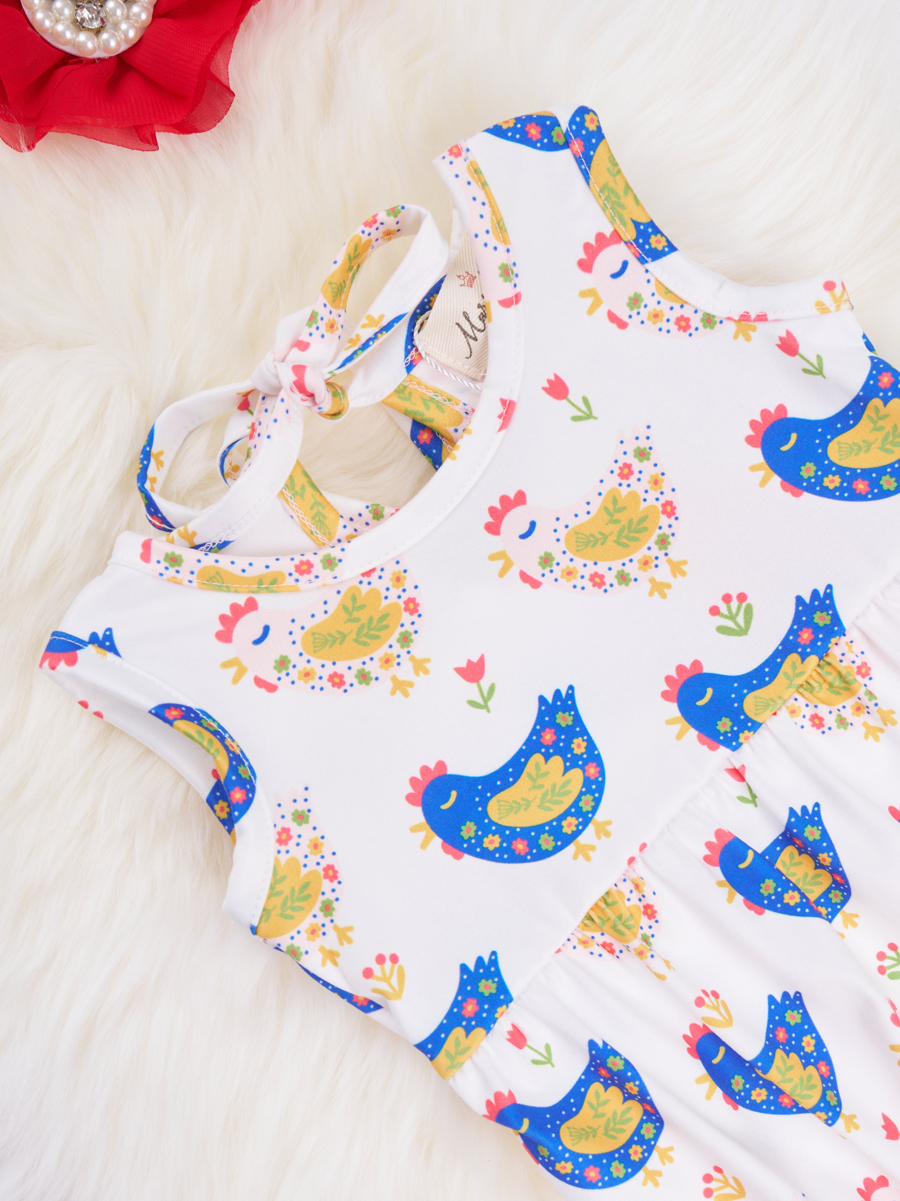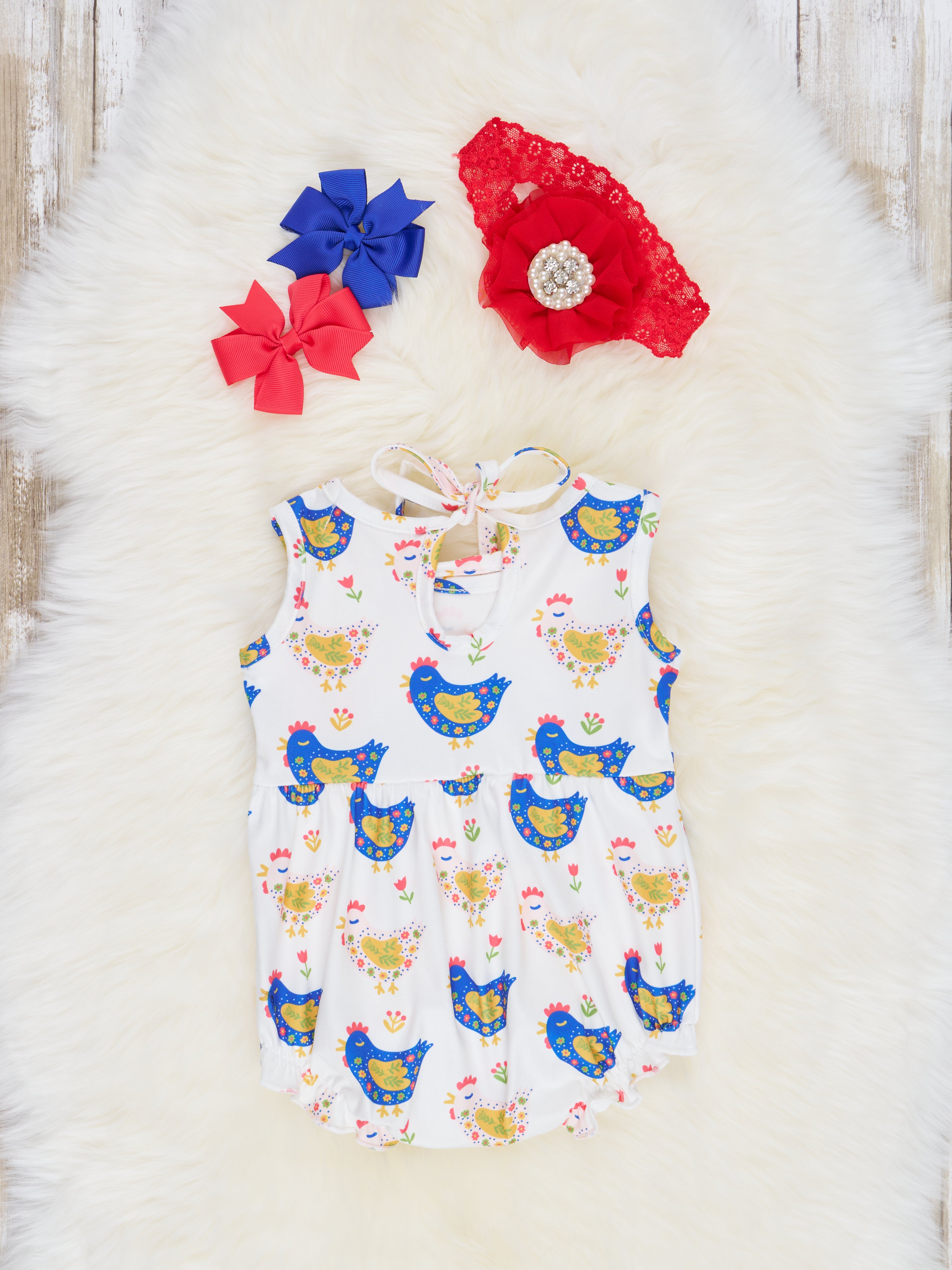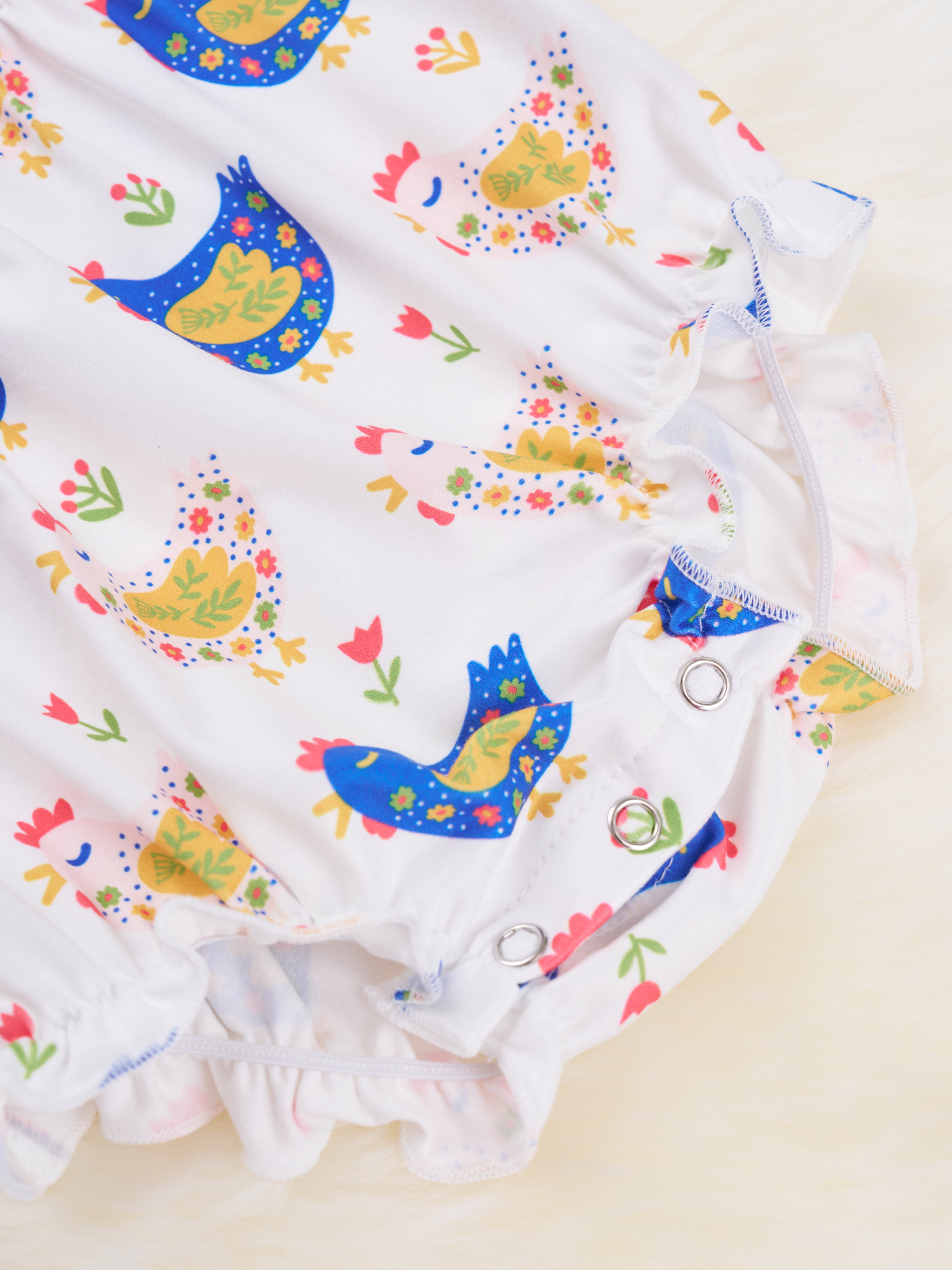 Time to fly the coop! Get those chicks ready to strut this sister set in this adorable Summer Chick Ruffle Bubble. Perfect for any little one with a flair for the feathered, this chicken print set ensures they'll look as cool as a cucumber!