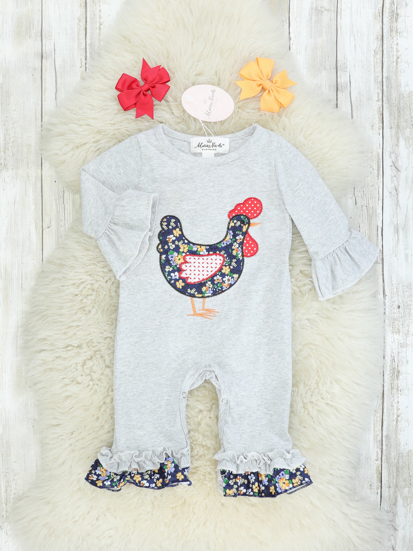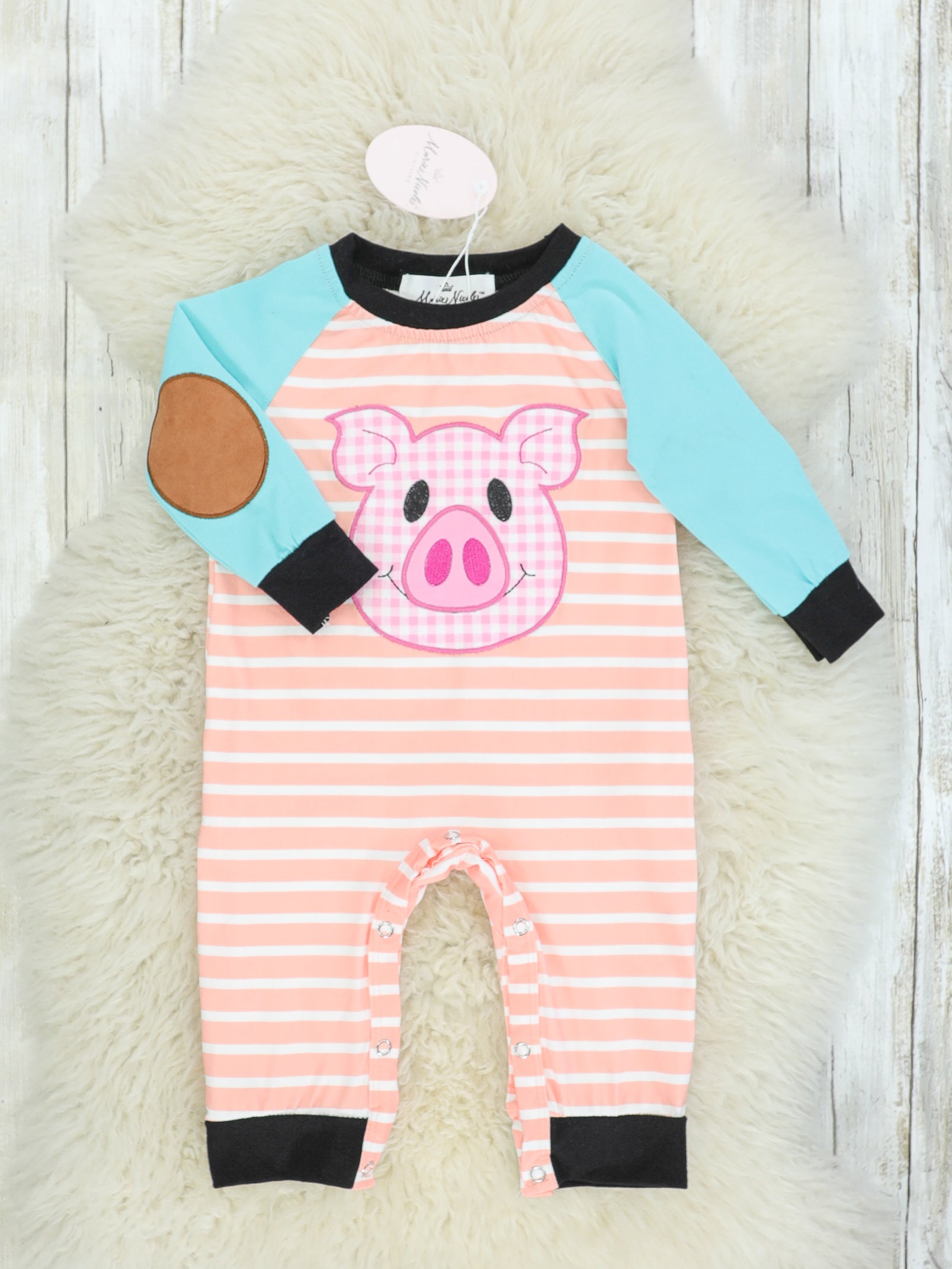 Pink Polka Dot & Floral Piggy Ruffle Romper