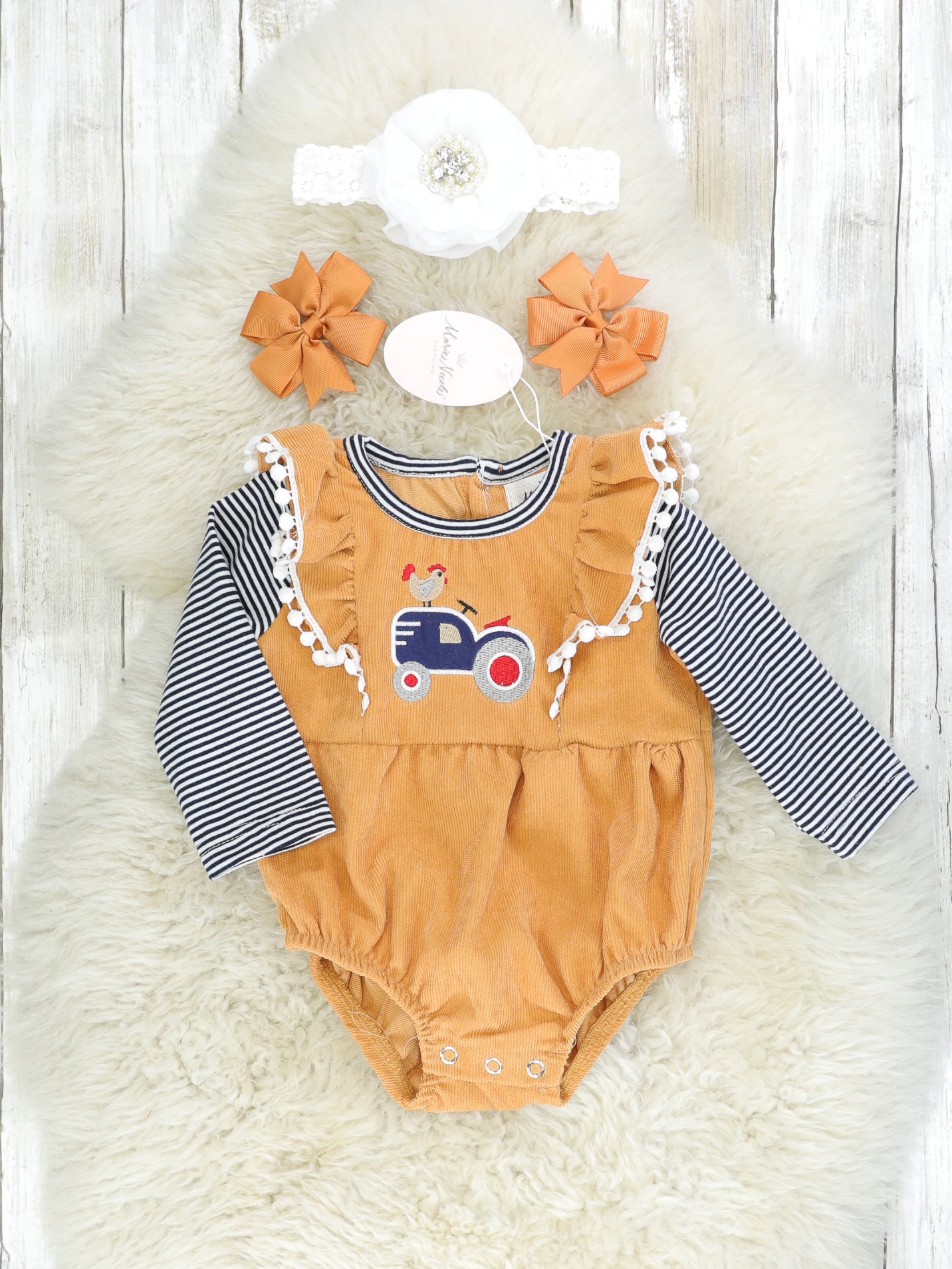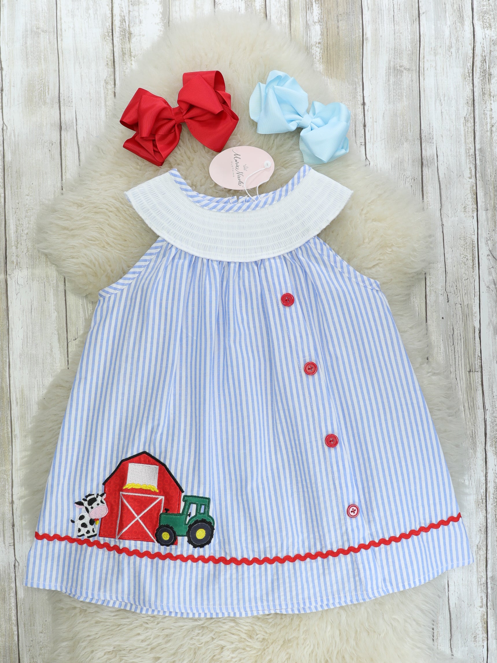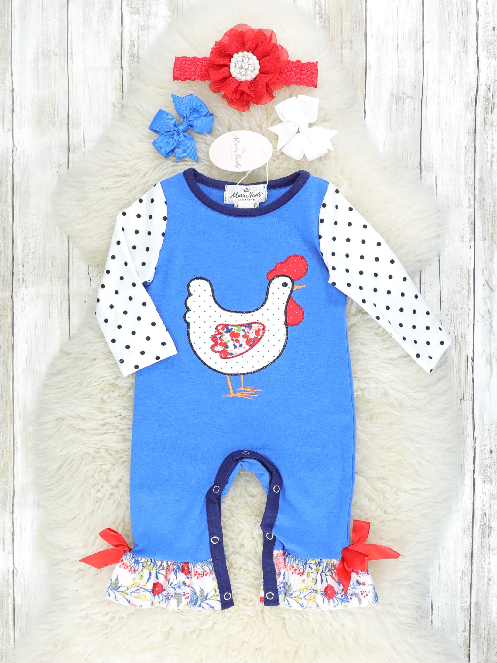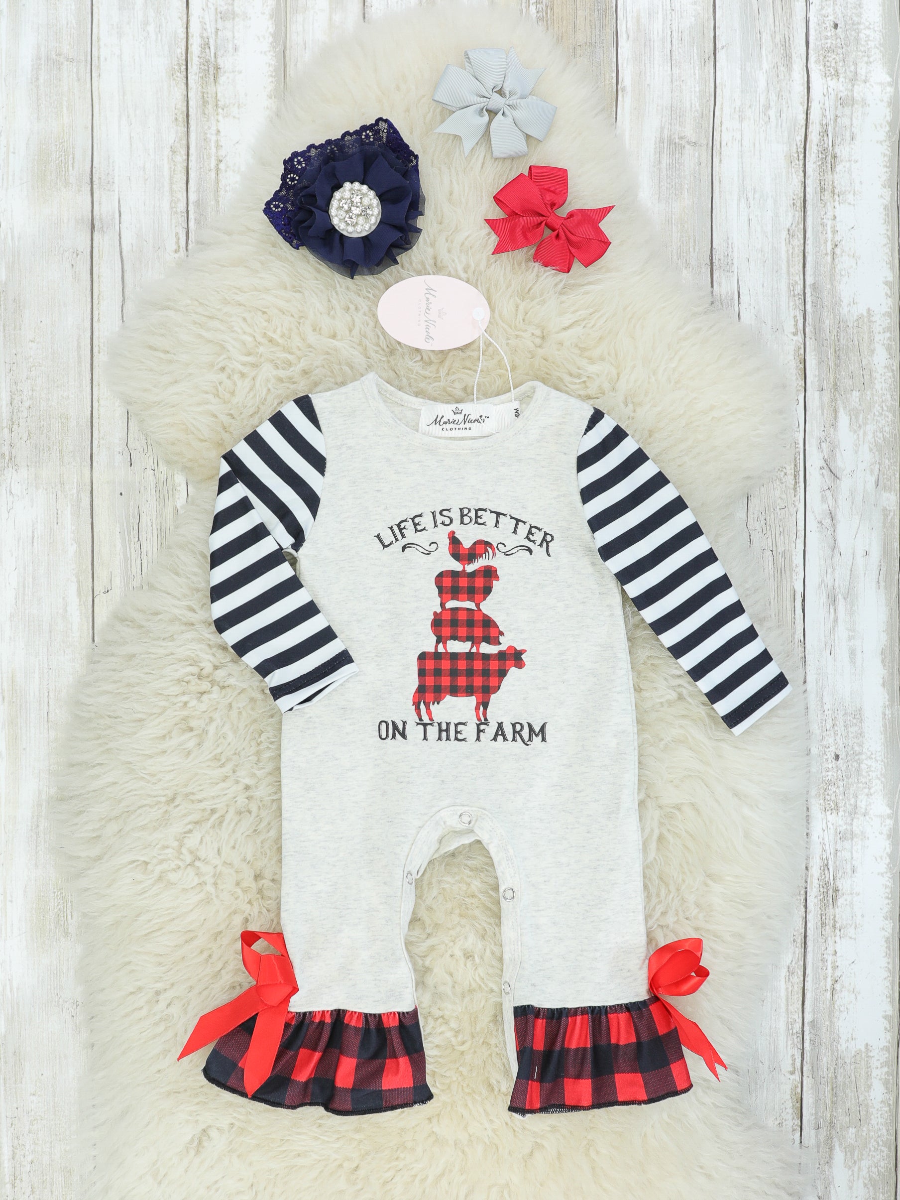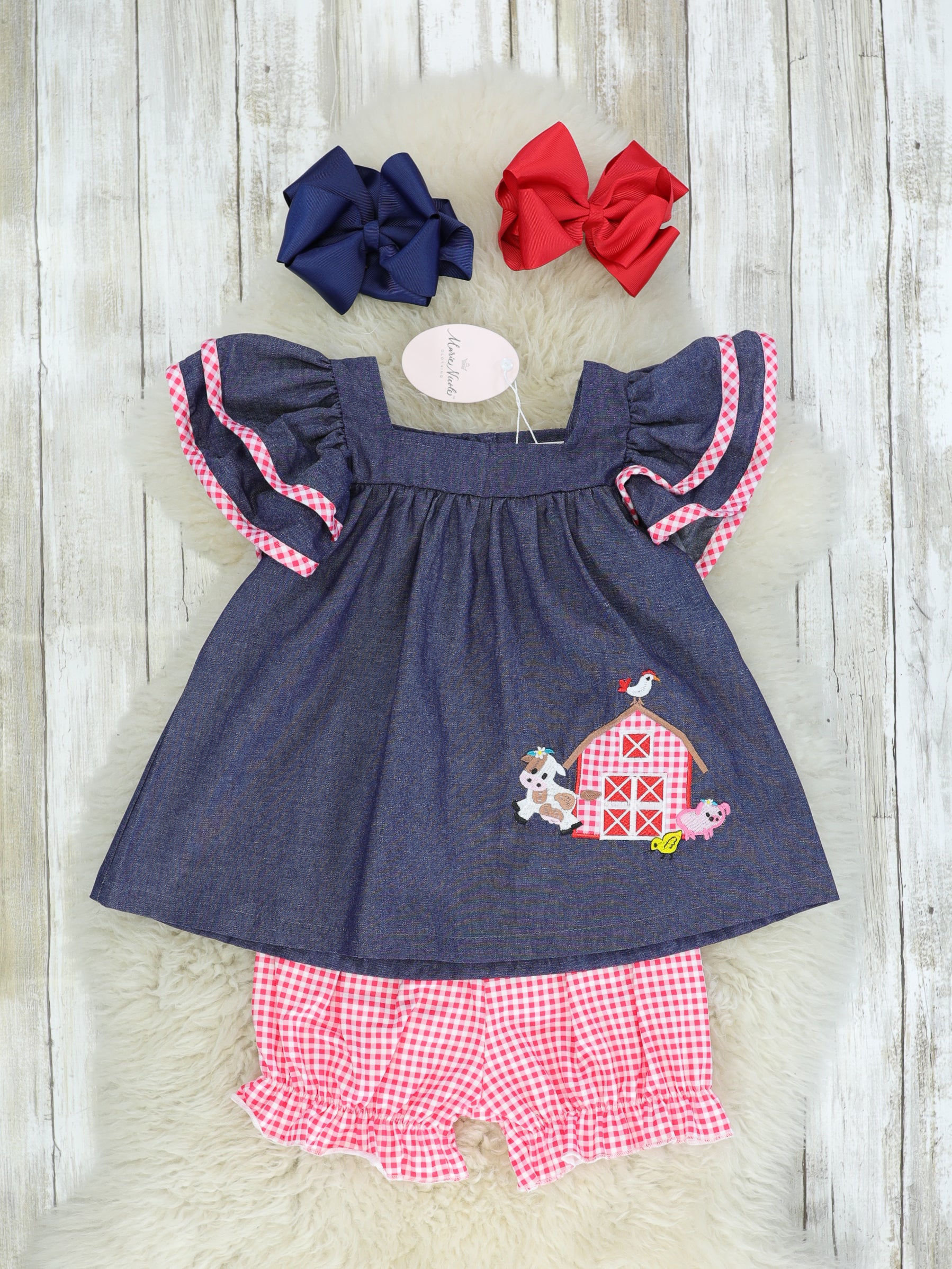 Navy "Farm" Cow Print Ruffle Top & Red Bottoms Outfit