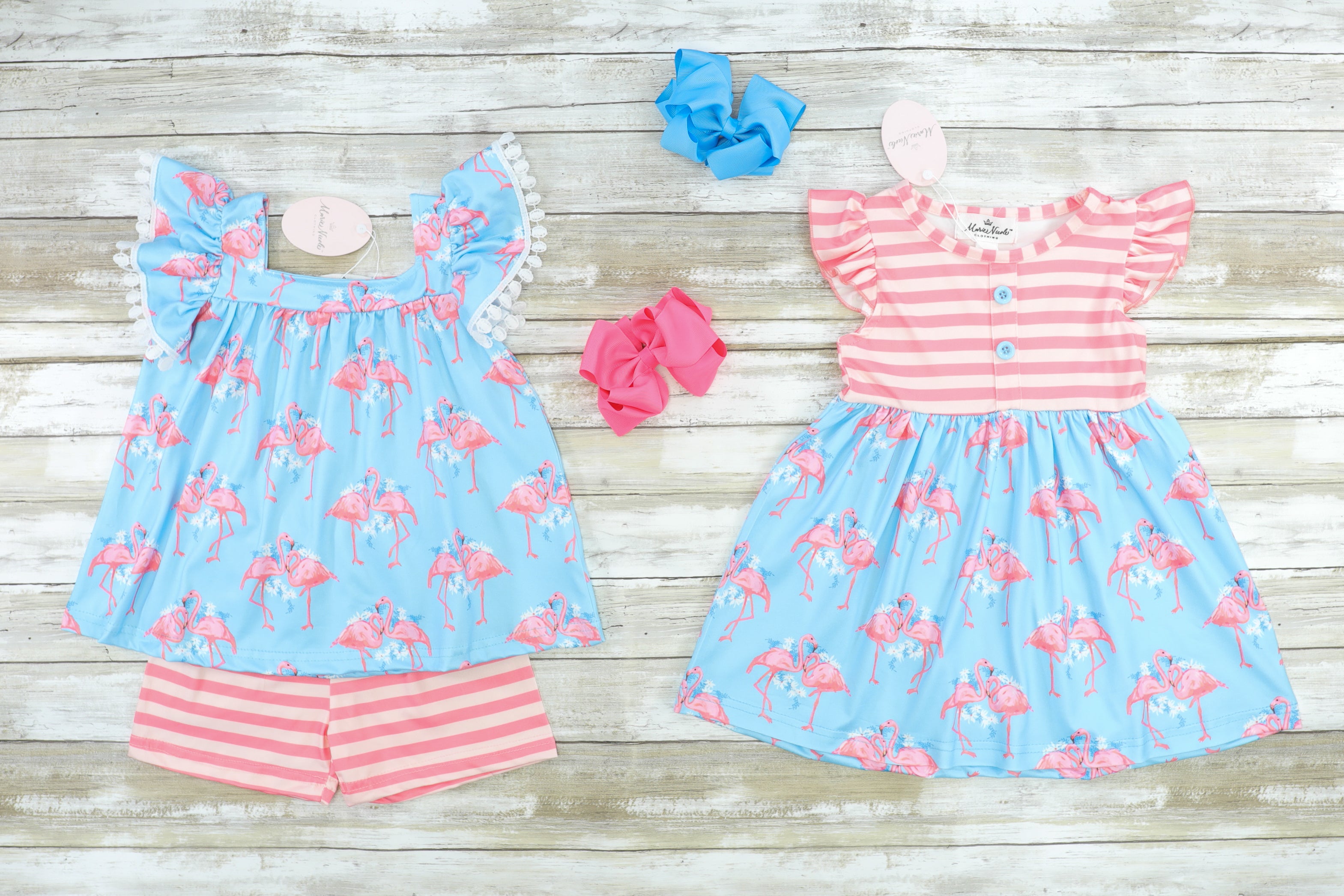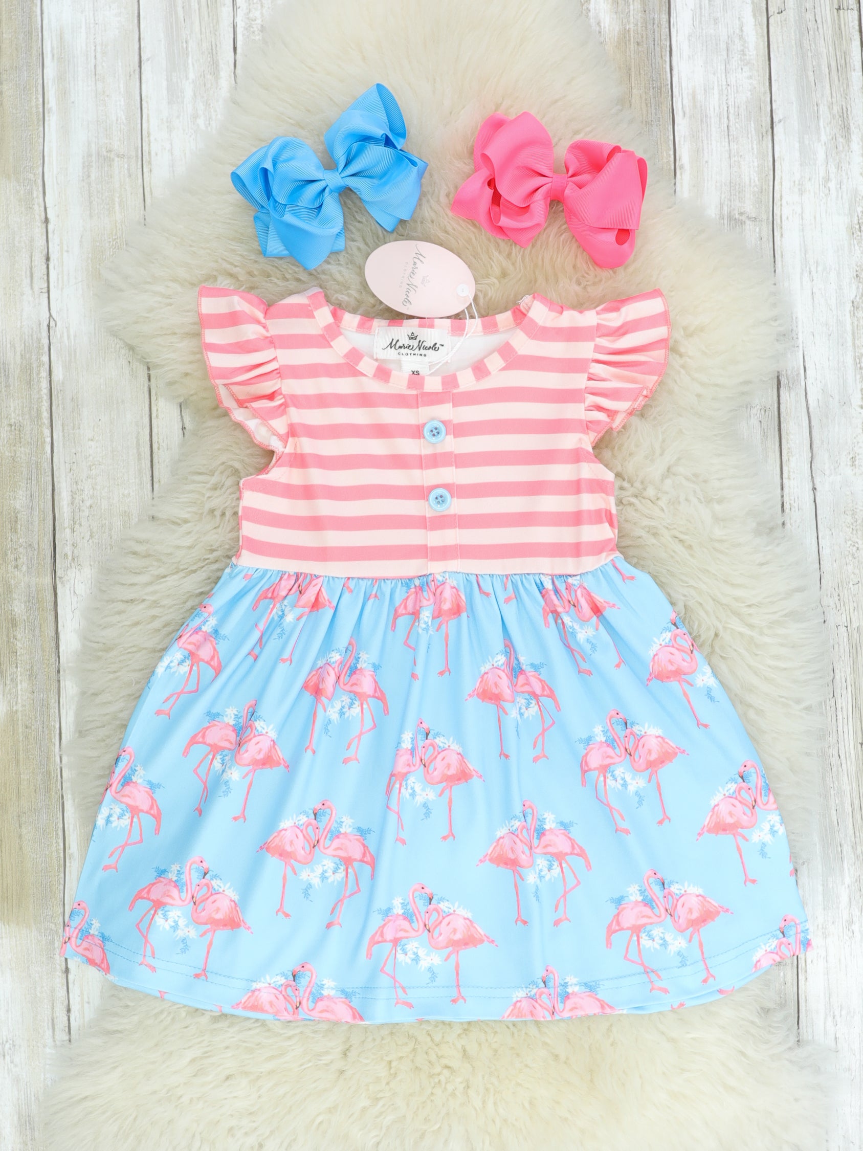 Pink & Blue Flamingo Flutter Sleeve Floral Dress