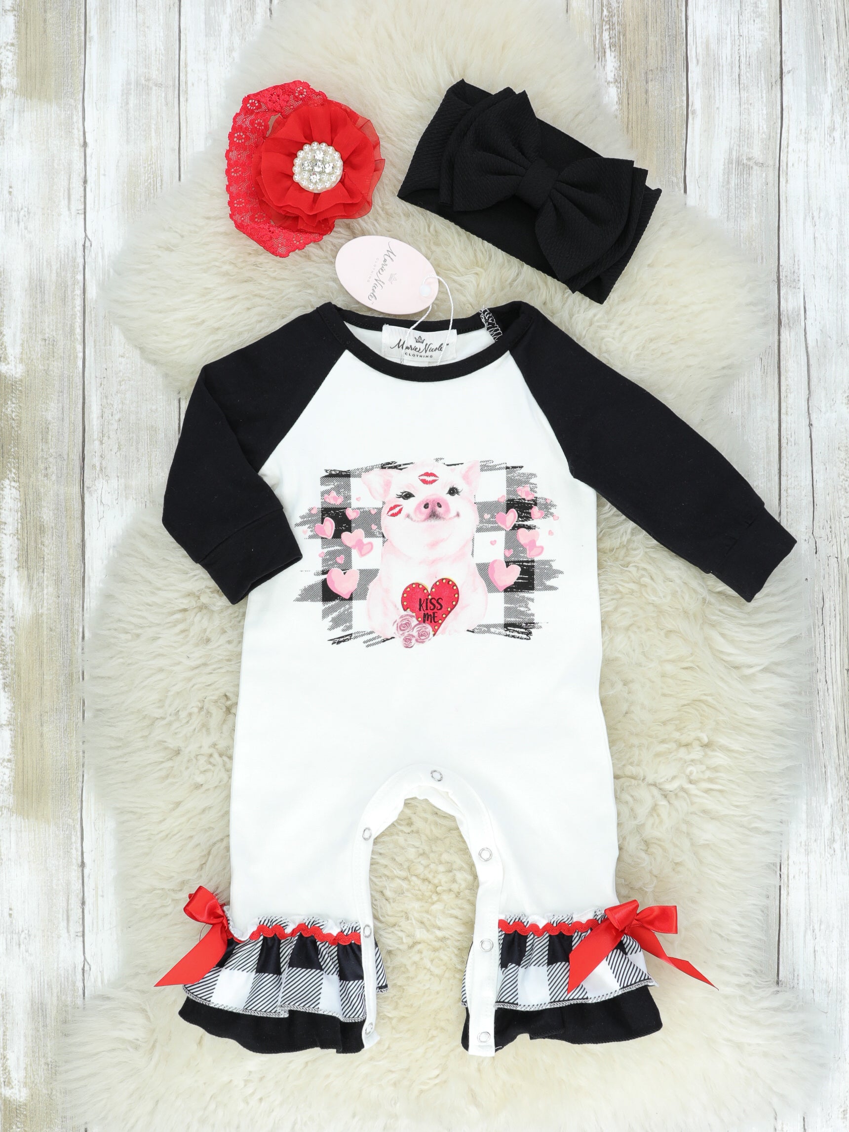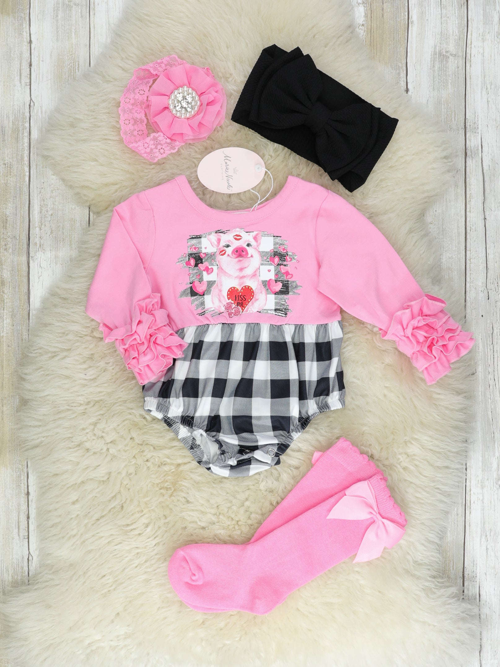 Pink Buffalo Plaid Piggy Icing Romper With Socks