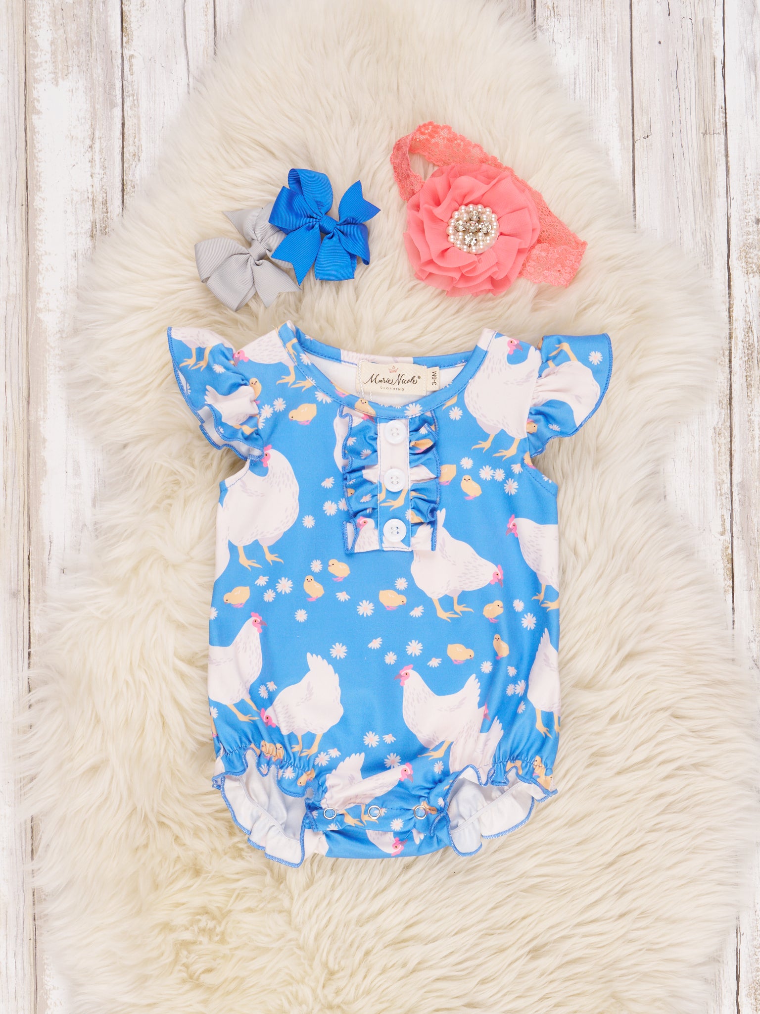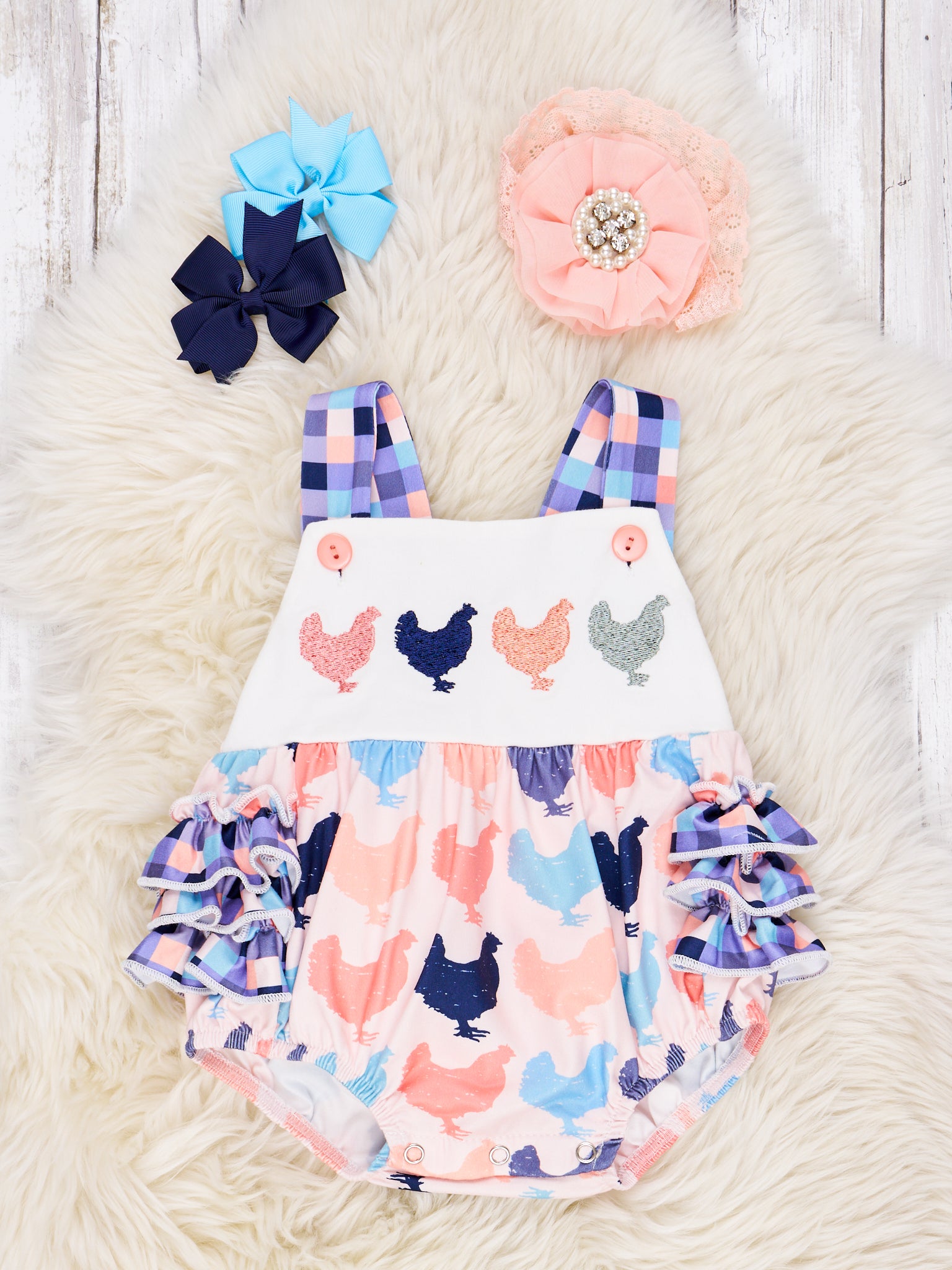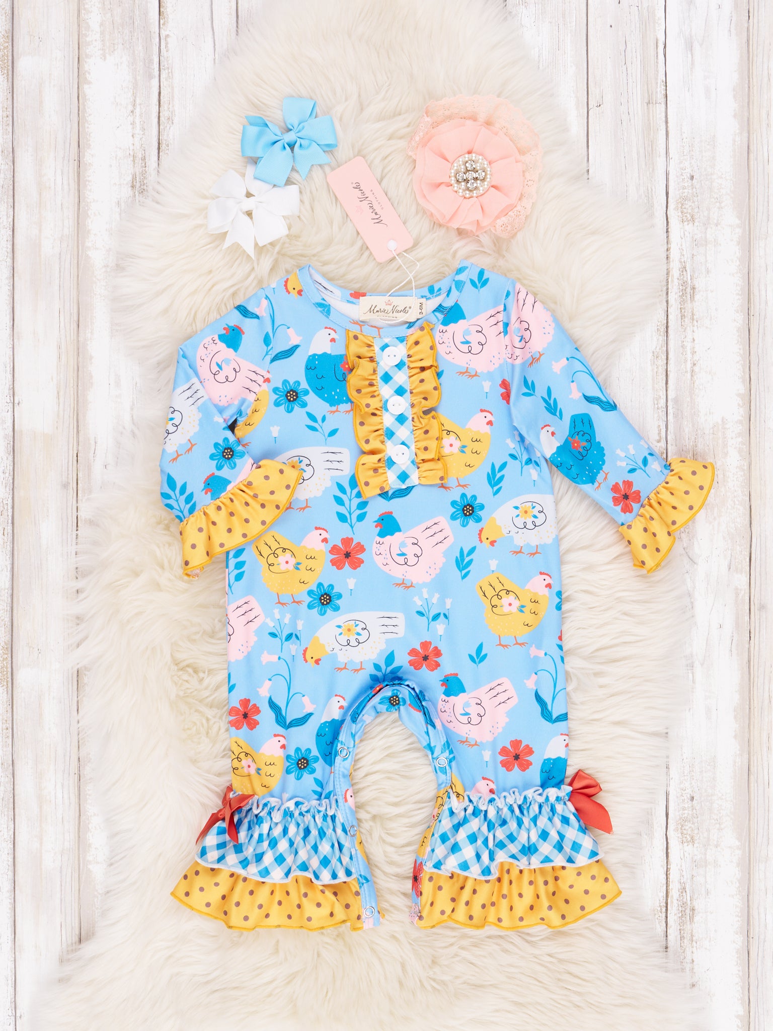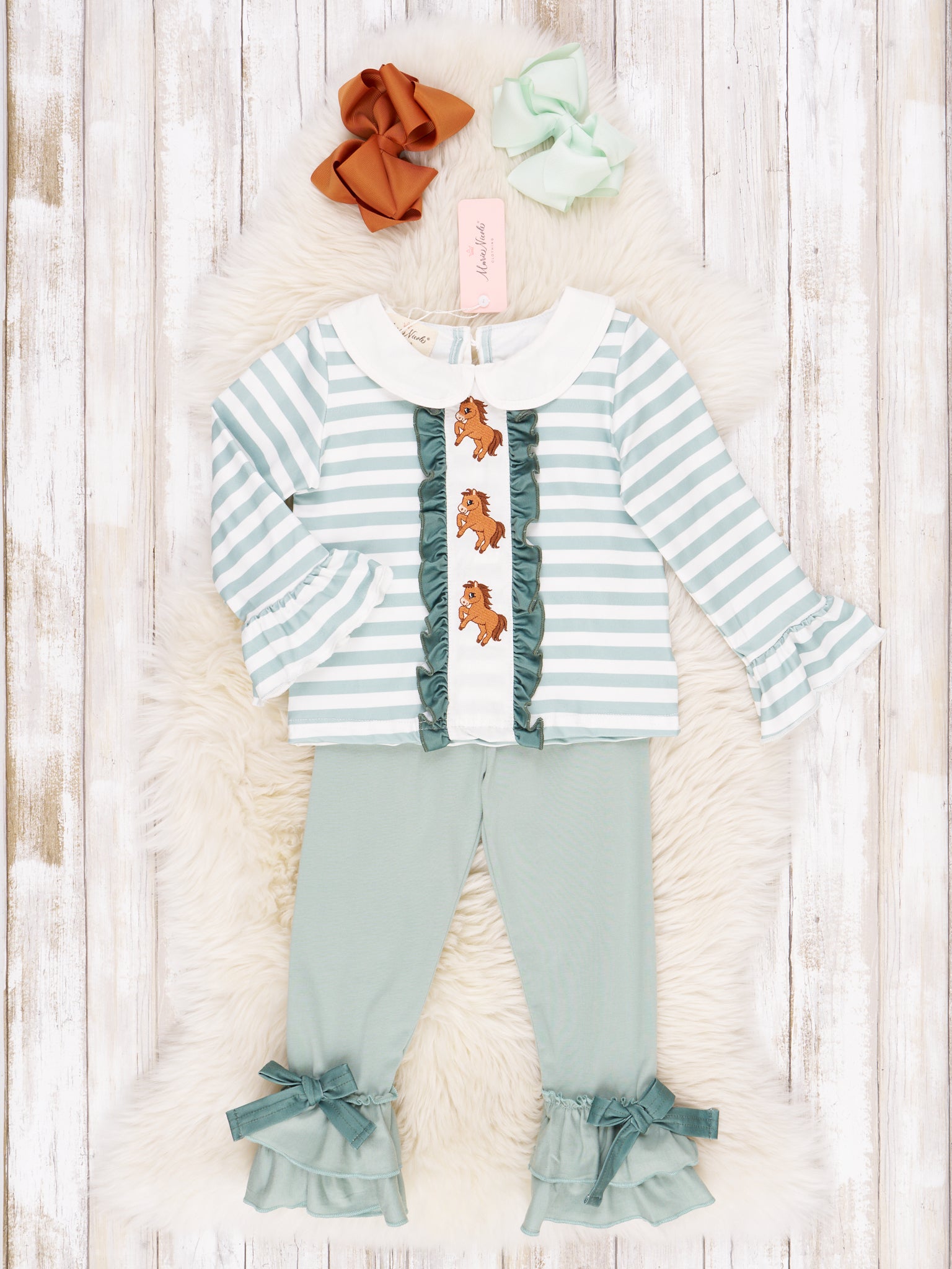 Green & White Stripe Embroidered Horse Ruffle Romper
