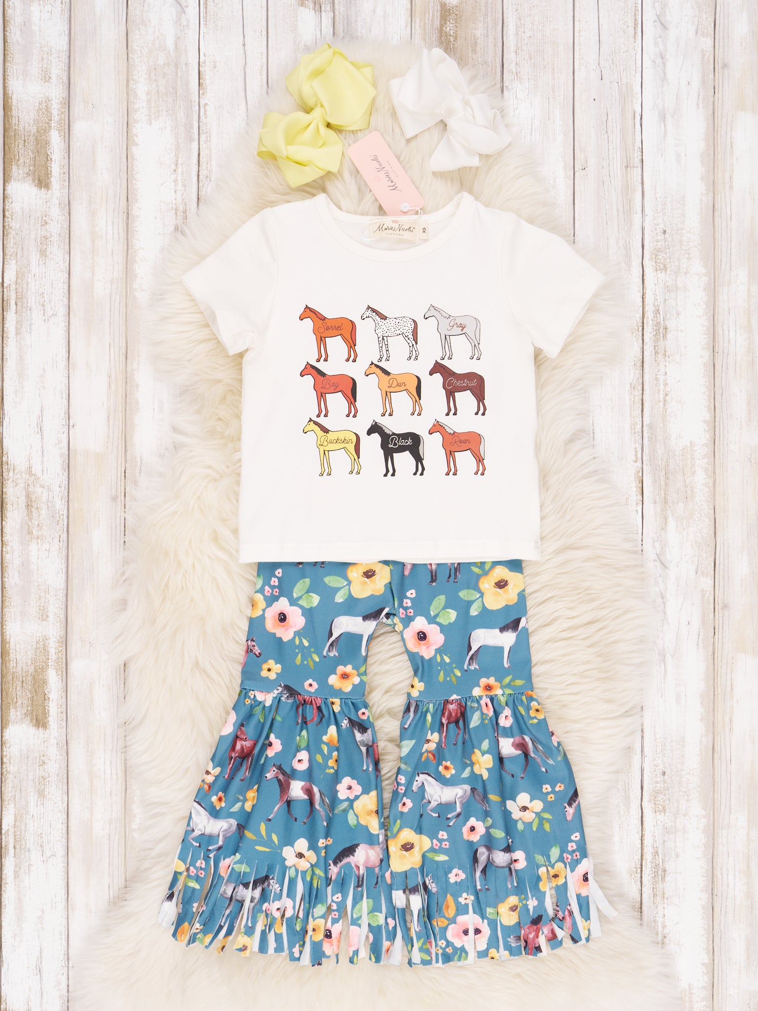 Green & White Stripe Embroidered Horse Pajamas - Boys & Girls