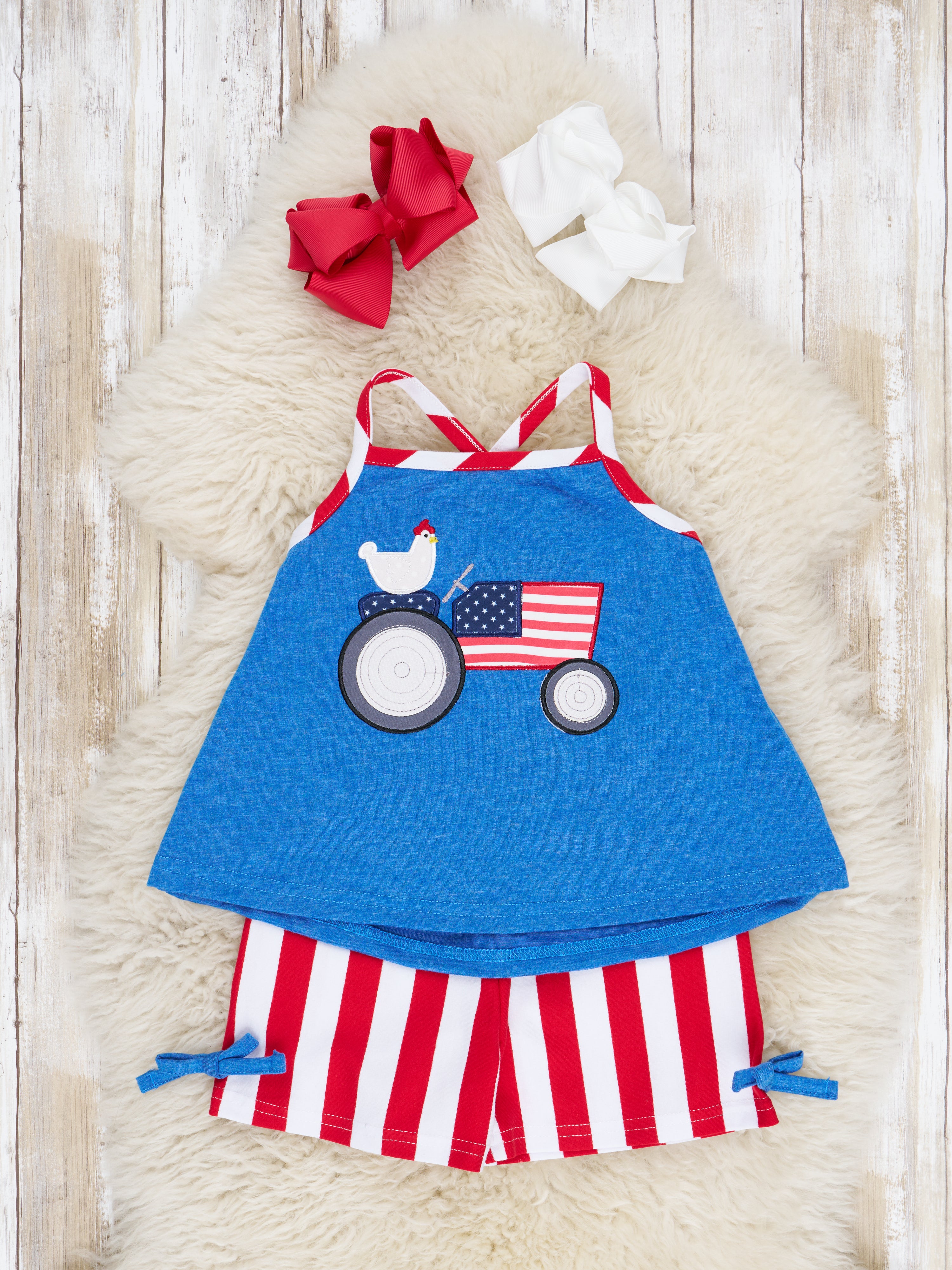 Green & Yellow Striped Tractors Two-Piece Swimsuit