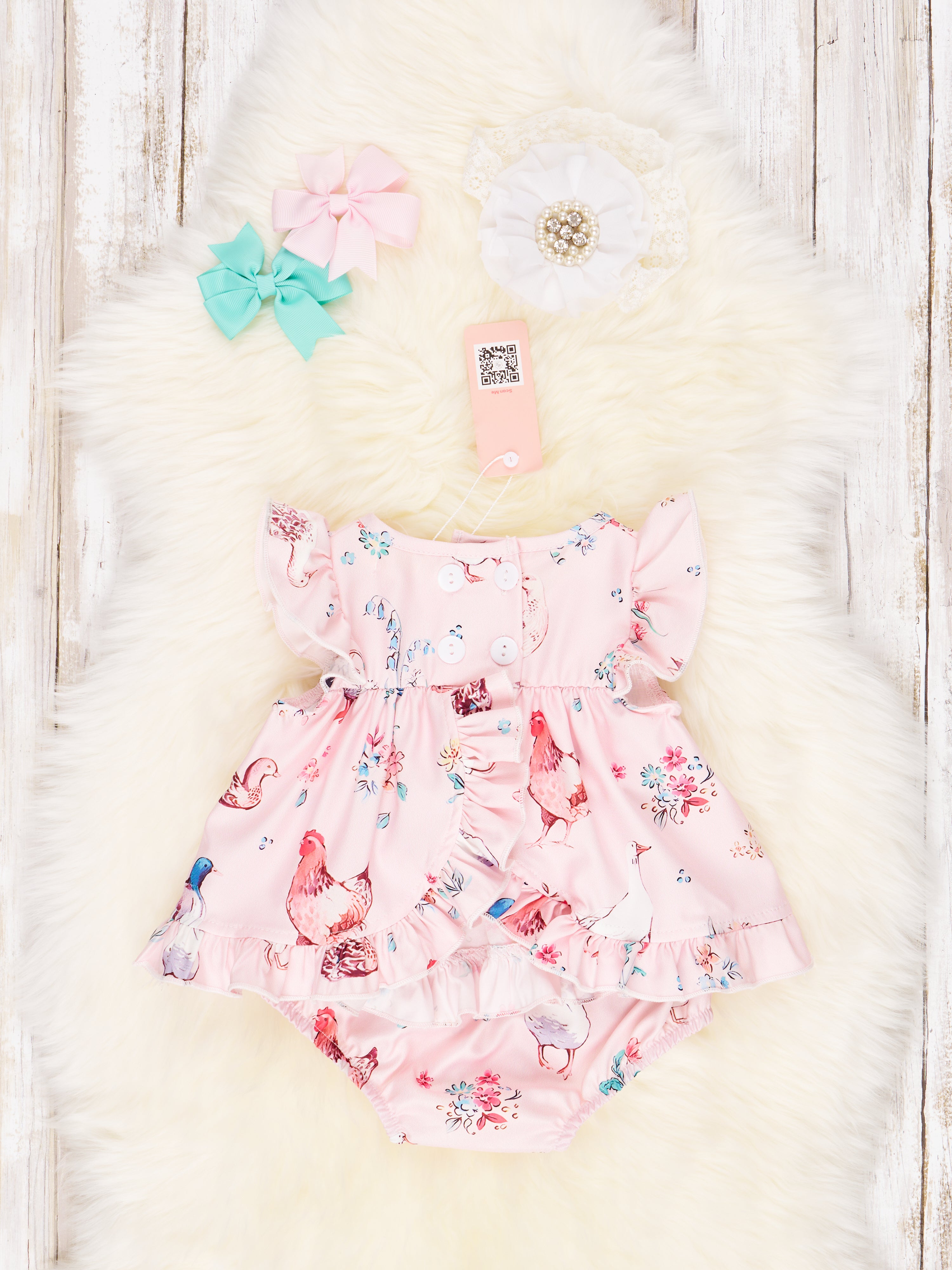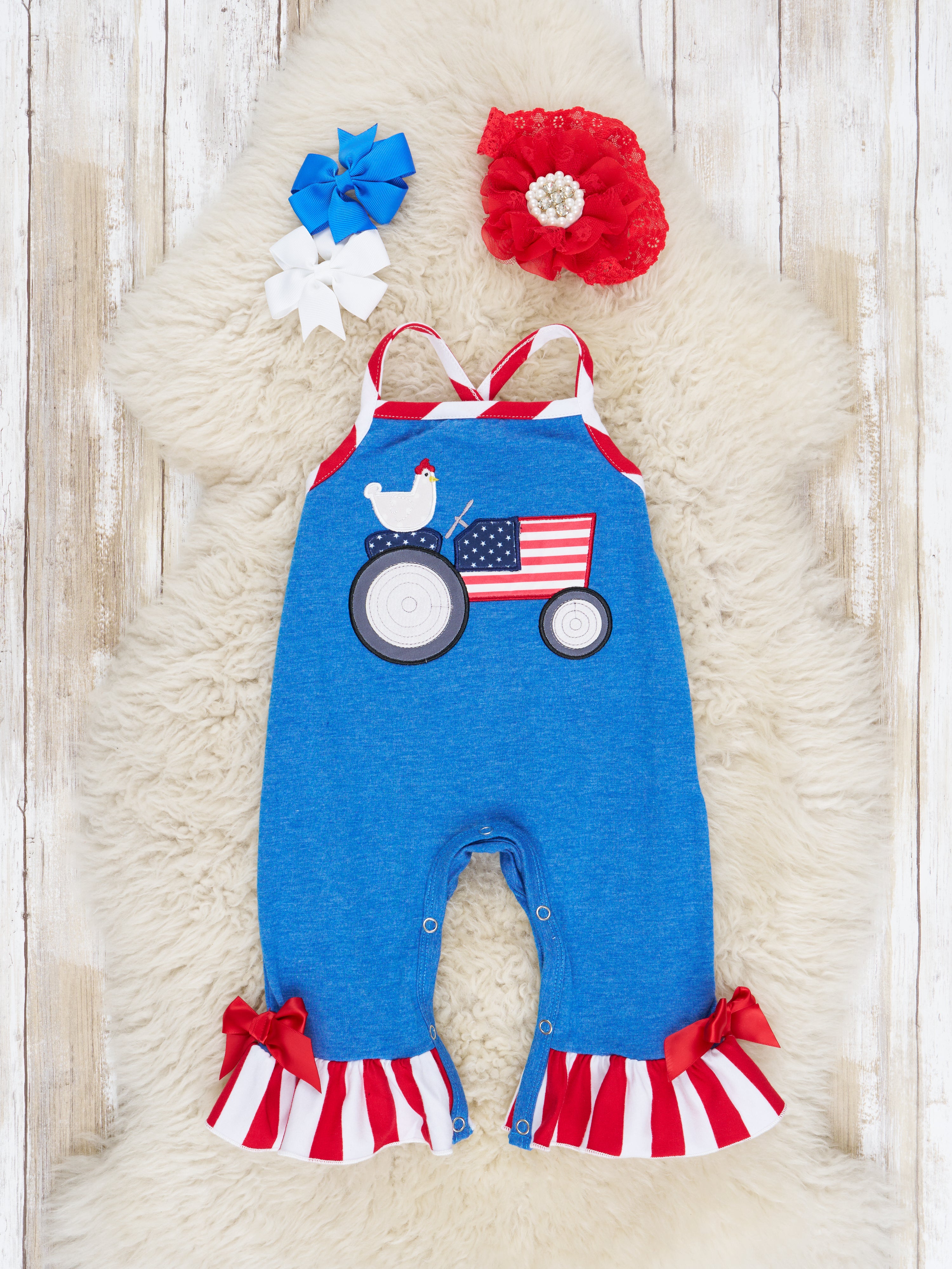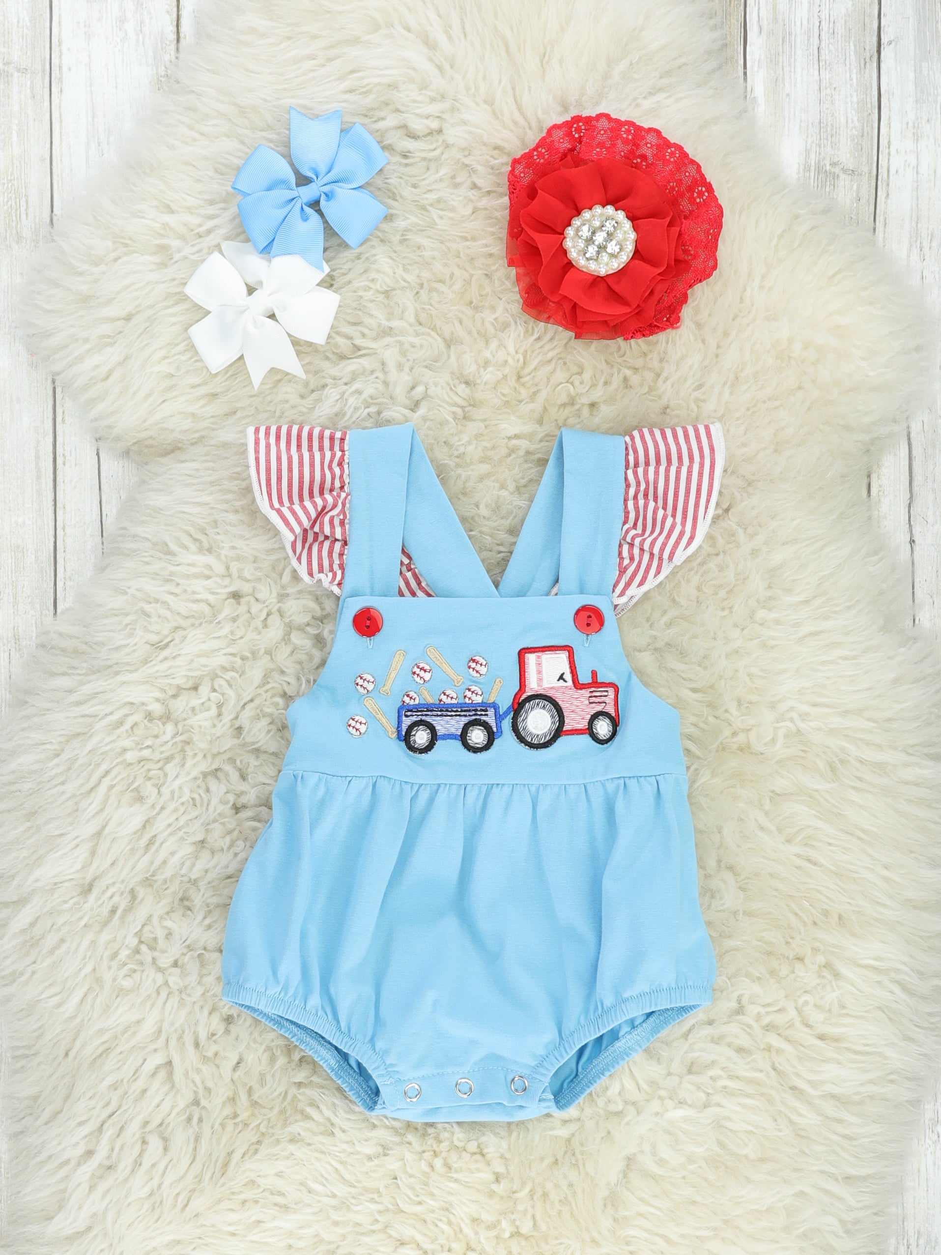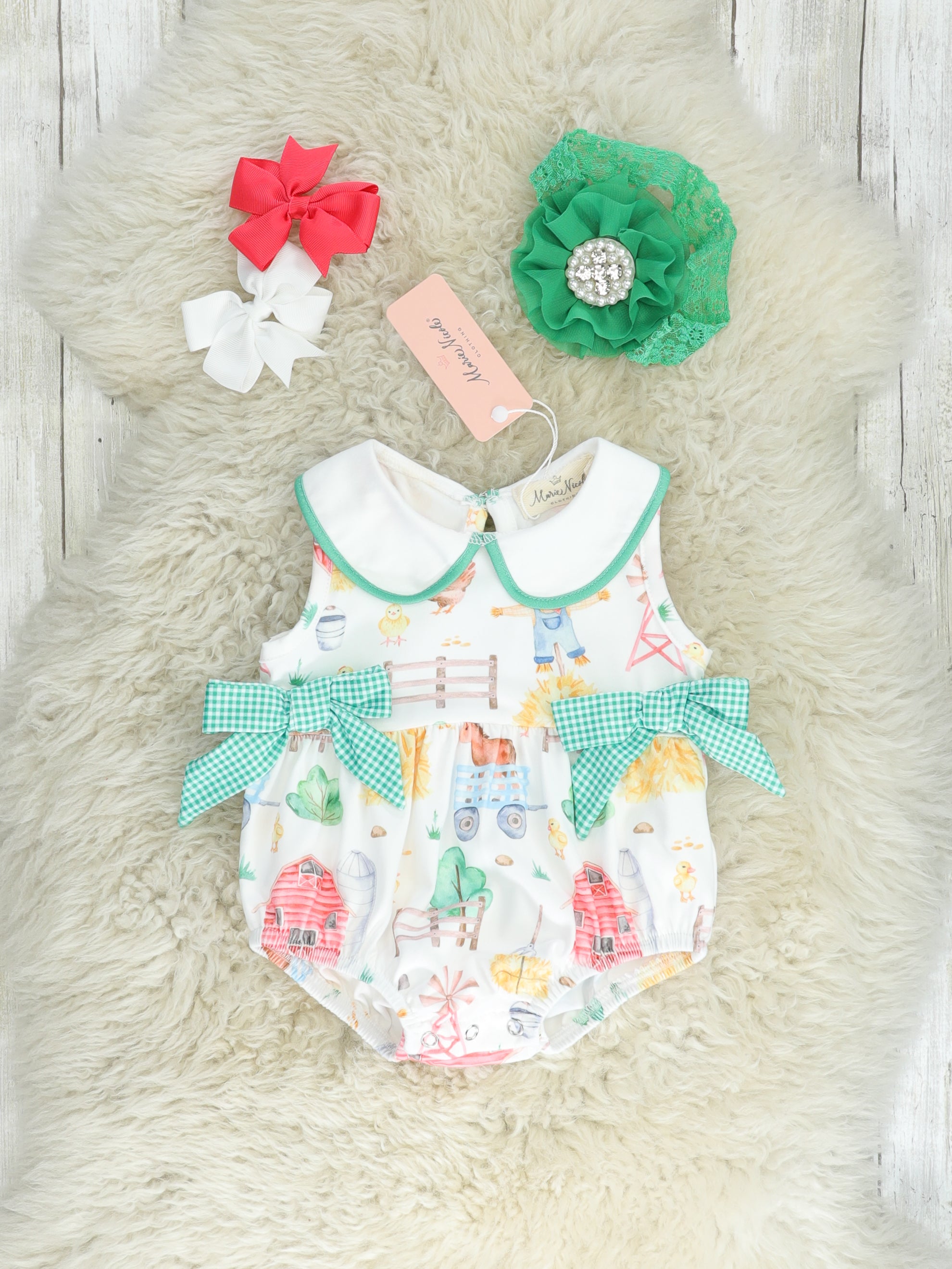 Green & Yellow Striped Tractors One-Piece Swimsuit