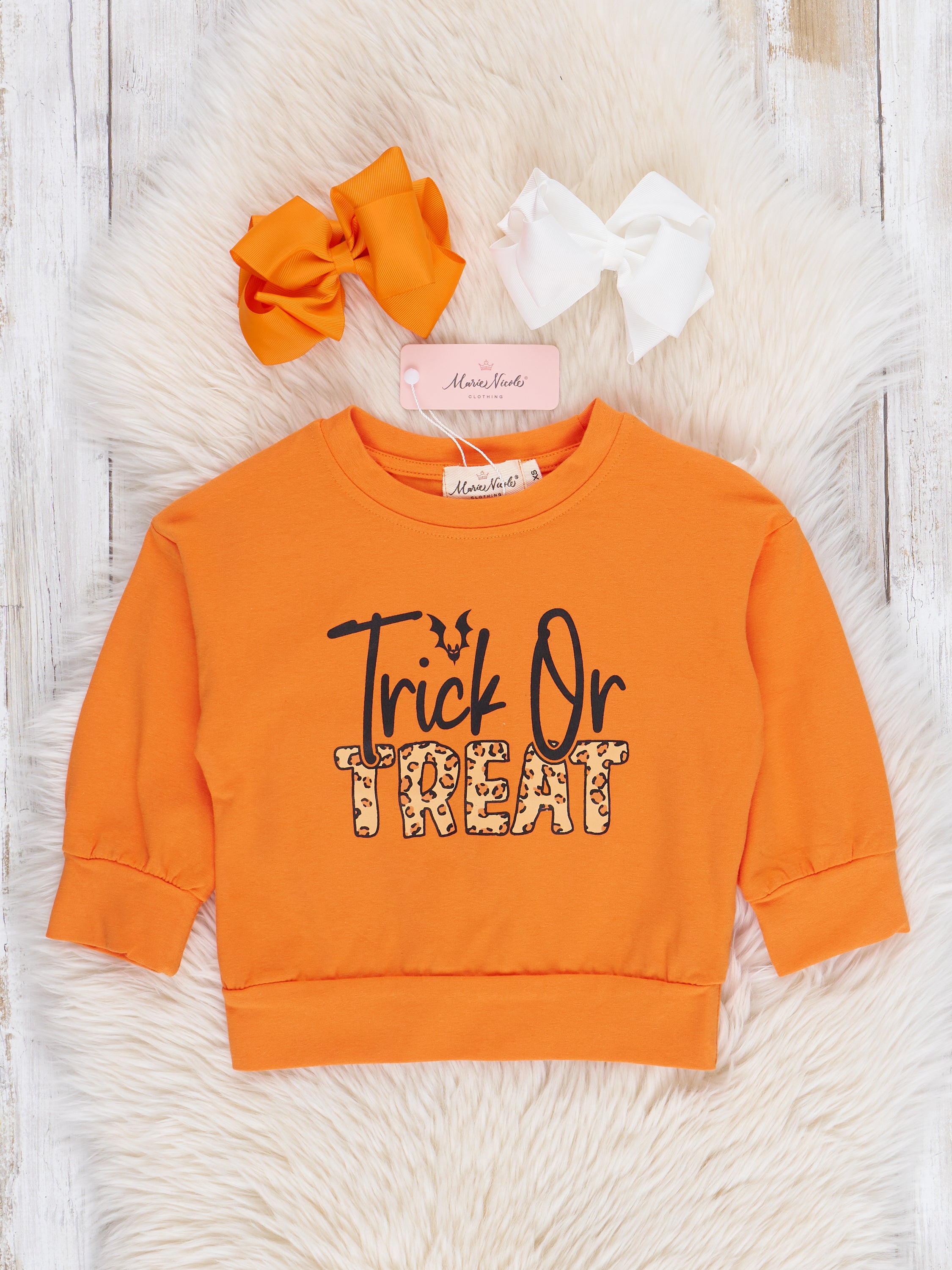 Orange & Leopard Print "Trick or Treat" Crew Neck