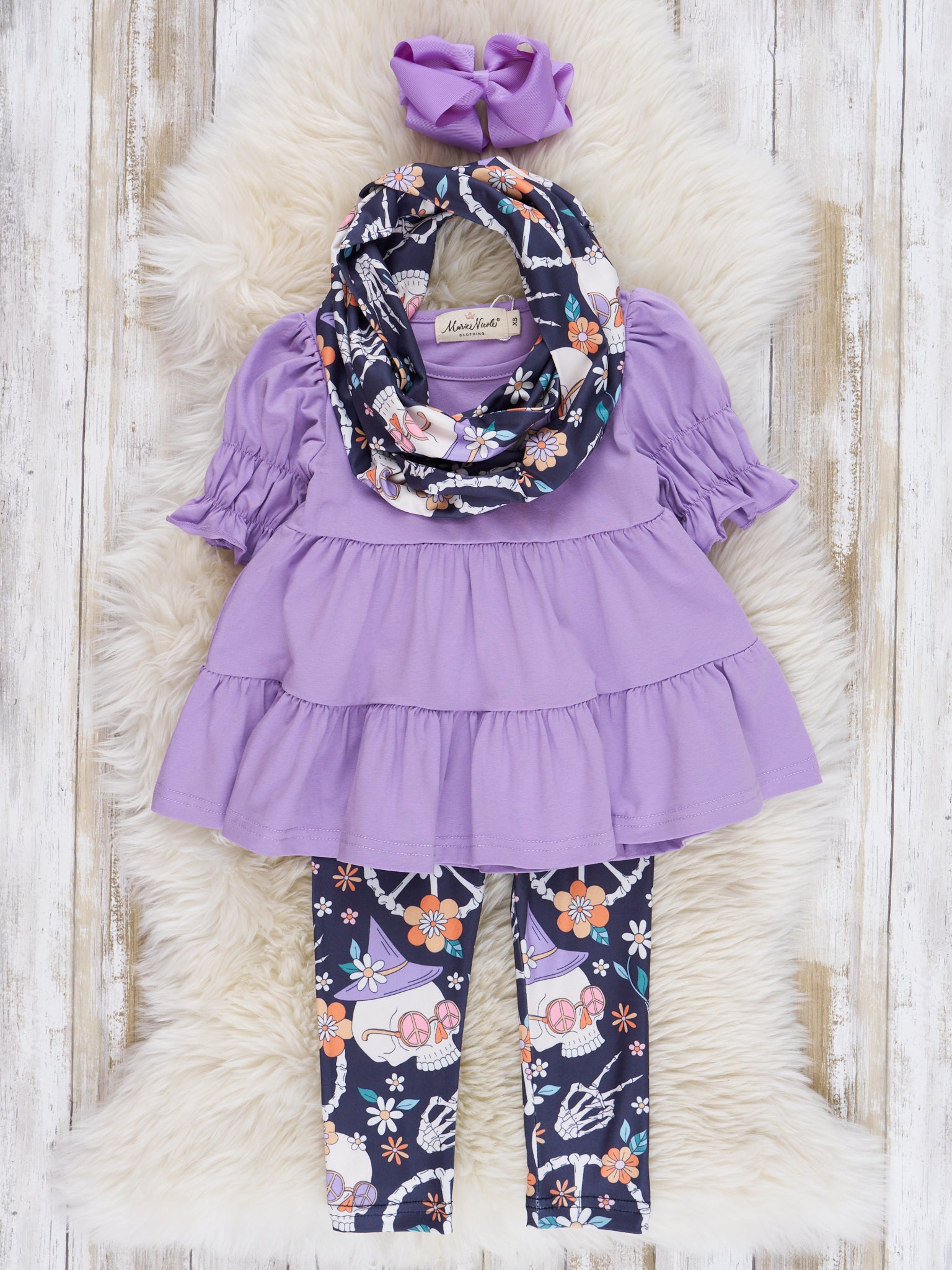 Lilac & Navy Groovy Halloween Floral Ruffle 3 Piece Set