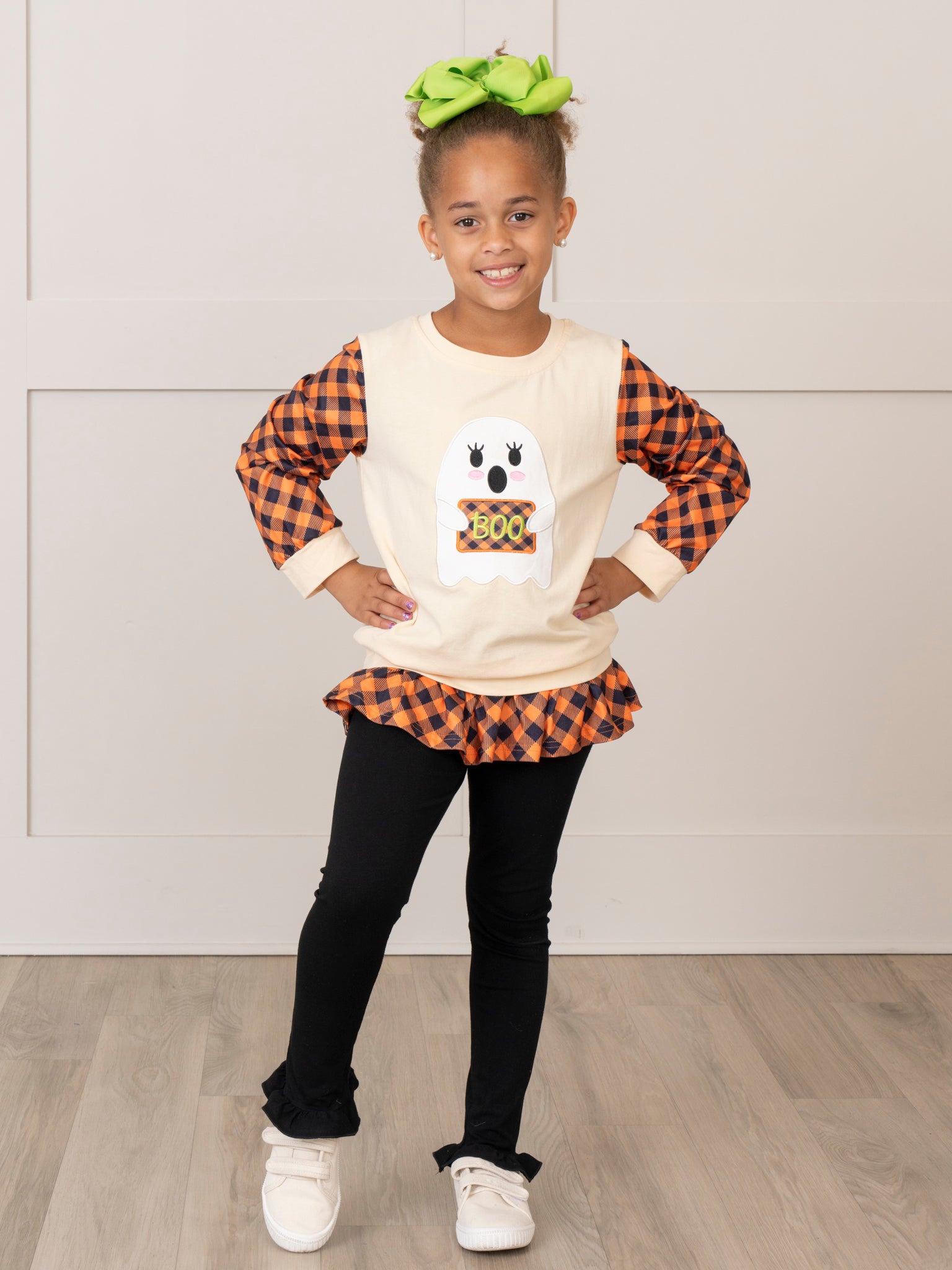 Orange Trick or Treat Ruffle Suede Skirt Set