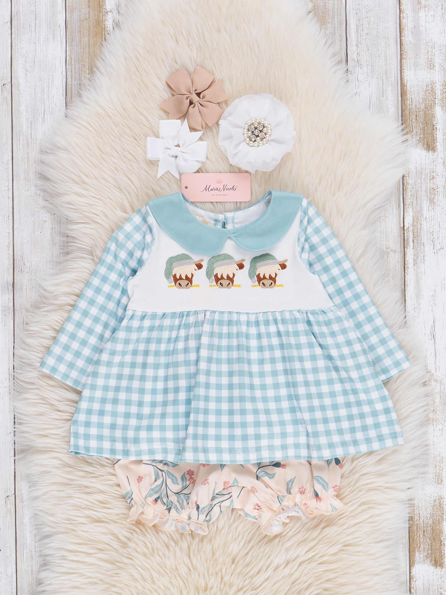 Turquoise Embroidered Floral Bunny Ruffle Dress