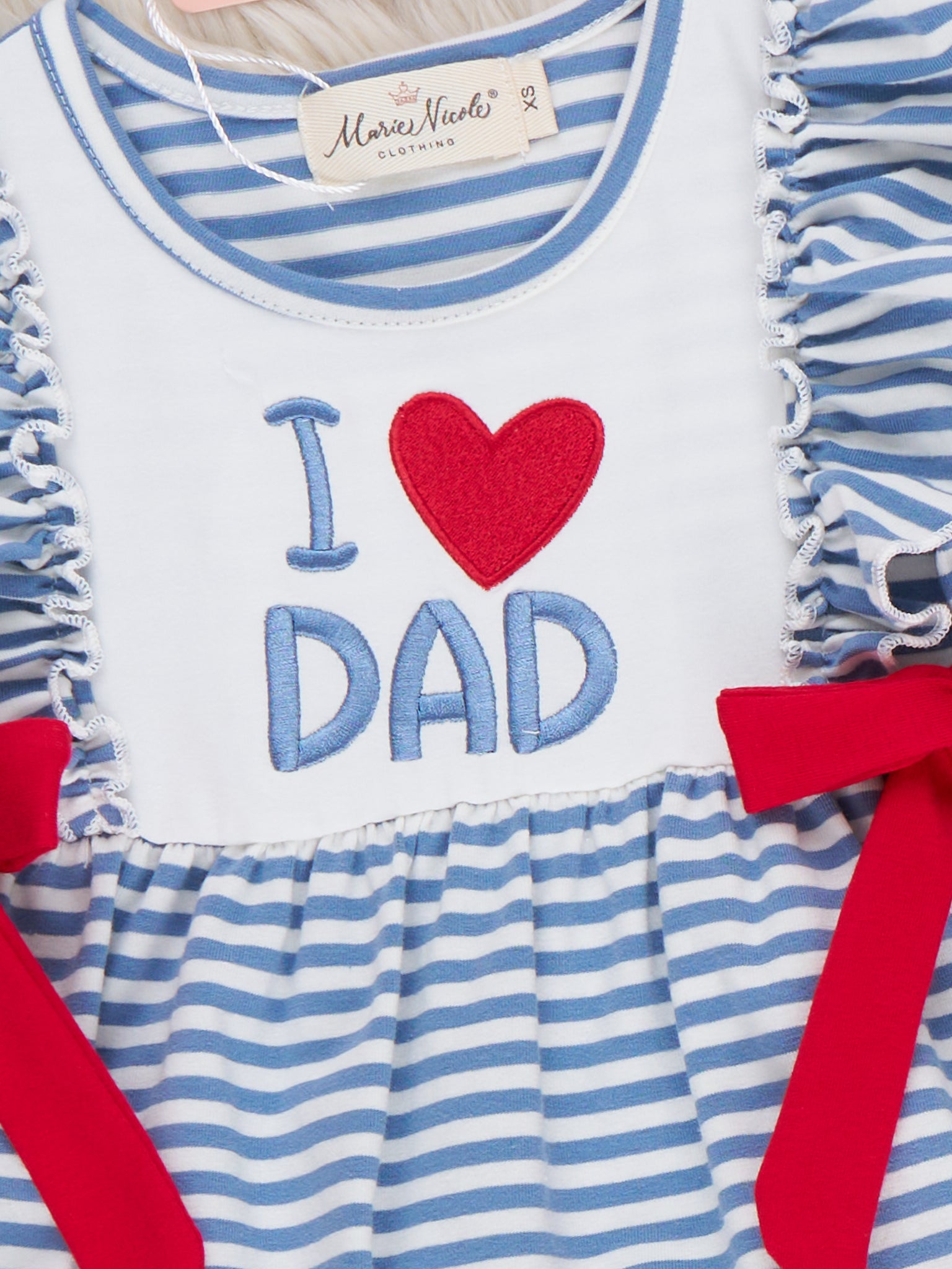 I Love DAD Stripe & Ruffle Embroidered Outfit