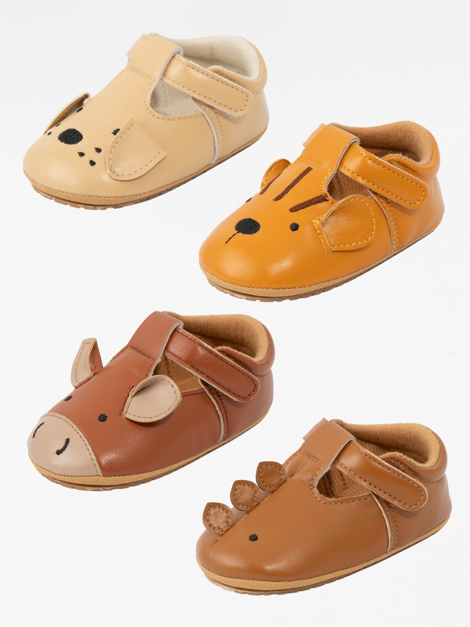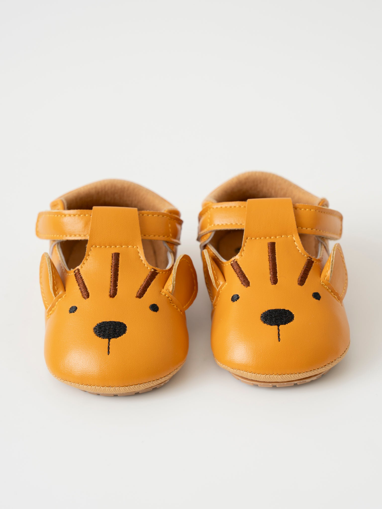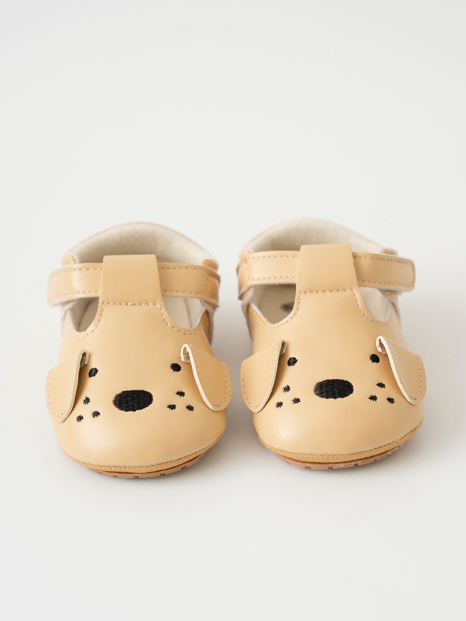 T-Strap Scalloped Buckle Shoes - Oatmeal
