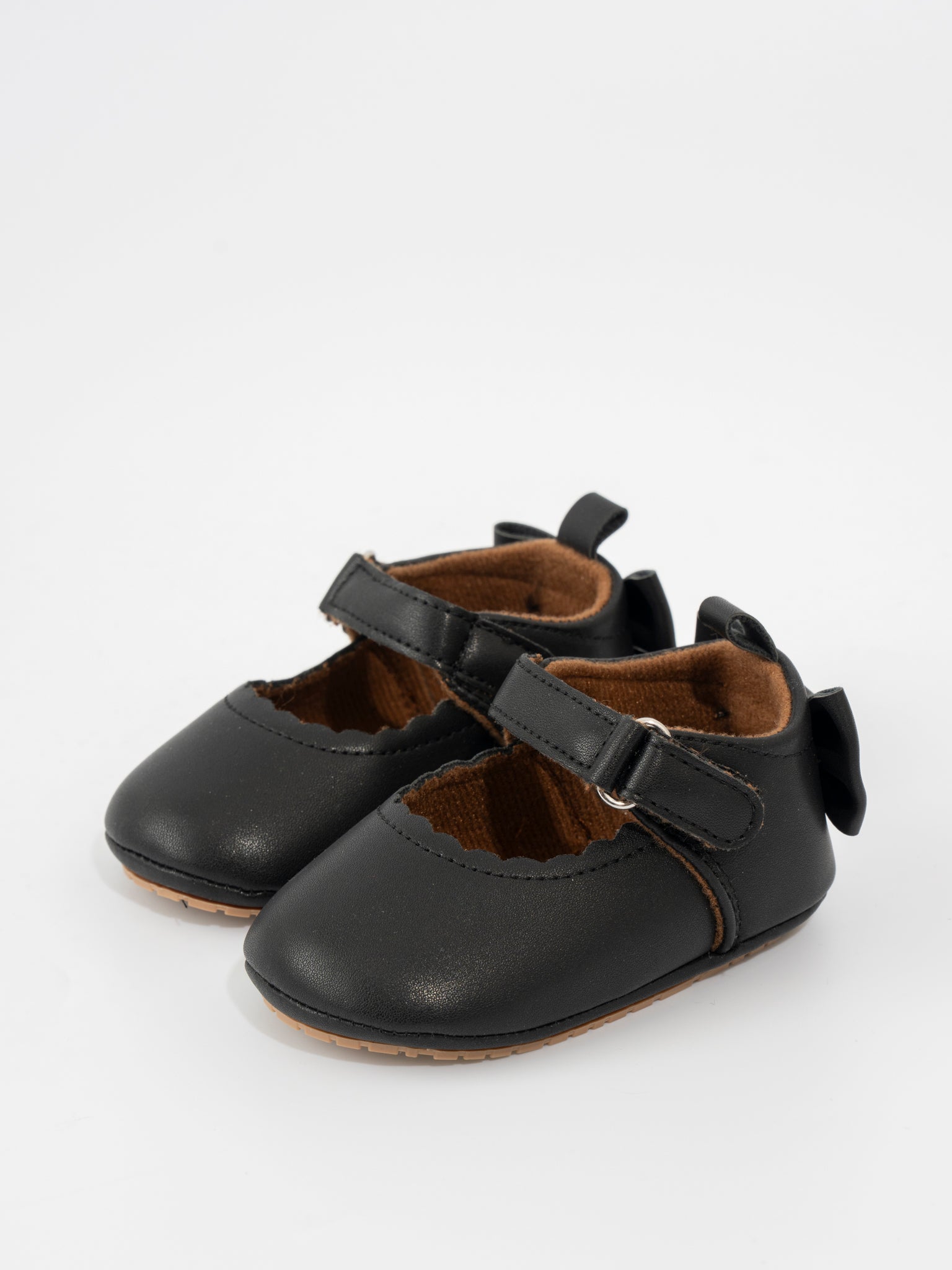 Scalloped Heel Bows Mary Jane Baby Shoes Black