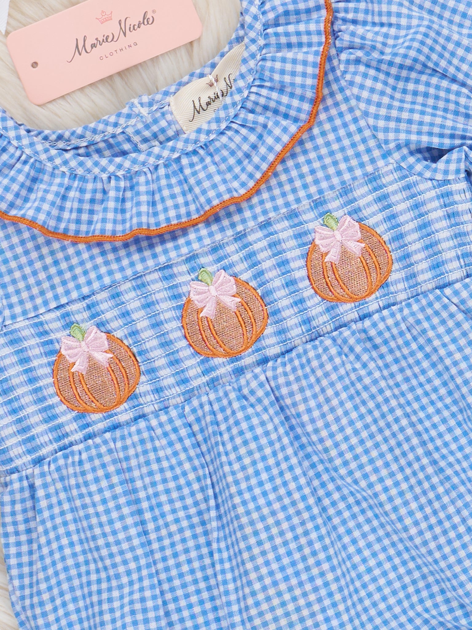 Pumpkin Posh Cutie Embroidered Smocked Bubble