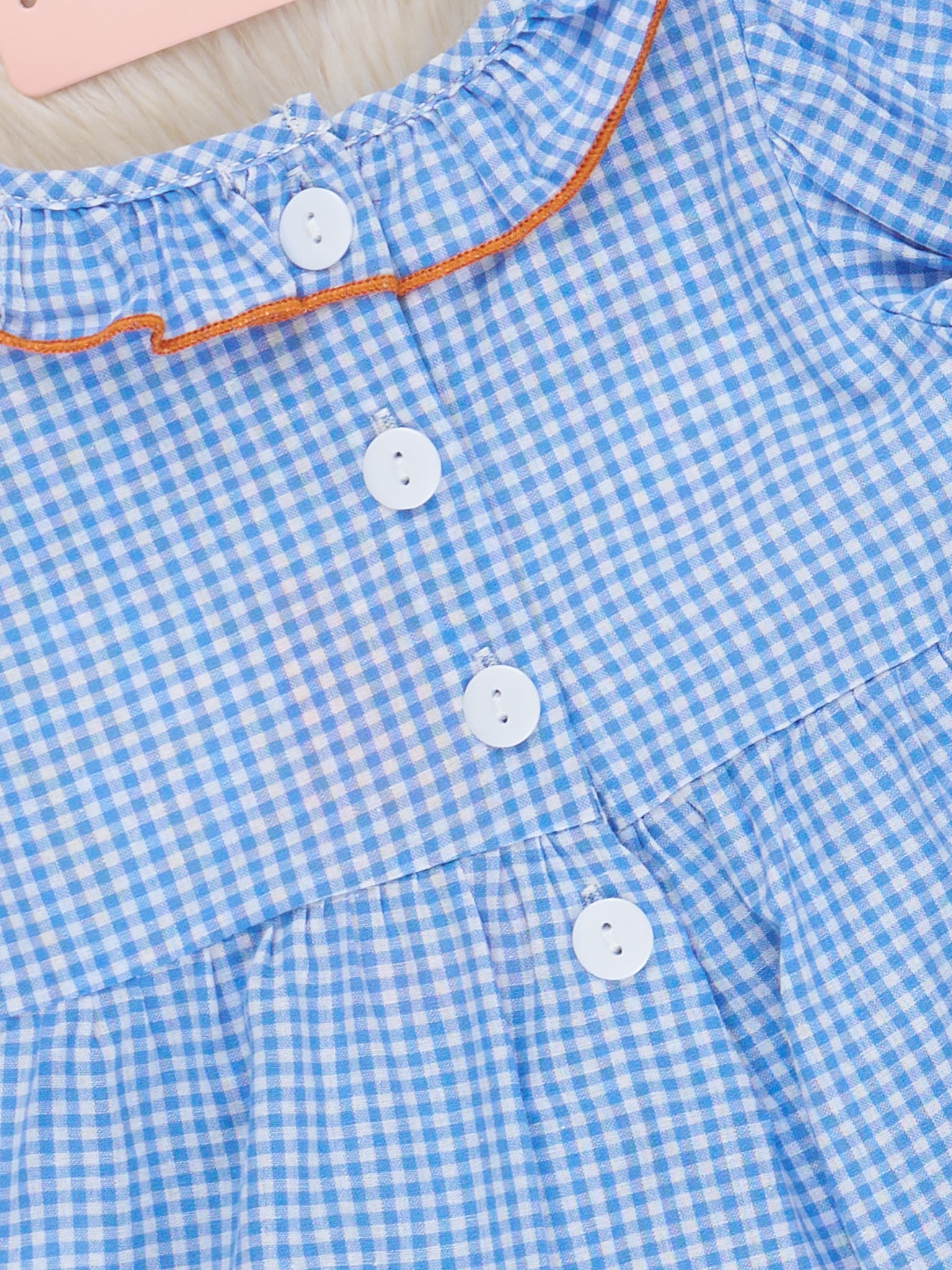 The Pumpkin Posh Cutie Embroidered Smocked Bubble is a lovely pick that brings the perfect fall farm feel. This one-piece from Marie Nicole Clothing features pumpkin embroidery, a smocked waist, and adorable puffy sleeves. The charming gingham fabric is light, thin, and breathable, perfect for capturing "cottagecore" vibes during autumn gatherings, seasonal photos, and pumpkin-picking.