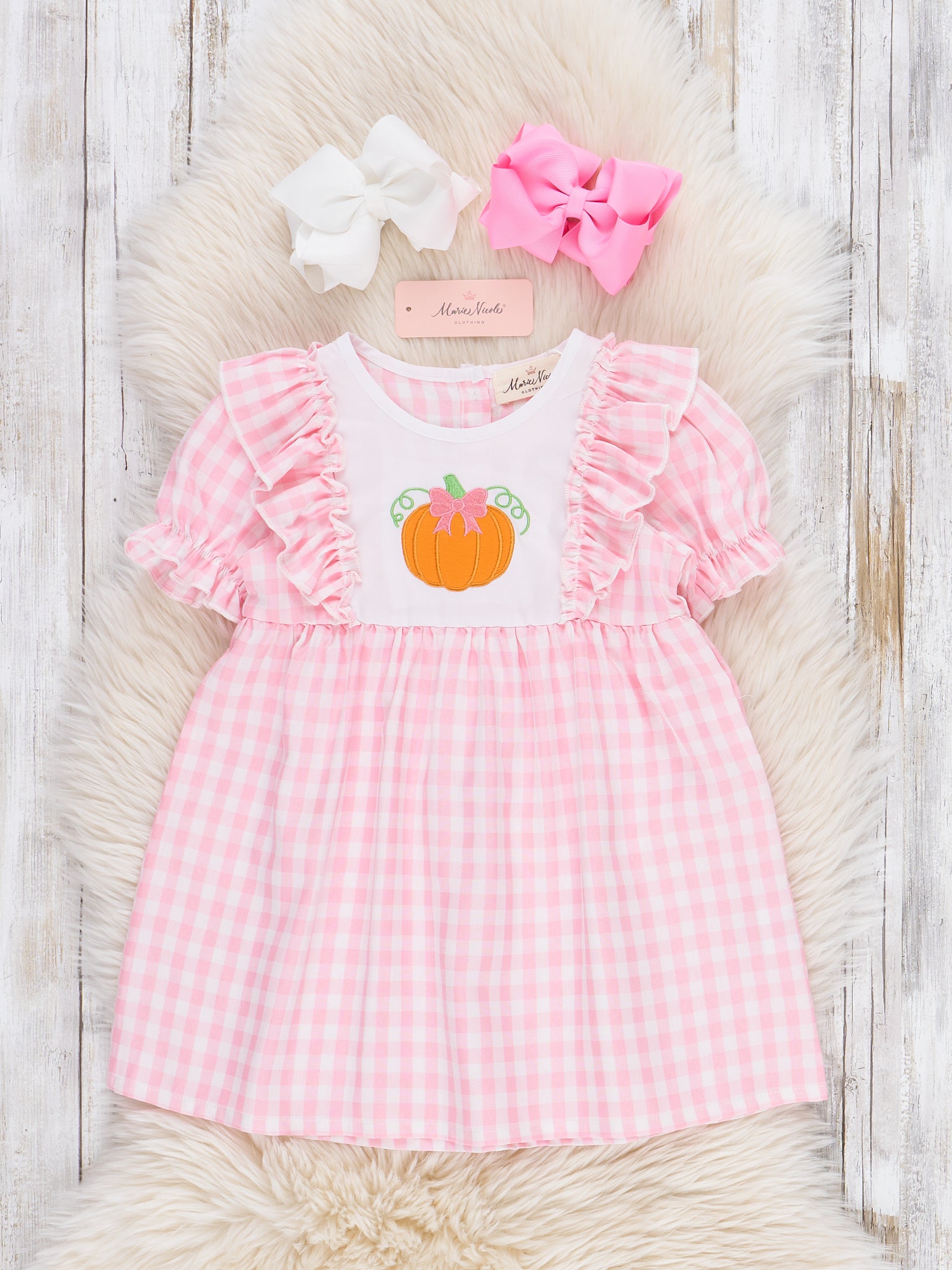 The Embroidered Gingham Pumpkin Picnic Dress is a delightful fall favorite, perfect for outdoor gatherings and seasonal celebrations. Featuring charming embroidered pumpkin set against a classic gingham print, this dress from Marie Nicole Clothing blends timeless style with cozy comfort. Made from soft, breathable fabric and finished with gentle ruffles, it’s ideal for pumpkin patch visits, family picnics, and picture-perfect autumn moments.