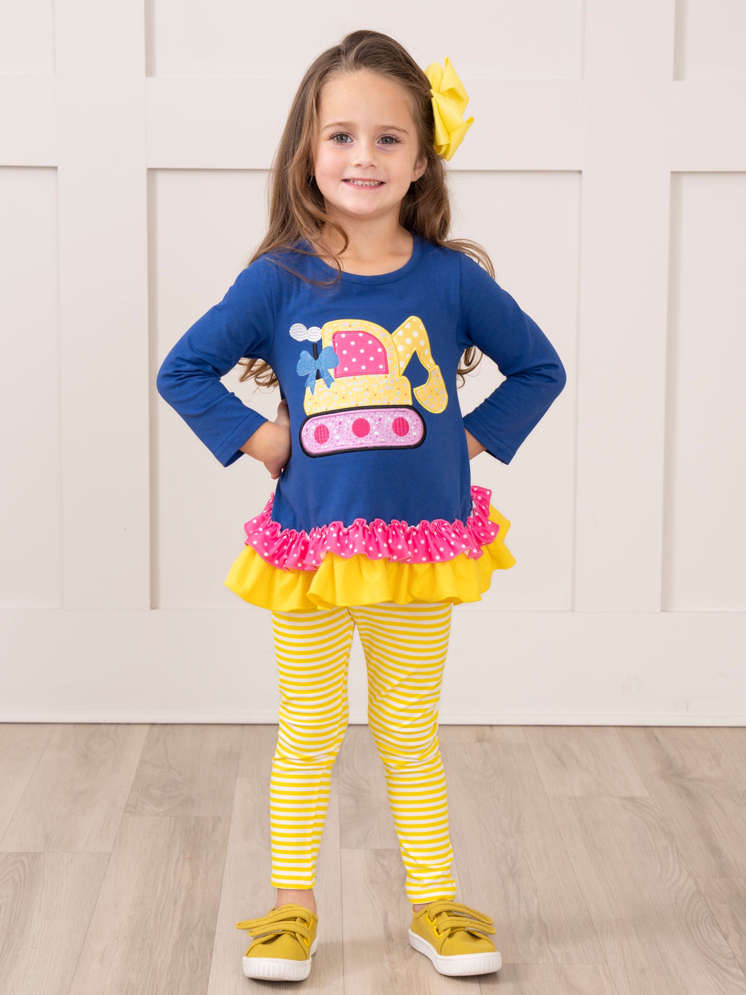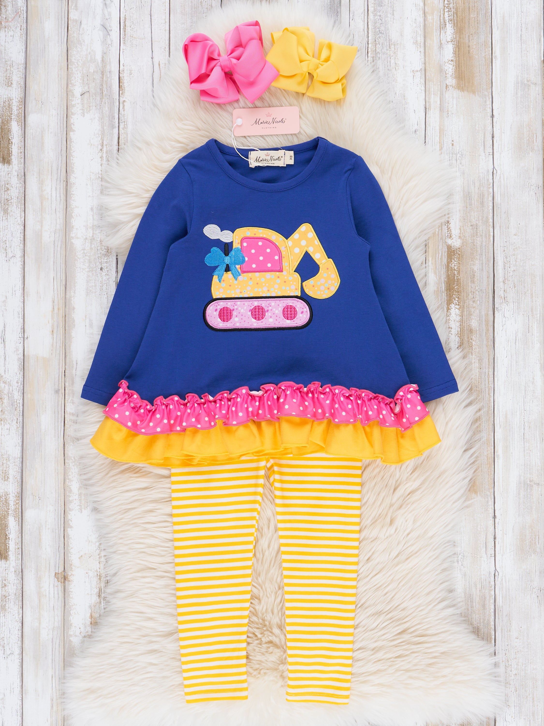 Royal Blue & Yellow Excavator Ruffle Outfit