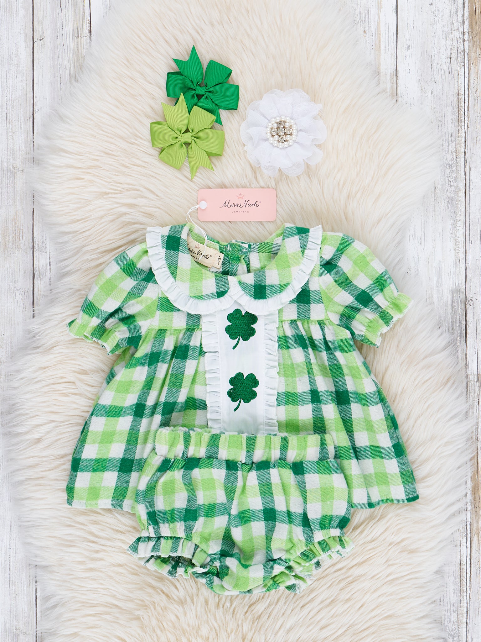 Green Plaid Embroidered Shamrocks Bloomers Outfit
