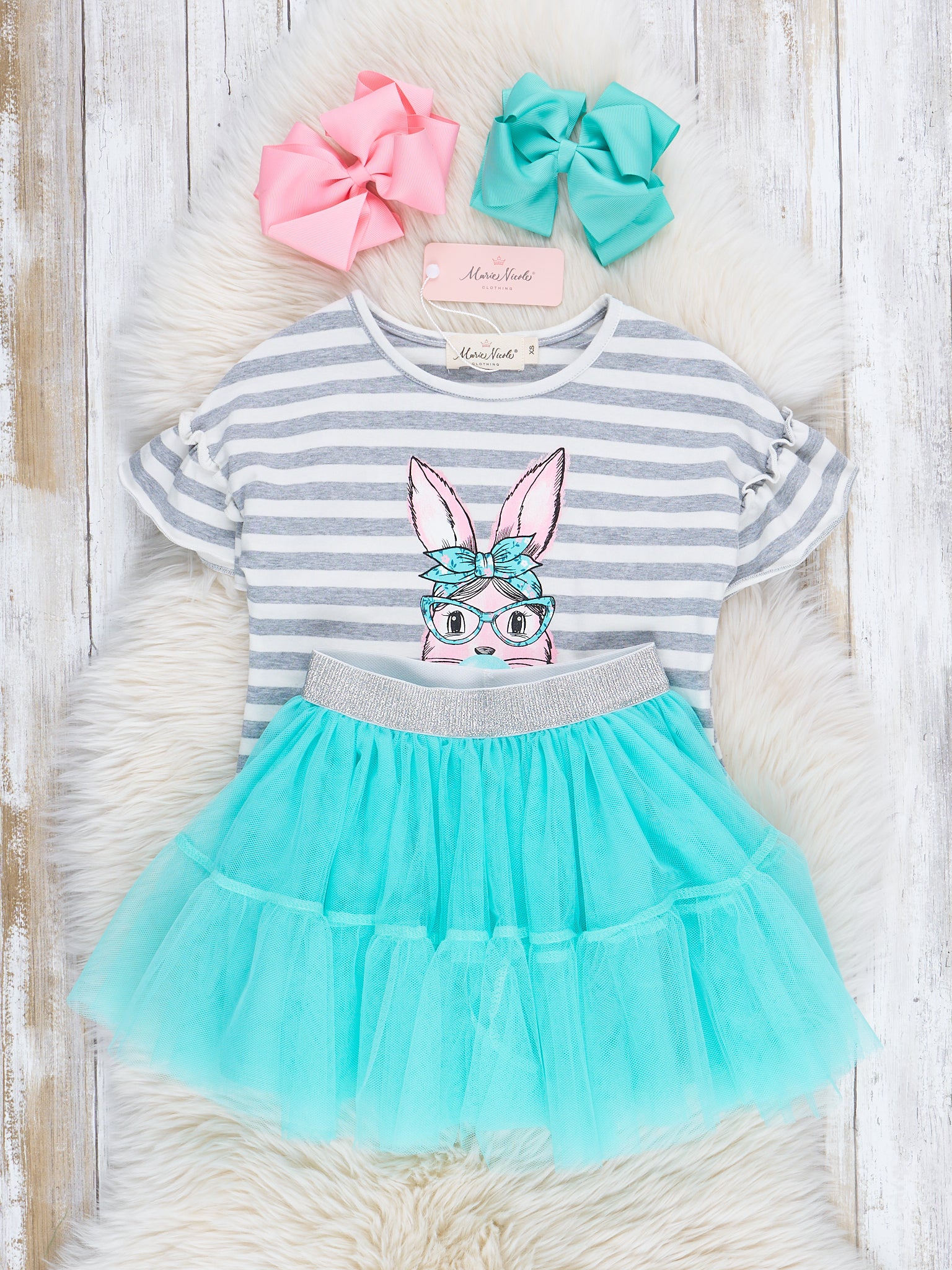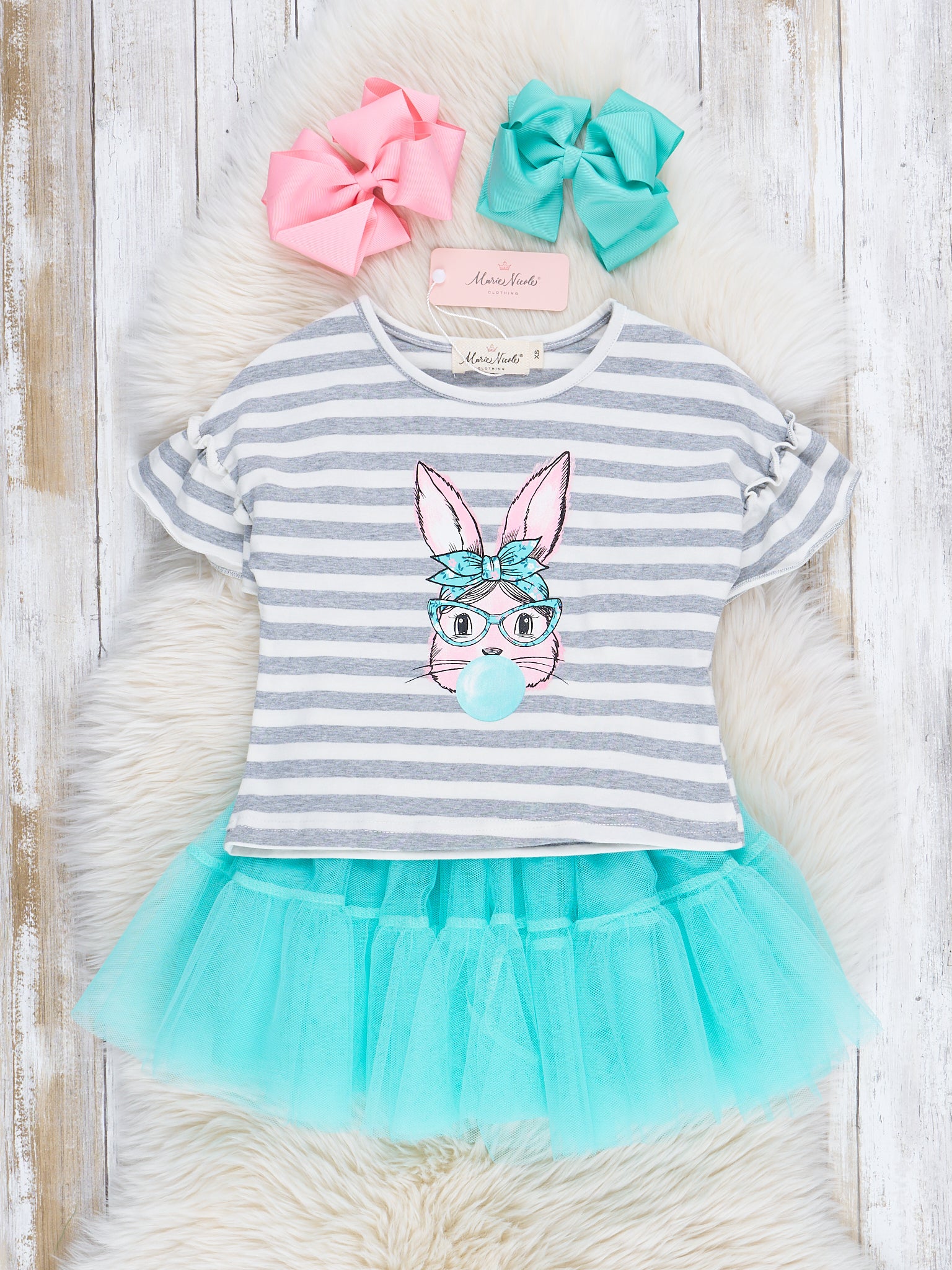 Grey Striped Bubblegum Bunny Tulle Outfit w/ Skirt