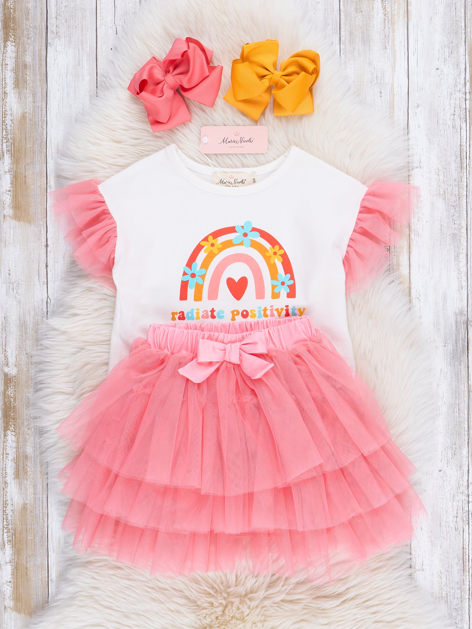Coral Rainbow Positivity Outfit w/ Tulle Skirt