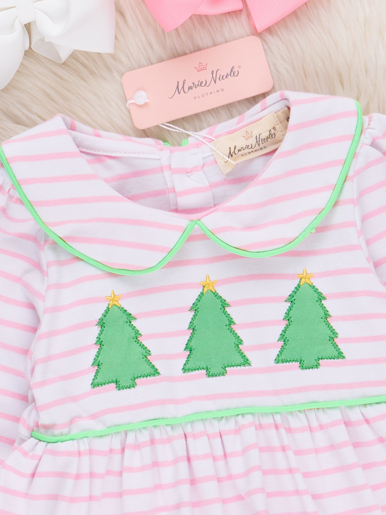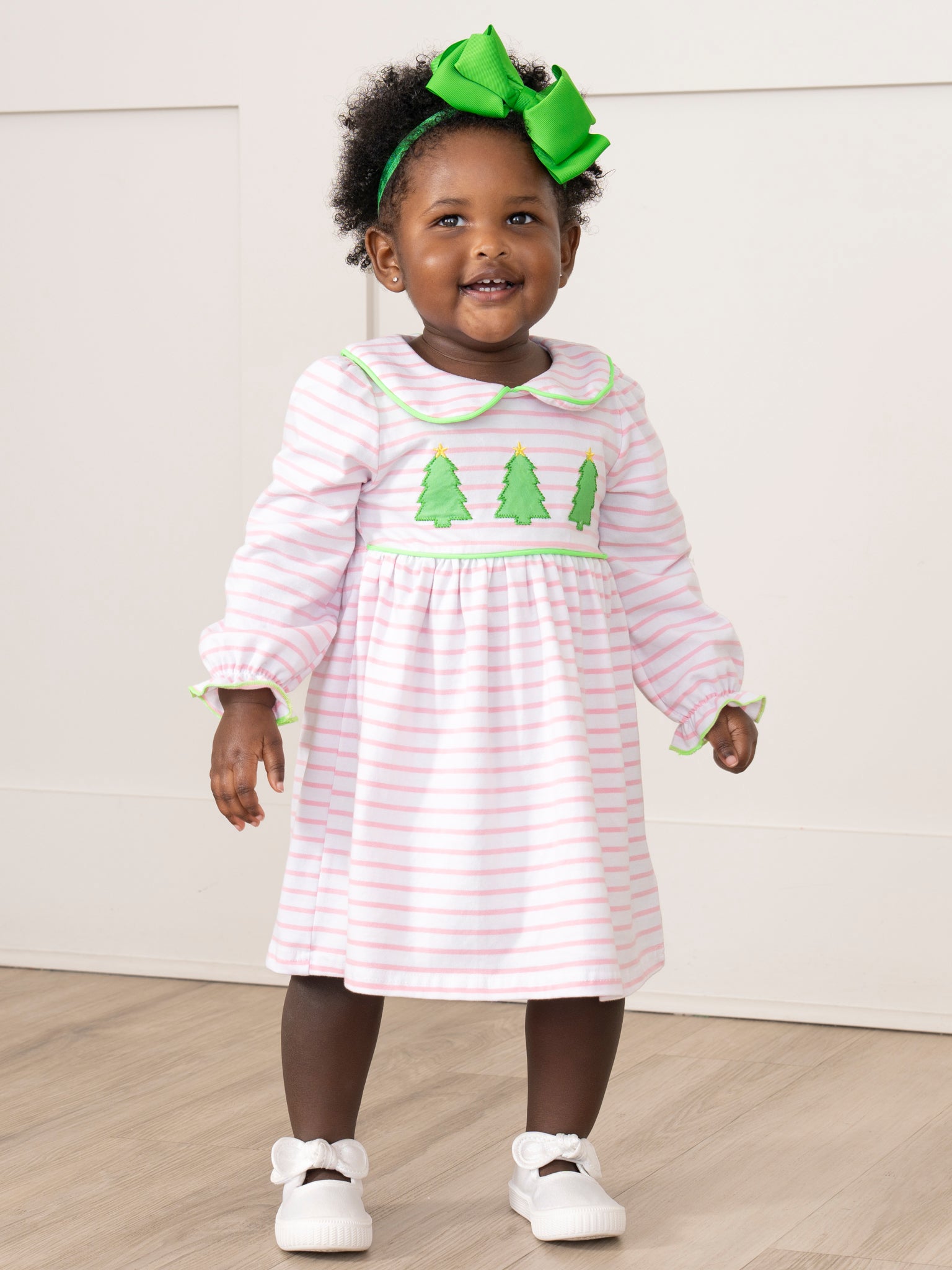 Lime & Pink Embroidered Christmas Trees Dress