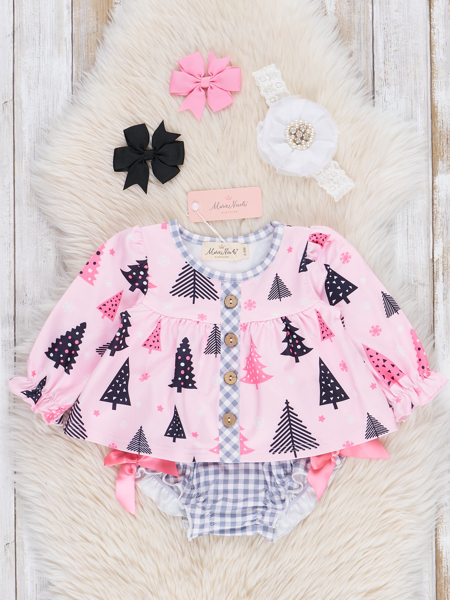 Pink Forest Gingham Ruffle Bloomers Outfit