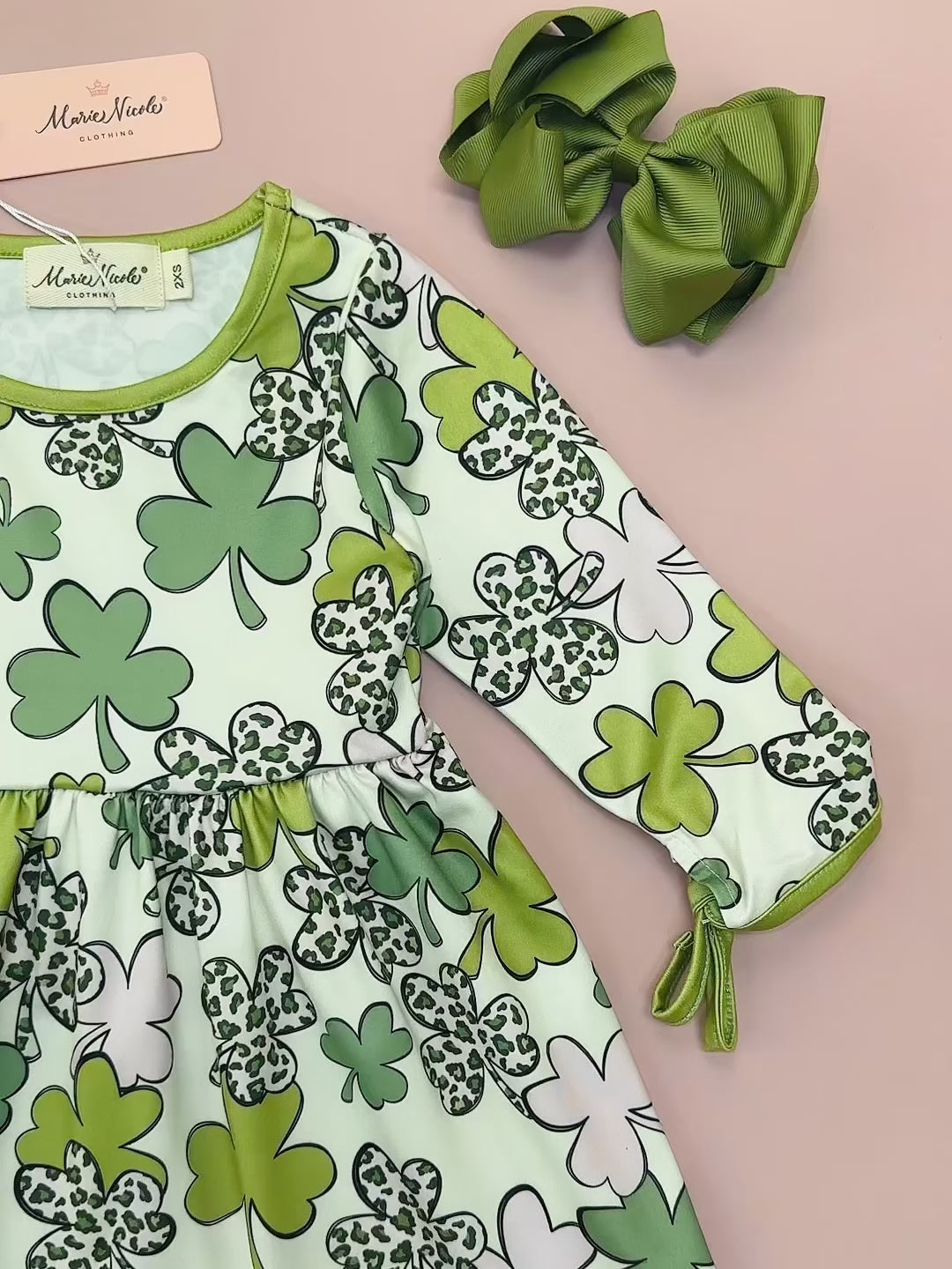 Be the luckiest little lady in the room with this unique St. Patrick's Day Sister Set featuring Lucky Pink & Green Clovers Dress. Whether playing dress-up or celebrating the holiday, your little ones will be the hit of the party! 🍀