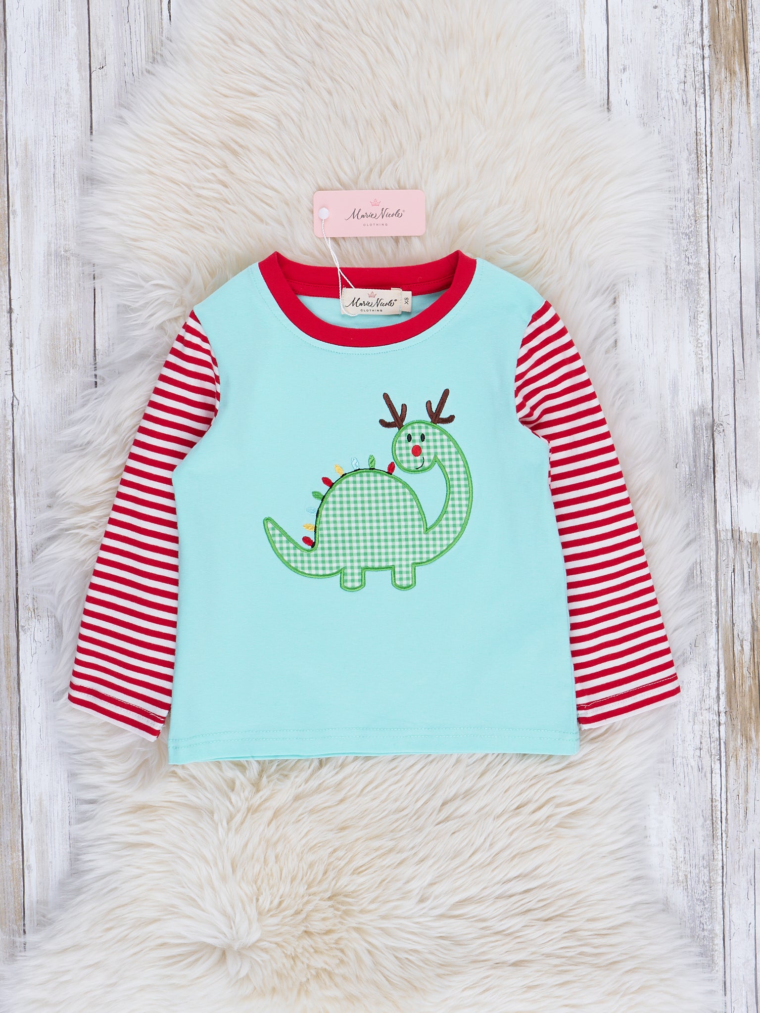 Ice Blue Embroidered Gingham Dino Raglan Shirt