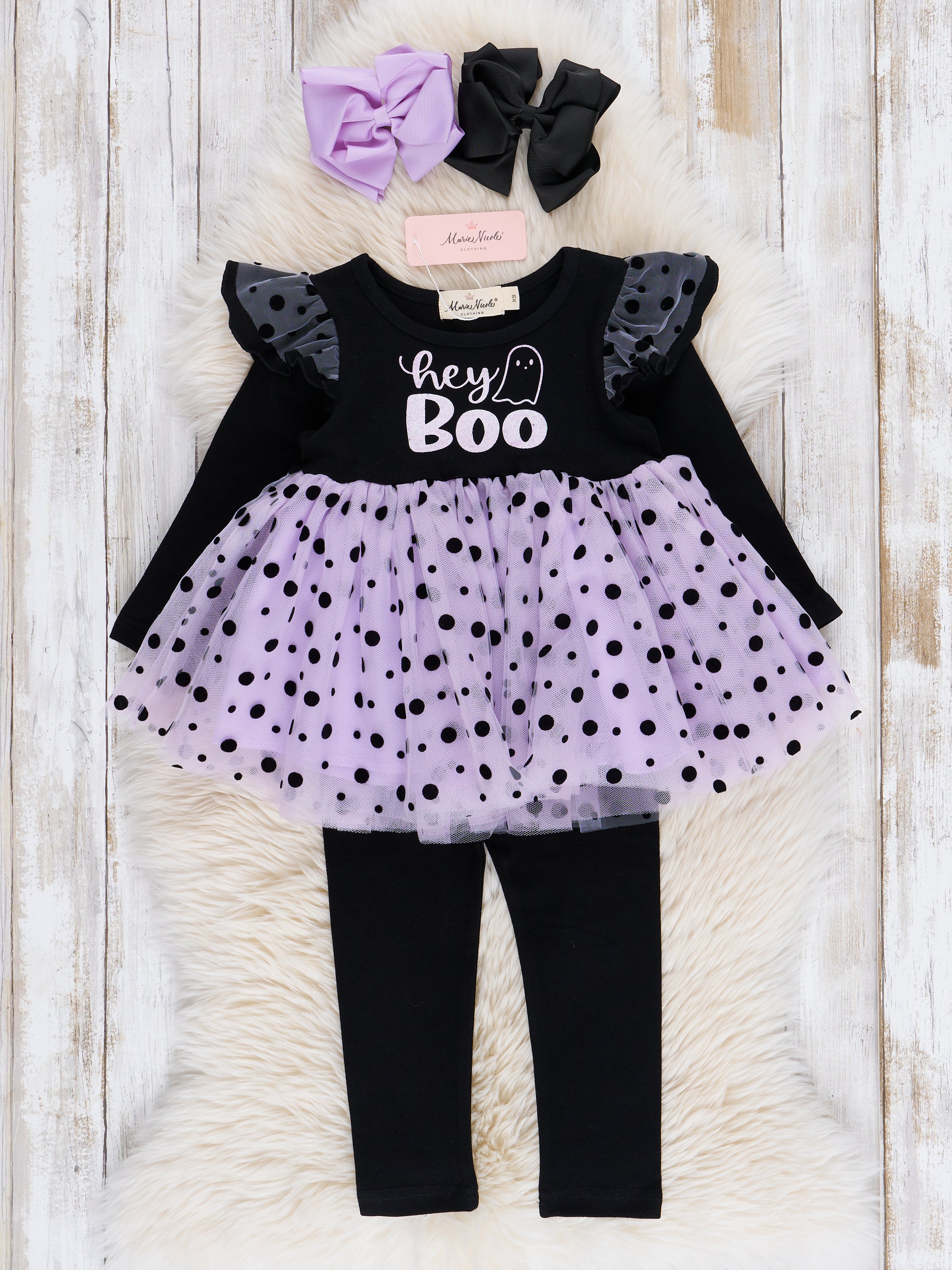 Home › Lavender "Hey Boo" Tulle Sister Set