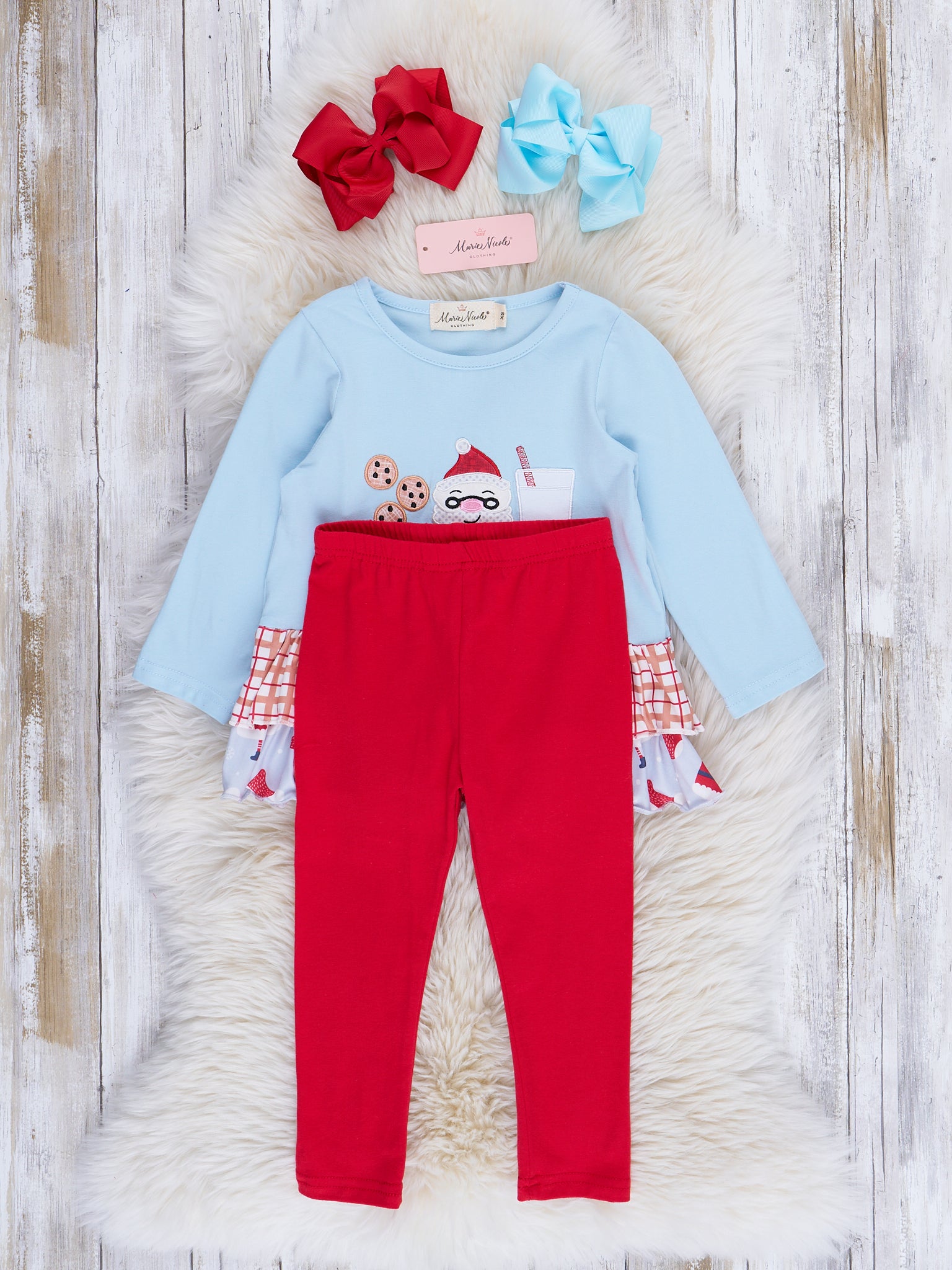 Light Blue & Red Santa Snacks Ruffle Outfit