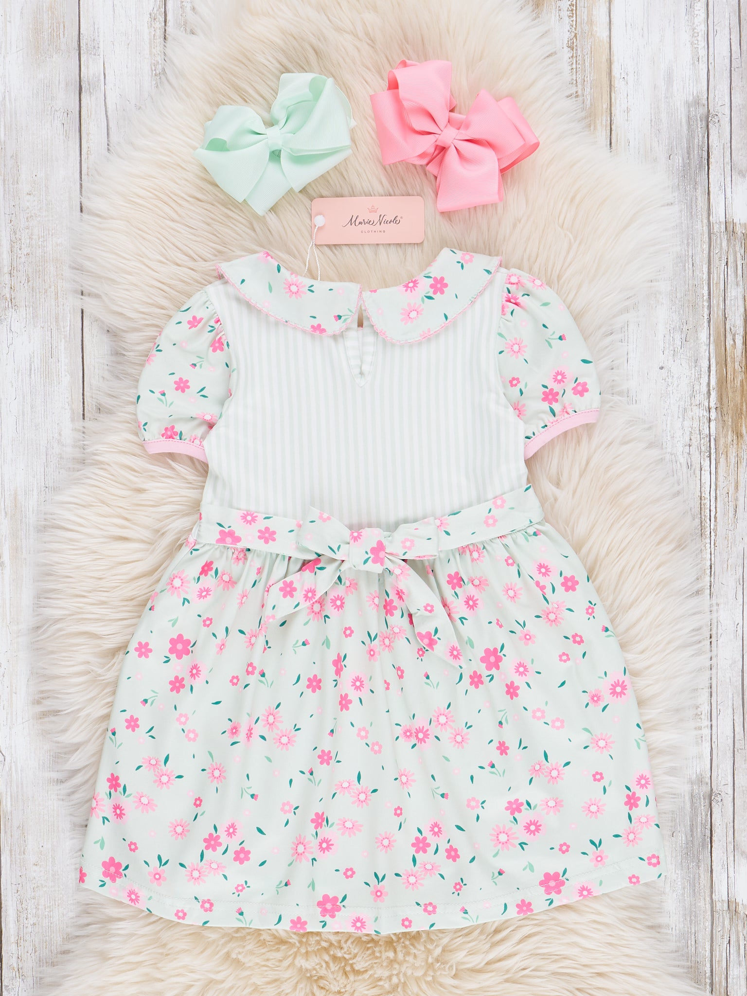 Minty Florals Ruffle Tie Dress