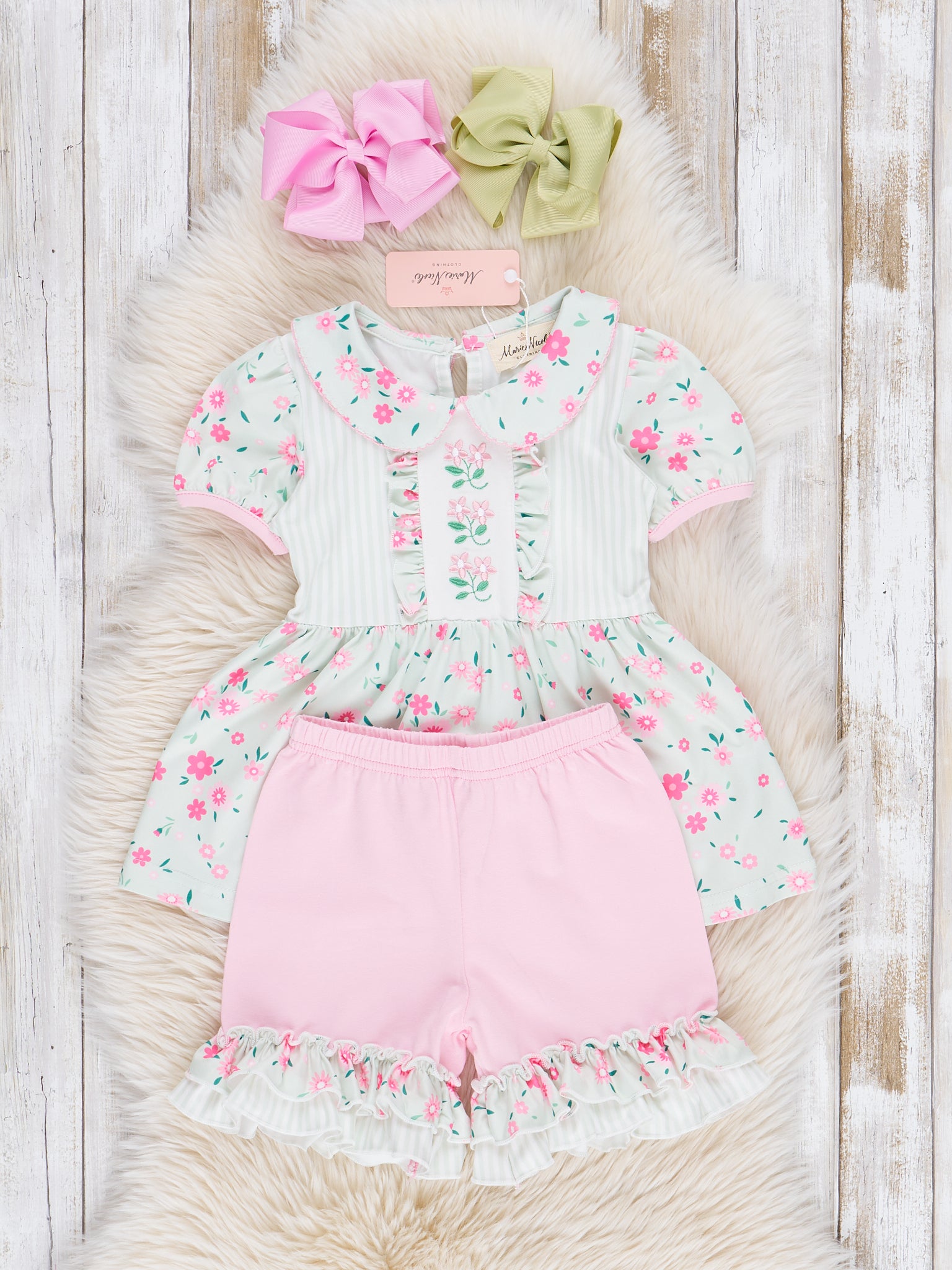 Minty Florals Ruffle Outfit