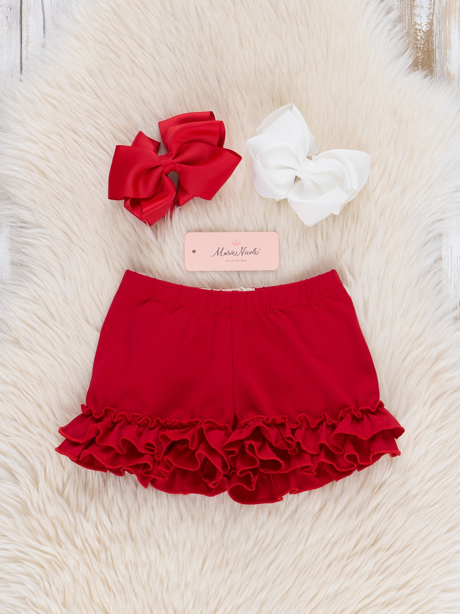 Ruffle Hem Cotton Shorts - Pink Polka Dots