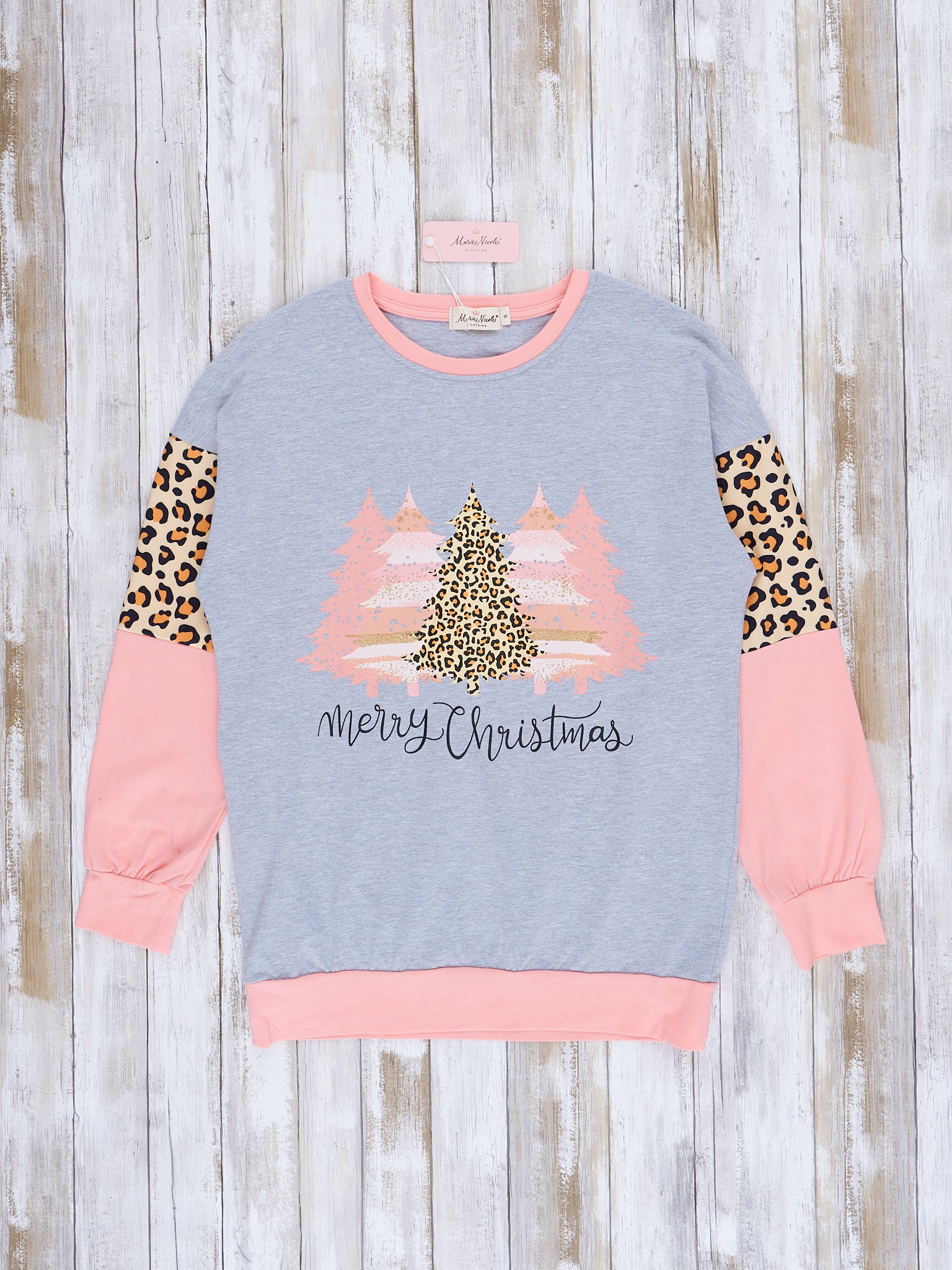 Mom & Me Coral & Leopard Christmas Crew Neck