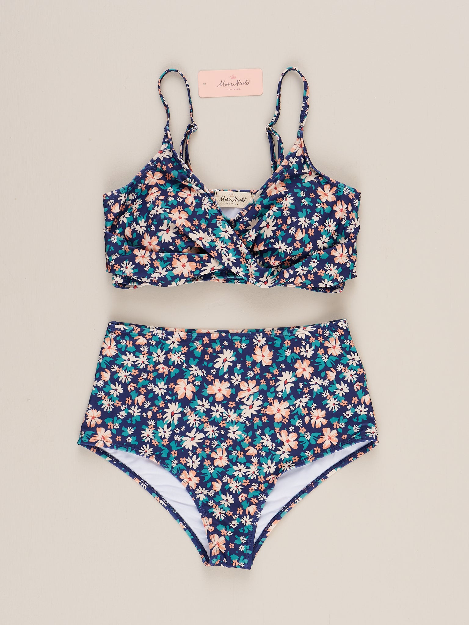 Make a splash with our Ditsy Wildflowers Ruffle Swimsuit! Perfect for mother-daughter twinning, this two-piece set from Marie Nicole Clothing features a navy ditsy floral print with a fun and flirty green floral ruffle. Whether she's splashing in the pool or enjoying a day at the beach, this swimsuit is sure to be a summer favorite!