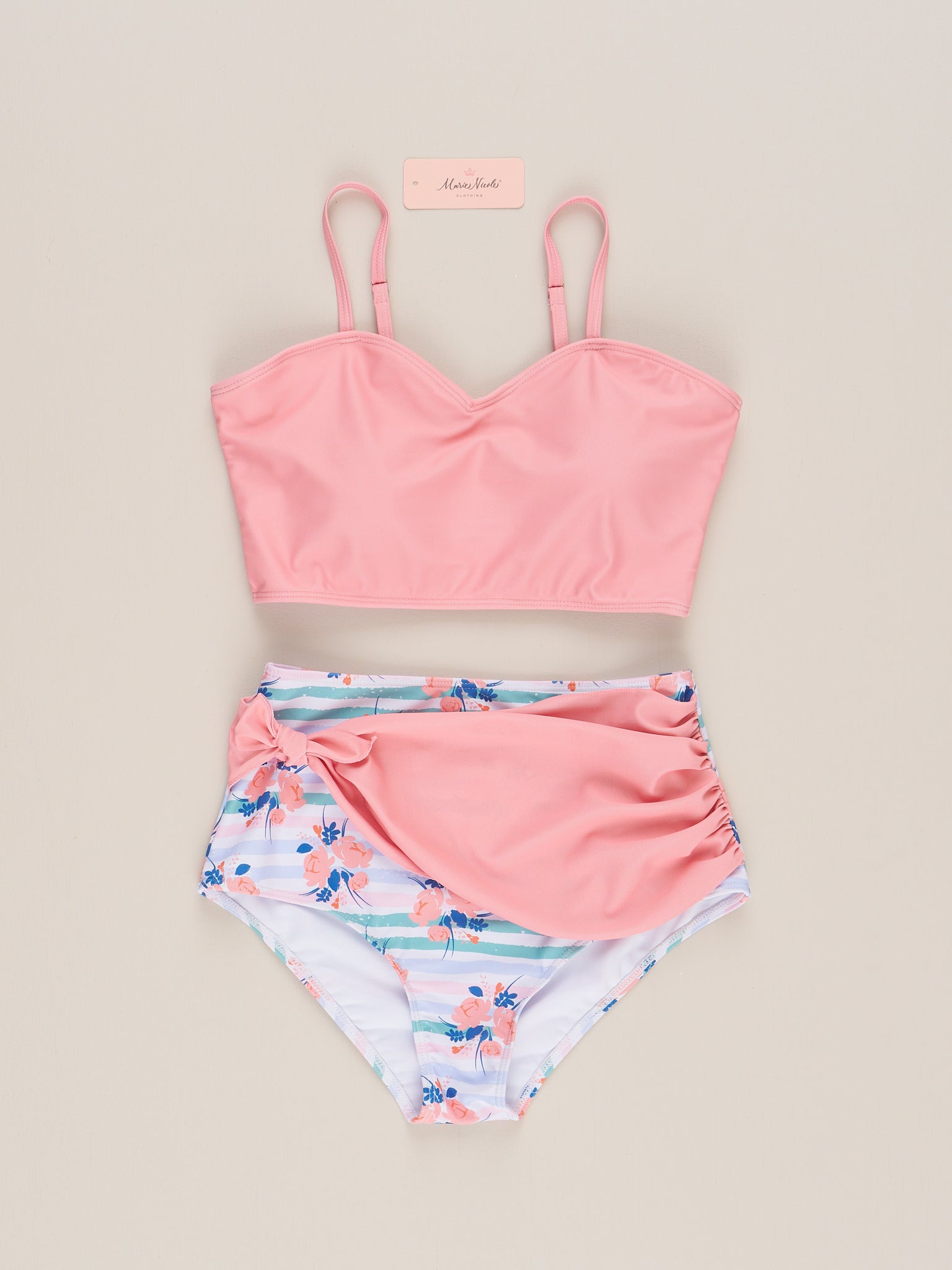 Mom & Me Tropical Bouquets Striped Swimsuit
