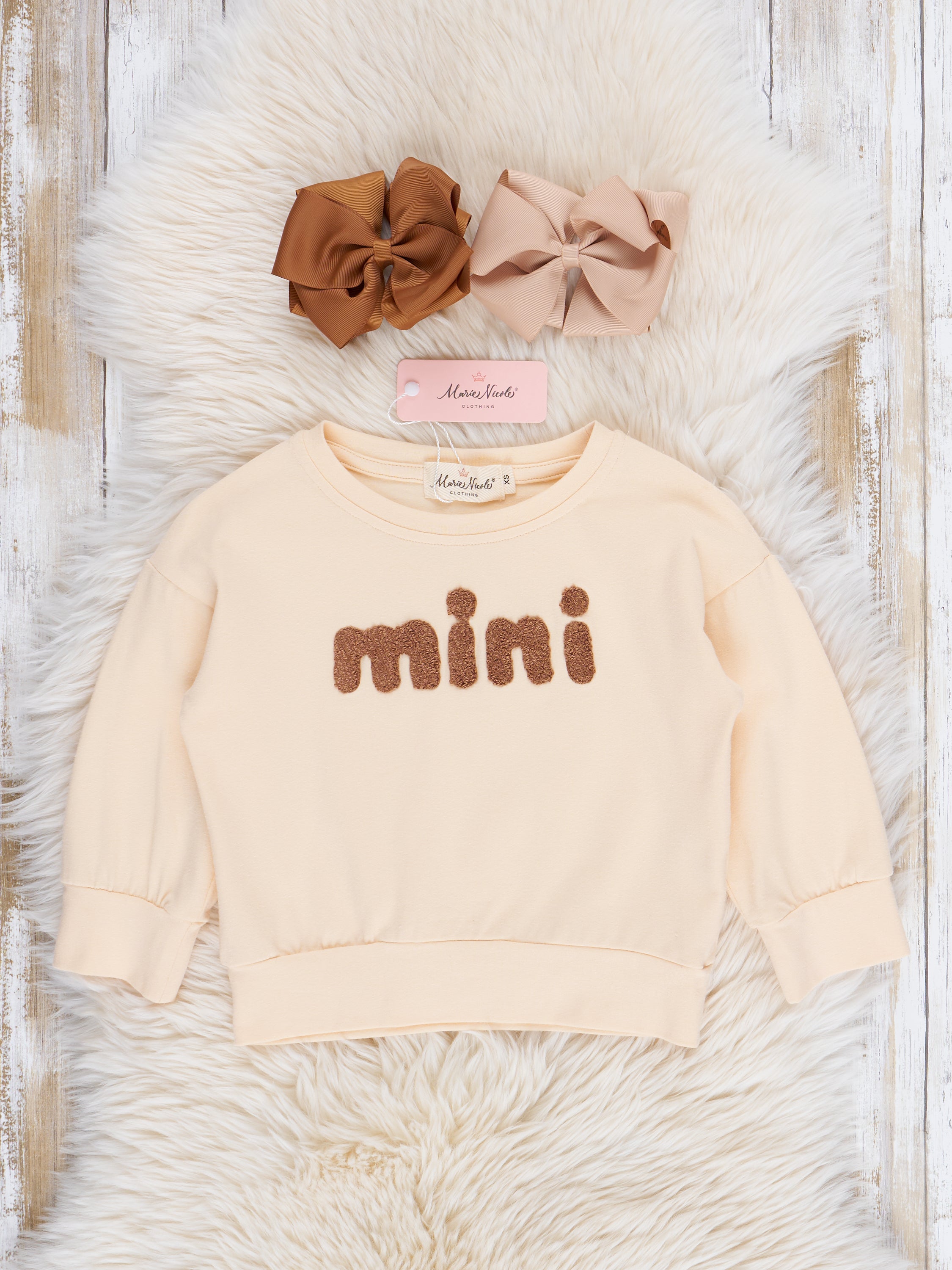 Elevate your little one's style with our Tan & Brown "Mini" Shirt! Made for girls, this long sleeve shirt features a trendy tan color and a cute chenille "mini" design. Perfect for casual wear, your child will love showing off their stylish side in this playful top.