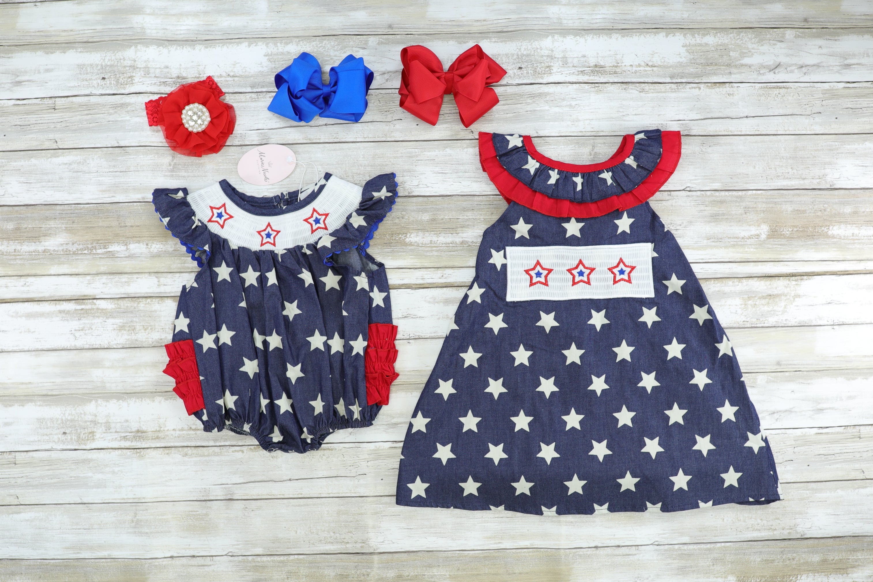 Navy Smocked Star sister set