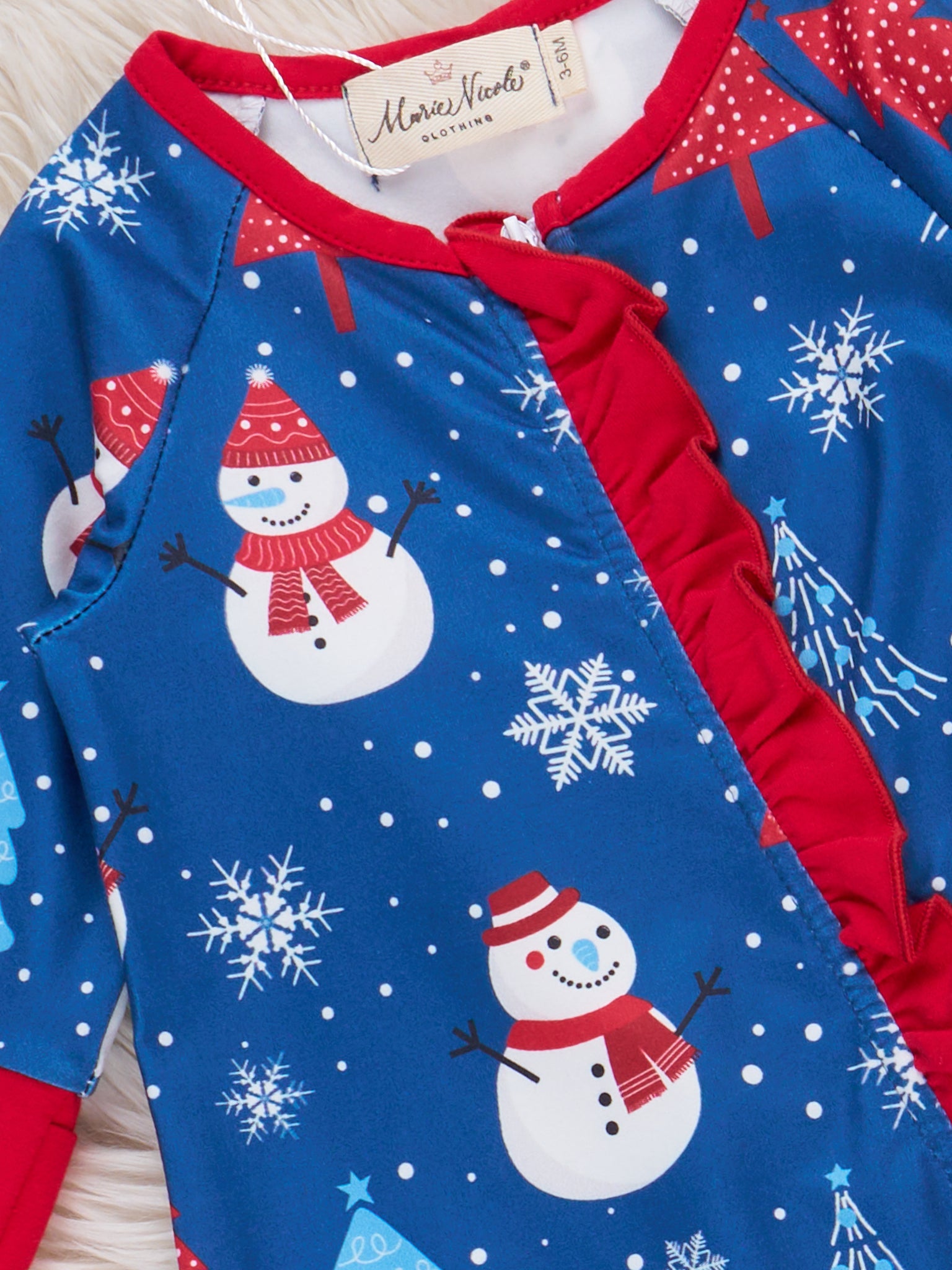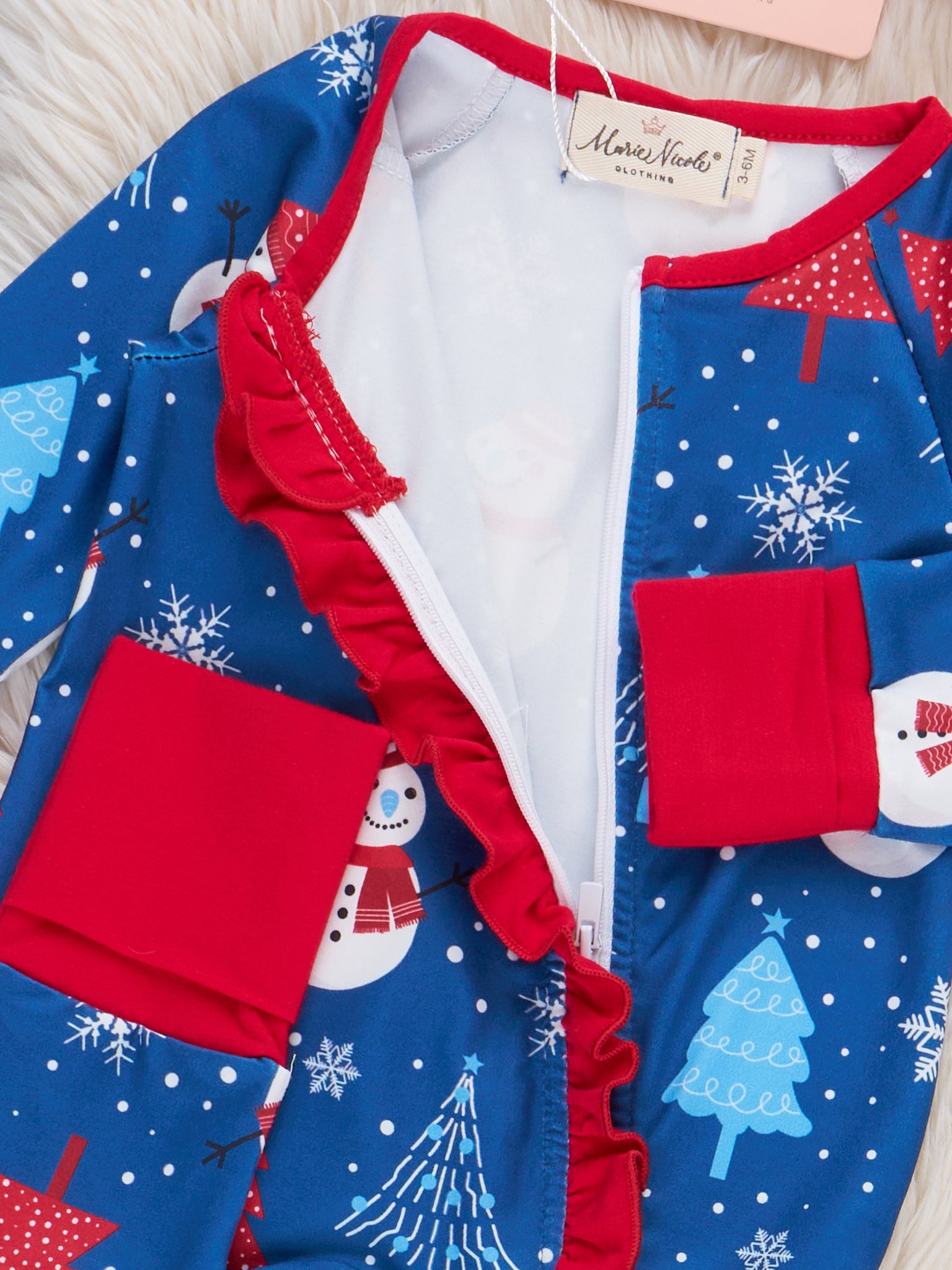 Reindeer Night Christmas Embroidered Ruffle Romper