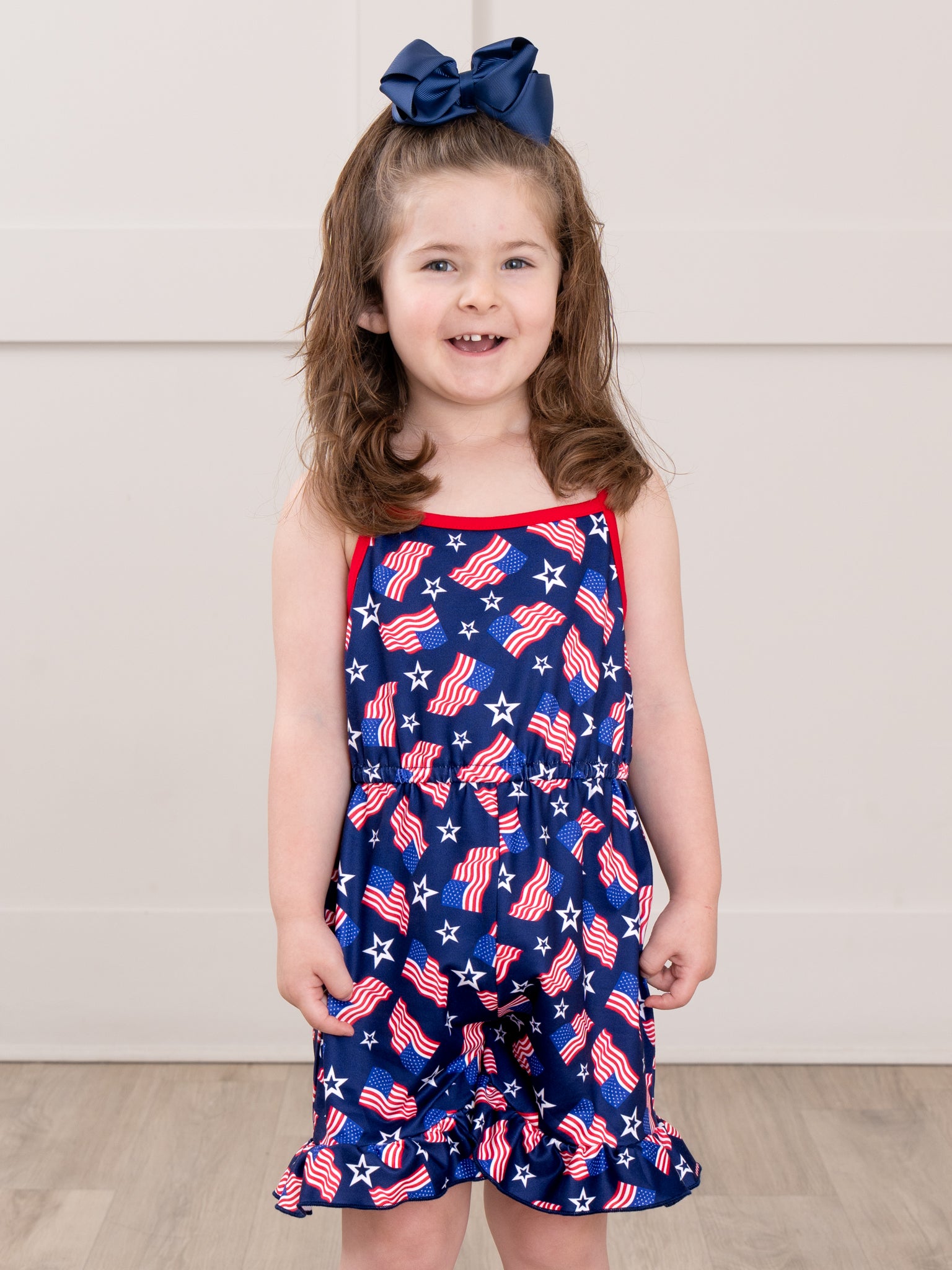 Flag Parade Plaid Flutter Smocked Bubble Romper