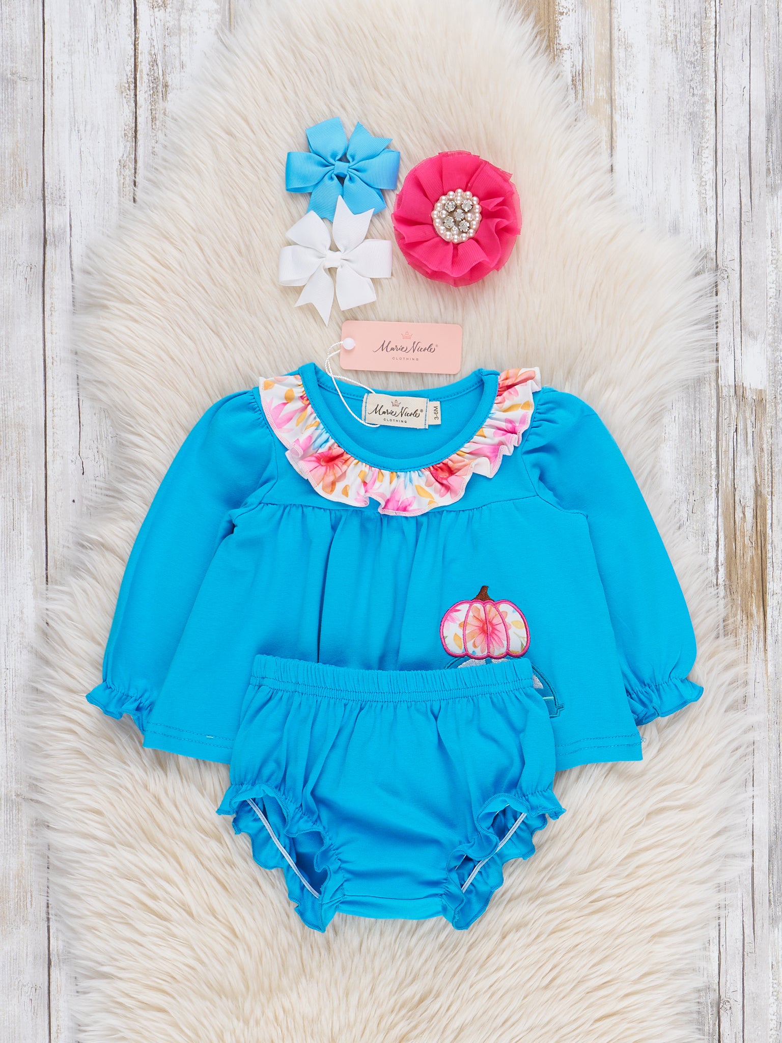 The Floral Patch Road Trip Embroidered Bloomers Outfit is a sweet and playful choice for sunny days and seasonal adventures. Featuring delicate floral details and a charming pumpkin perched atop a classic car embroidery, this outfit from Marie Nicole Clothing blends garden-inspired whimsy with autumn fun. Made from soft, breathable fabric and finished with ruffle bloomers, it’s perfect for family outings, playdates, and picture-perfect moments.