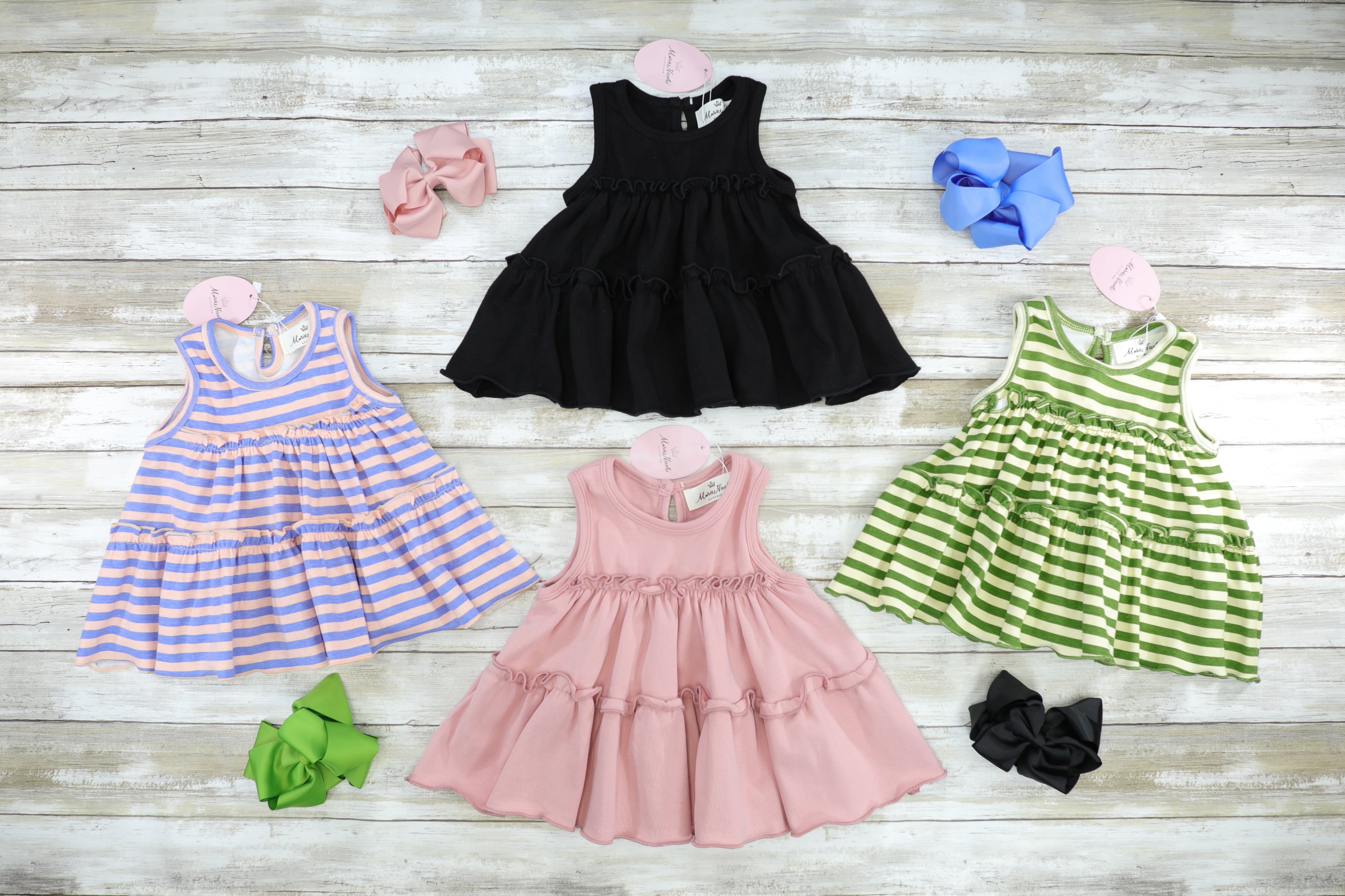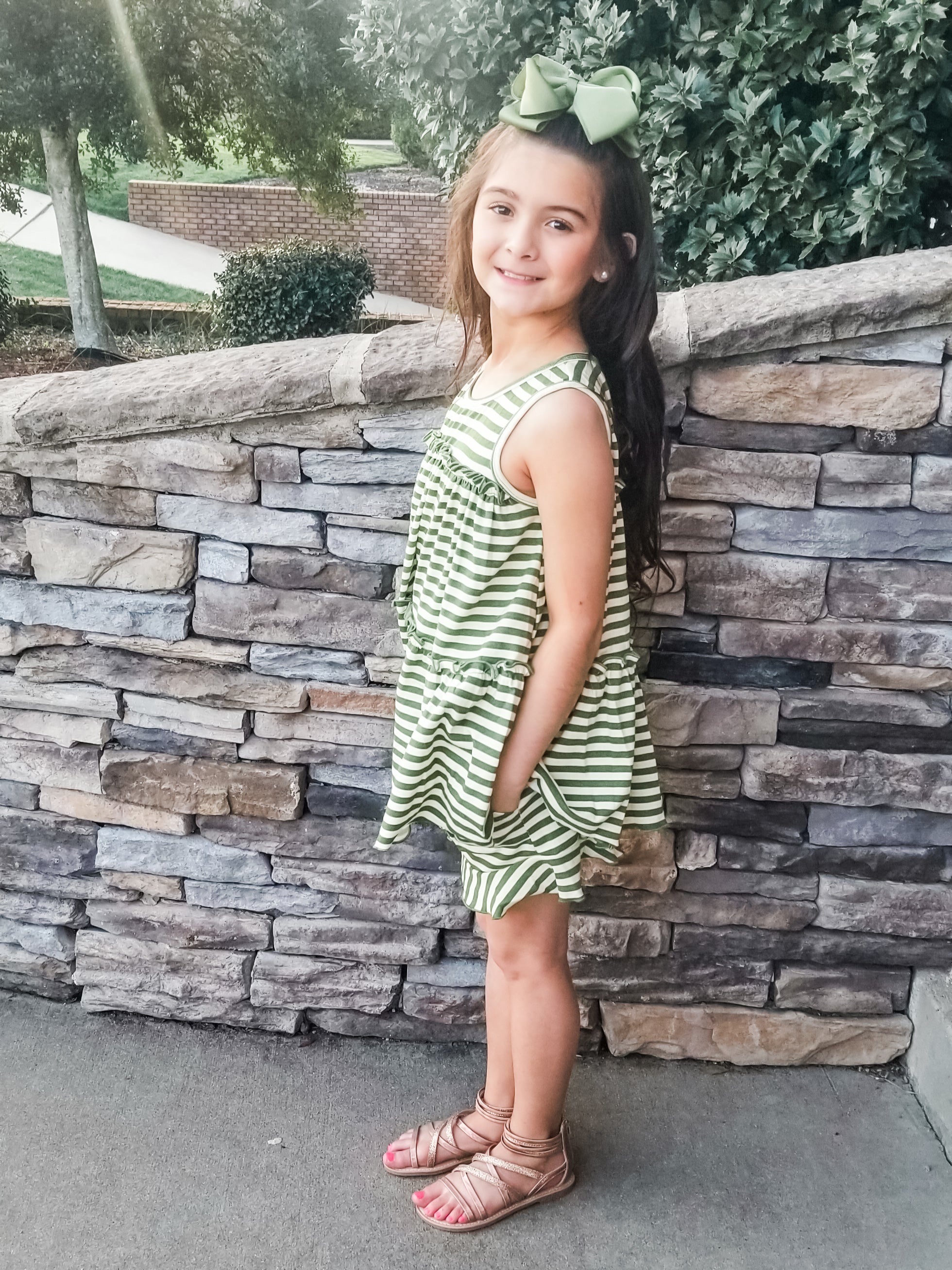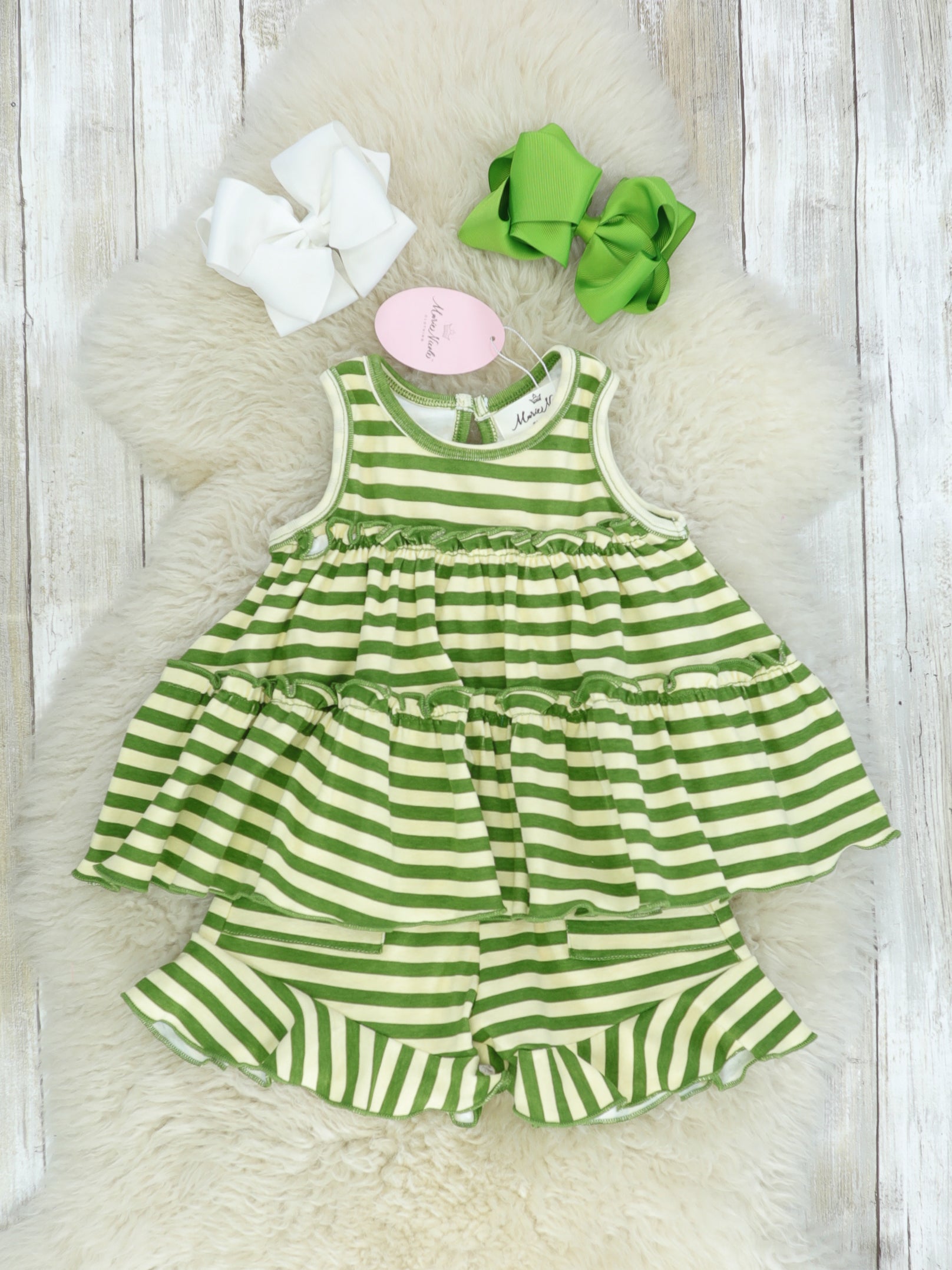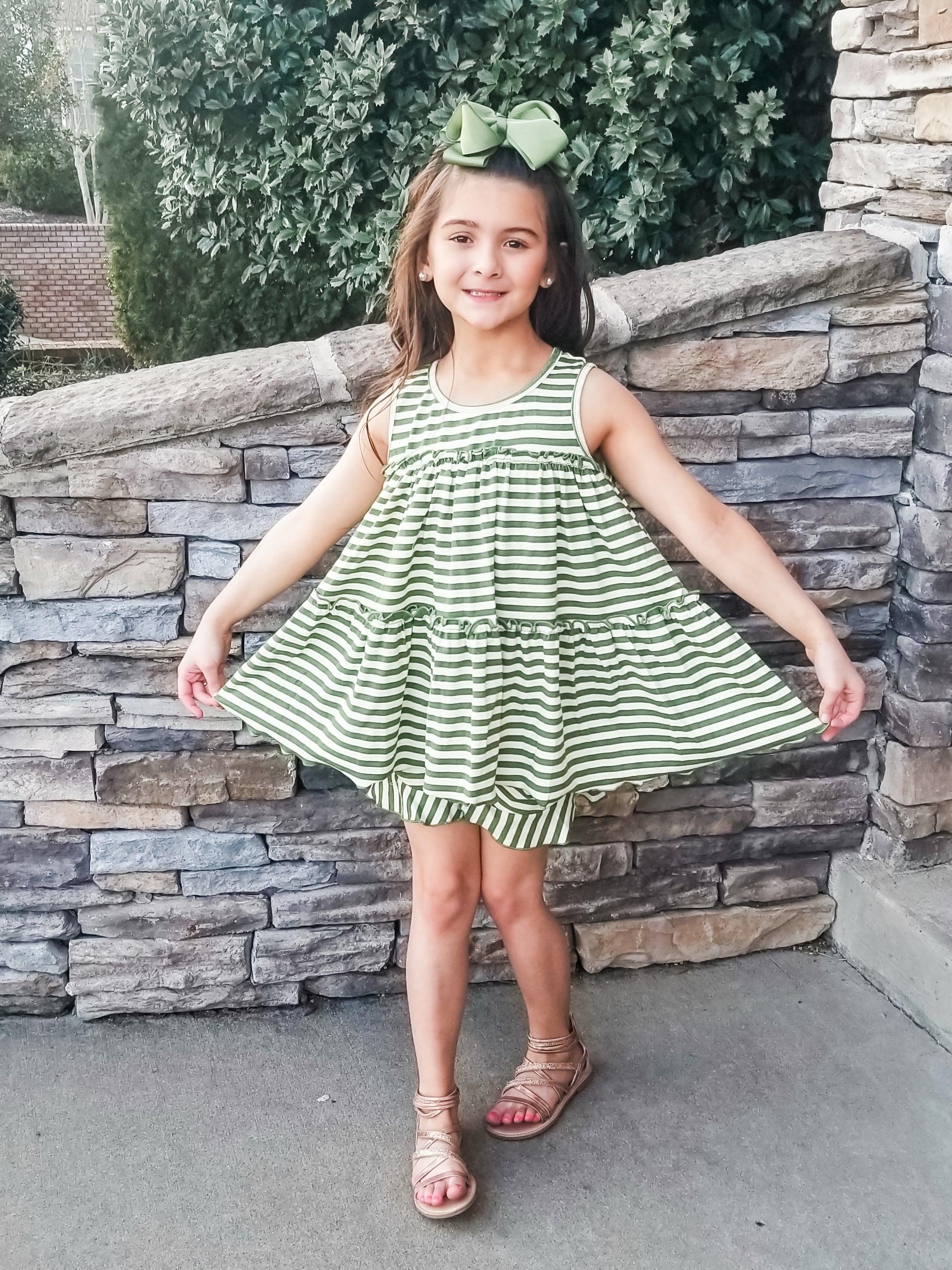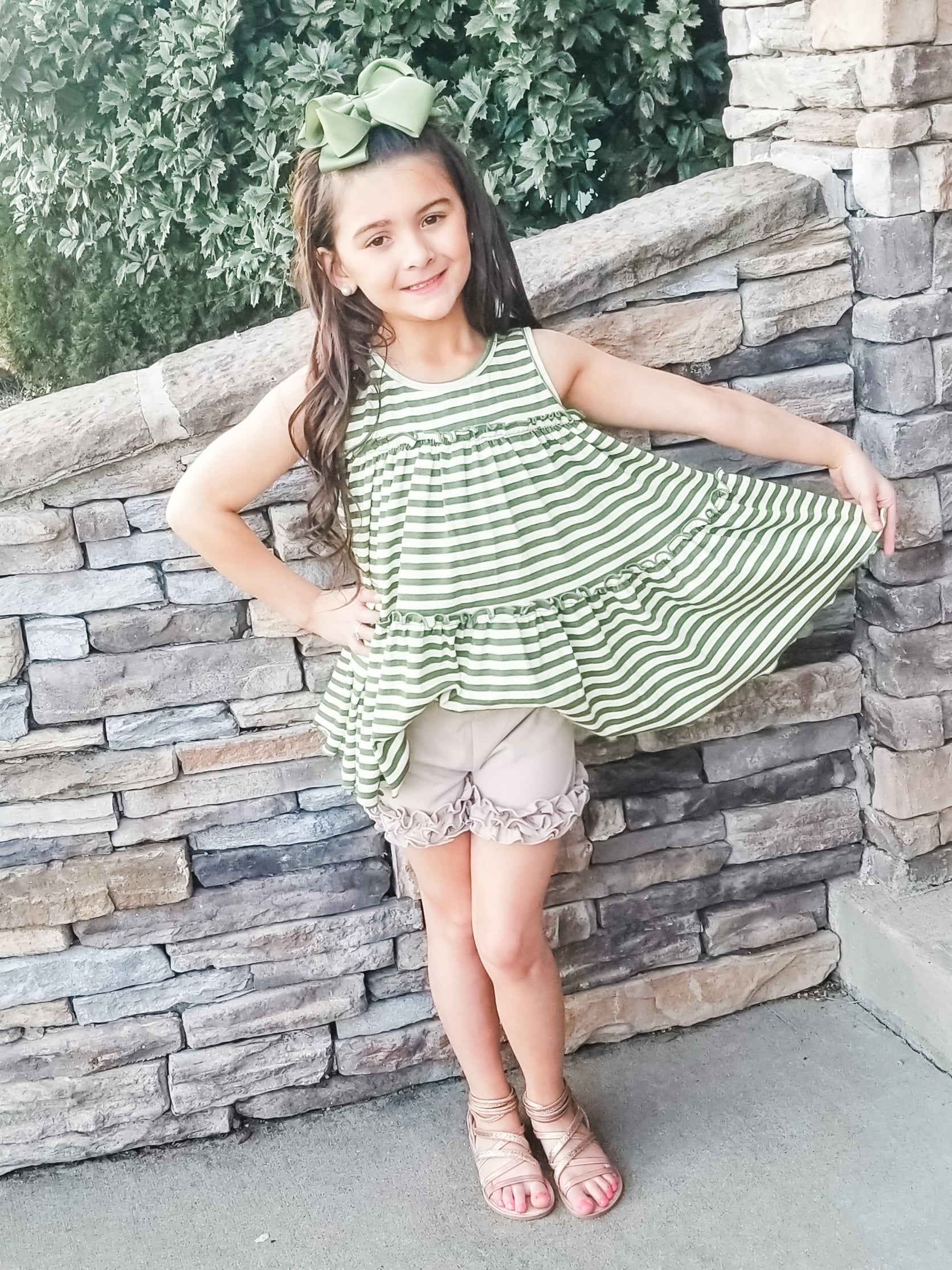 Cotton Swing Ruffle Tank - Olive/Cream Striped