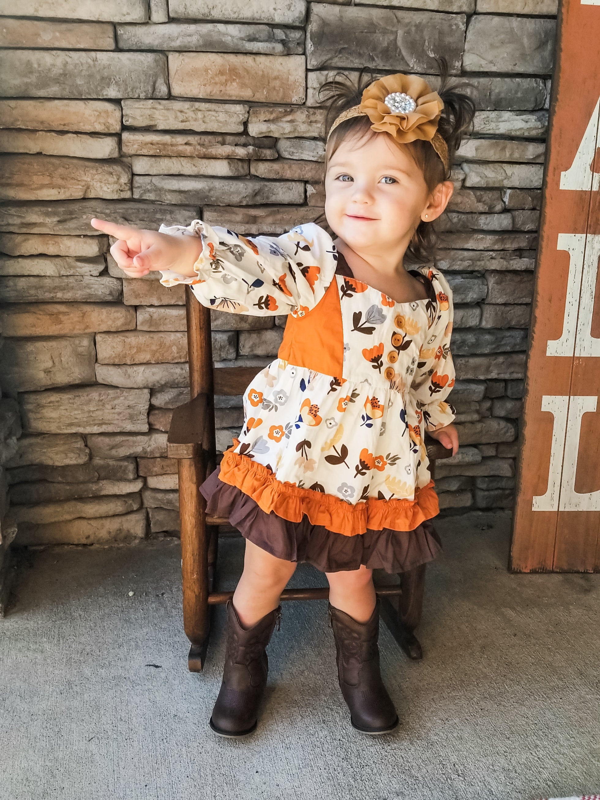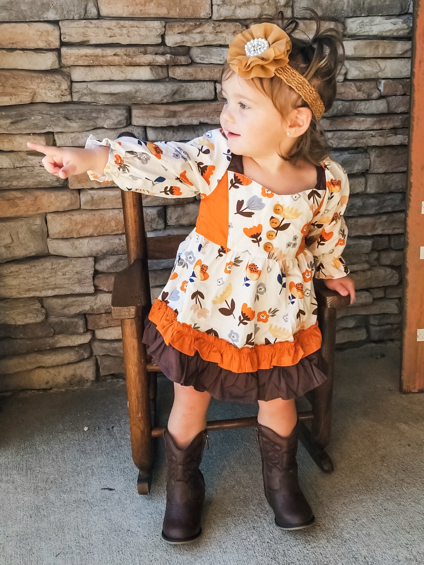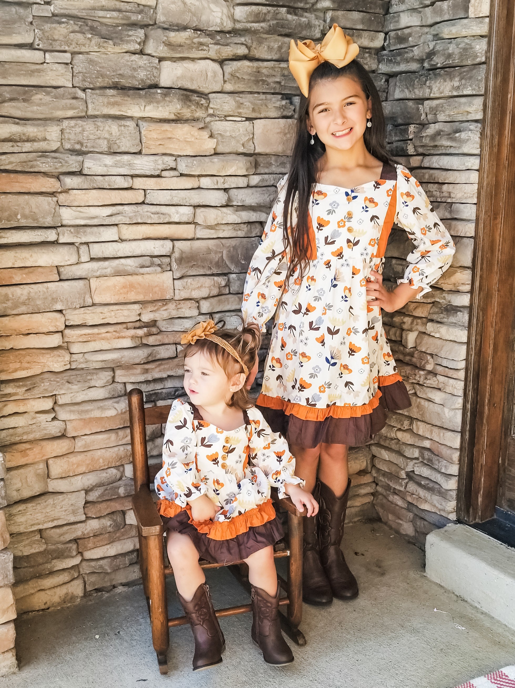 Orange & Brown Fall Floral Tiered Ruffle Dress