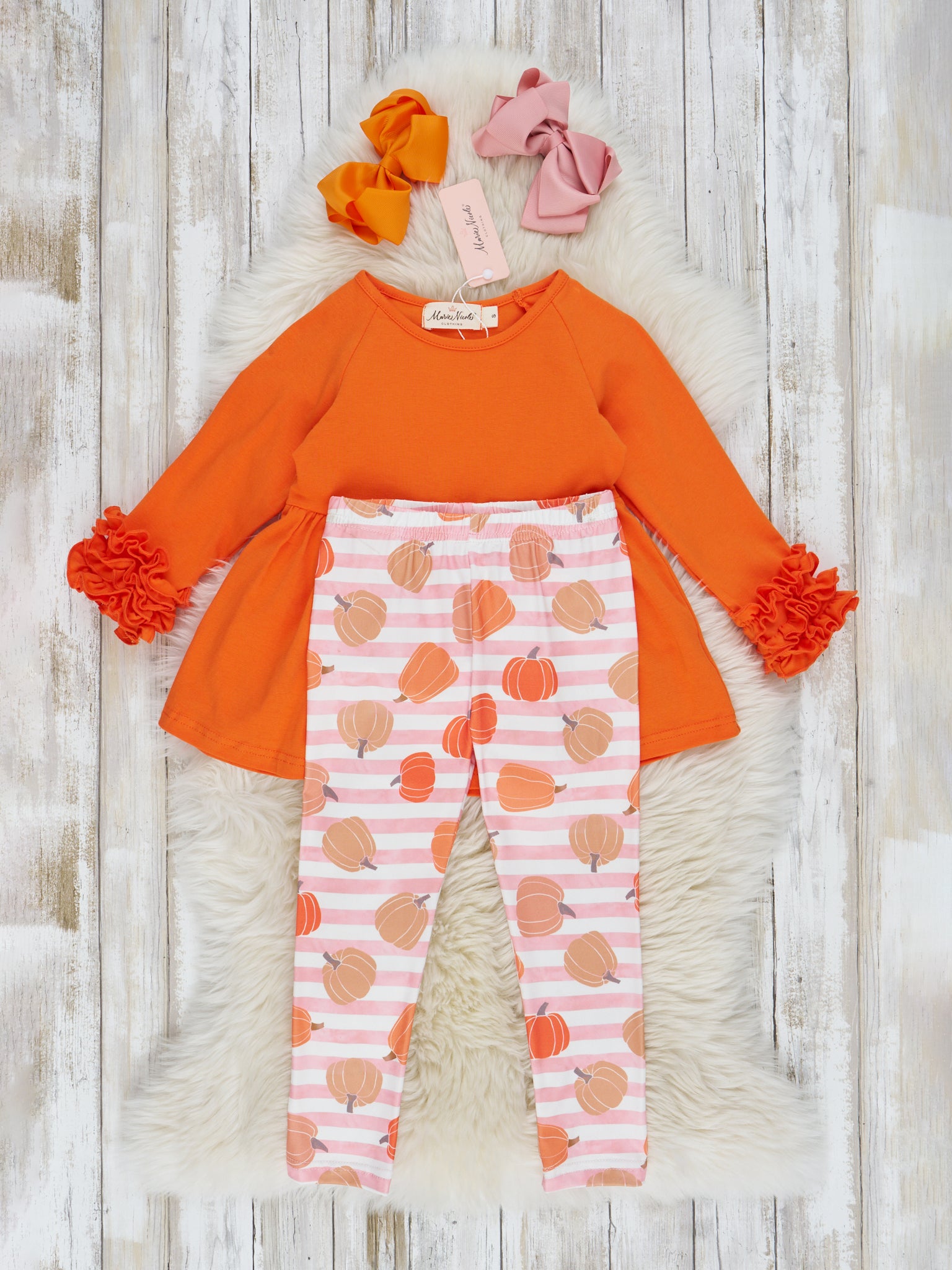 Orange & Pink Stripe Gourds Ruffle Outfit