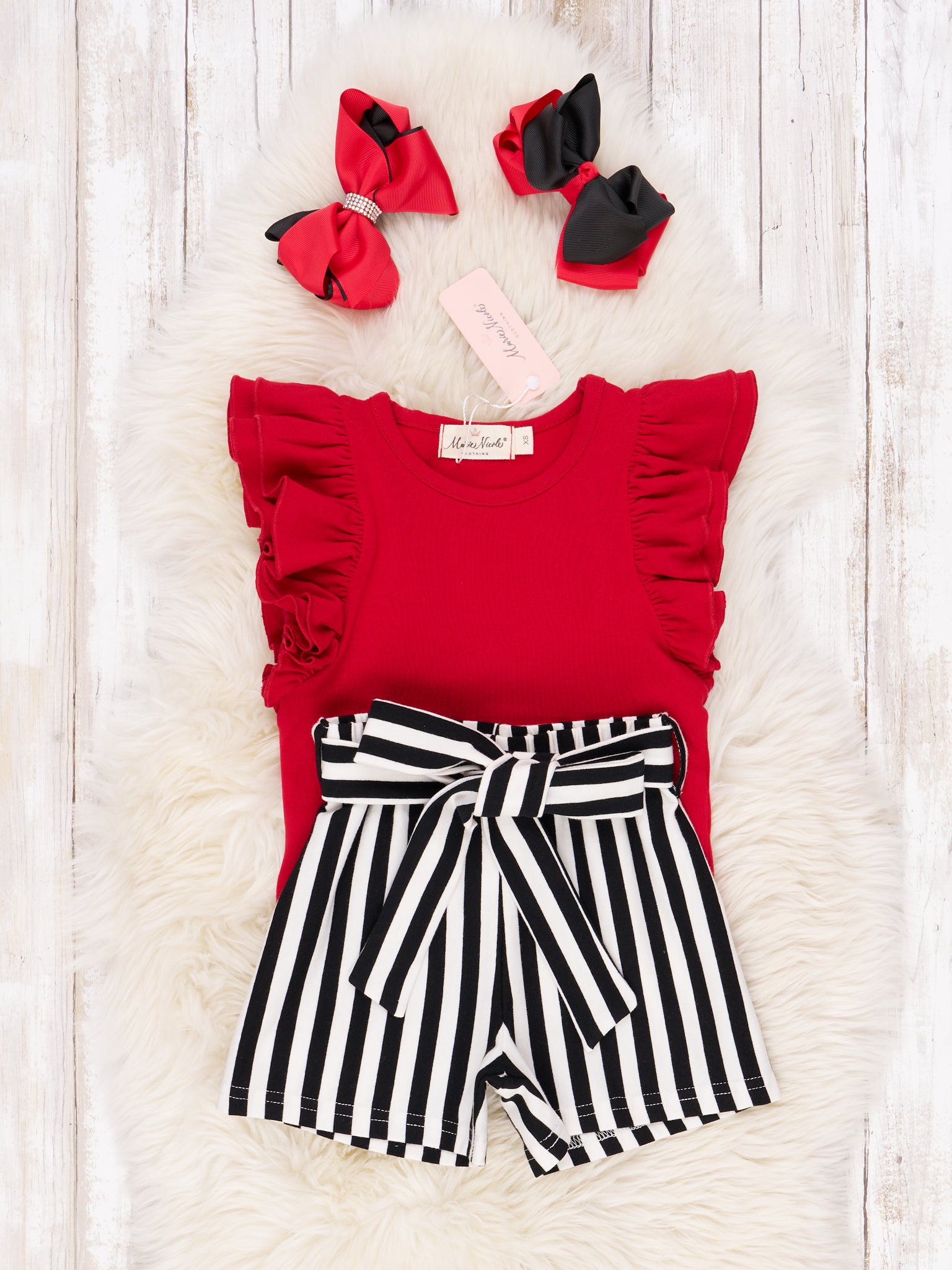 Red & Black Striped Ruffle Outfit